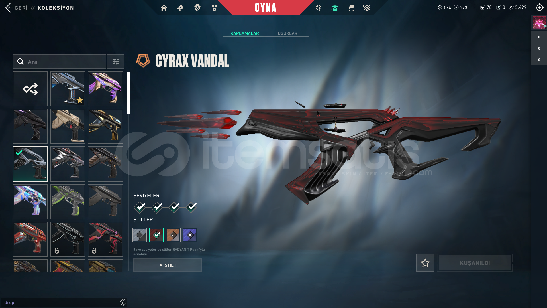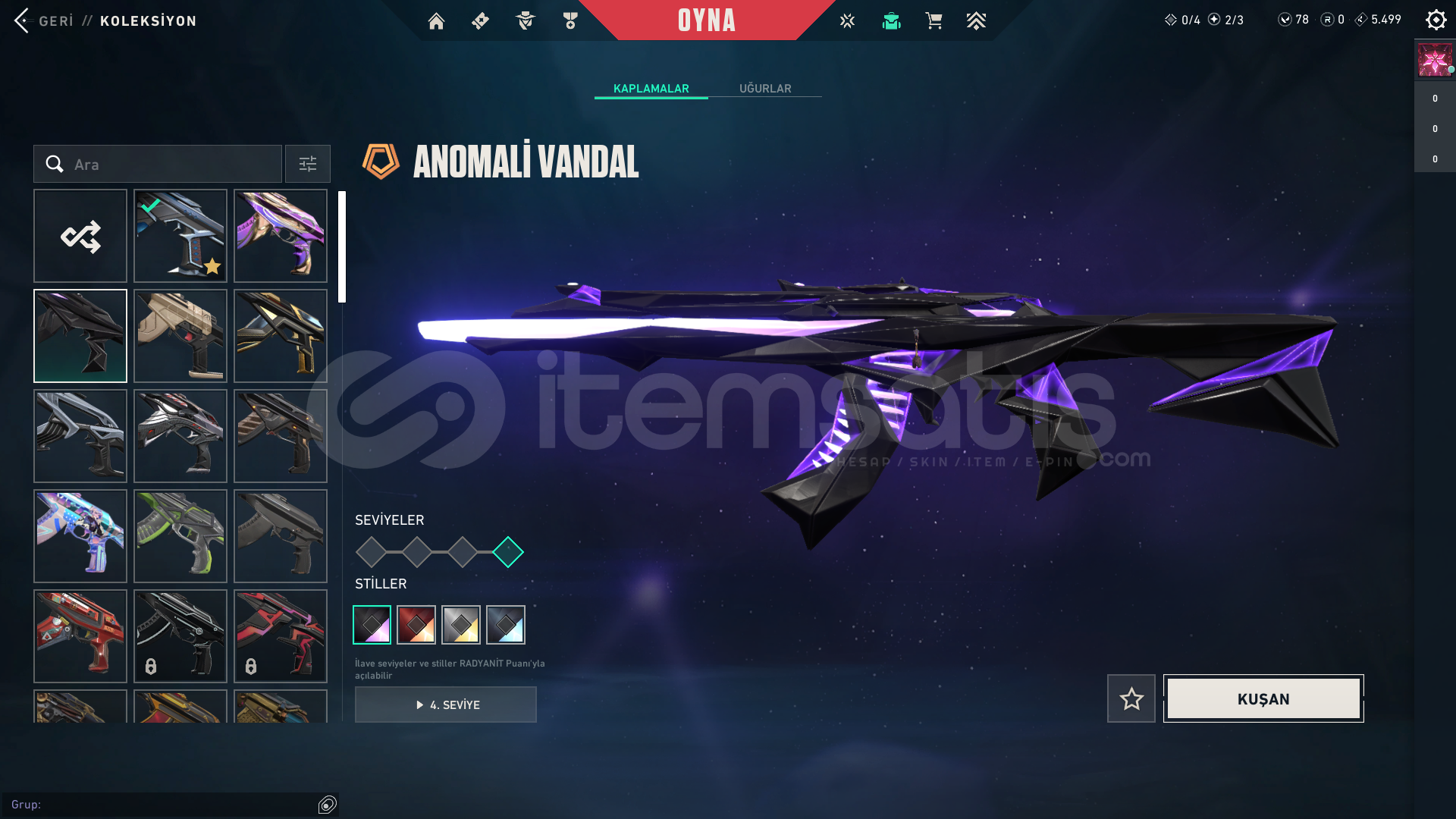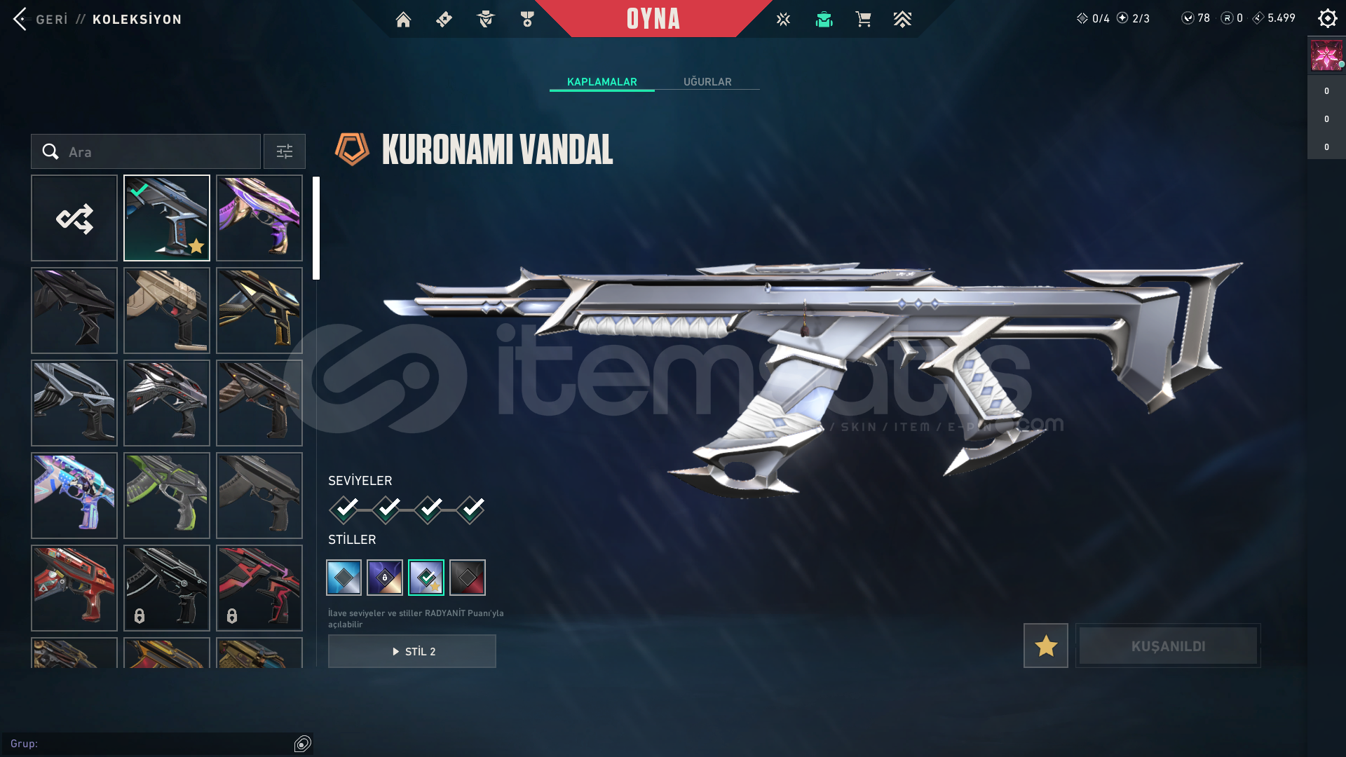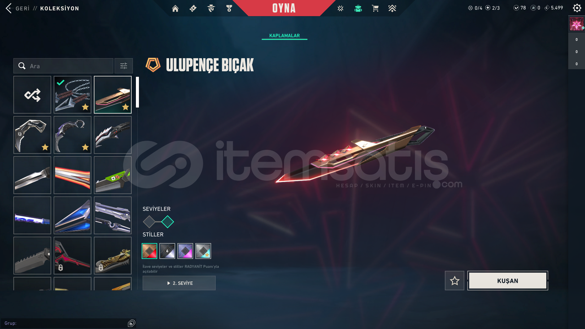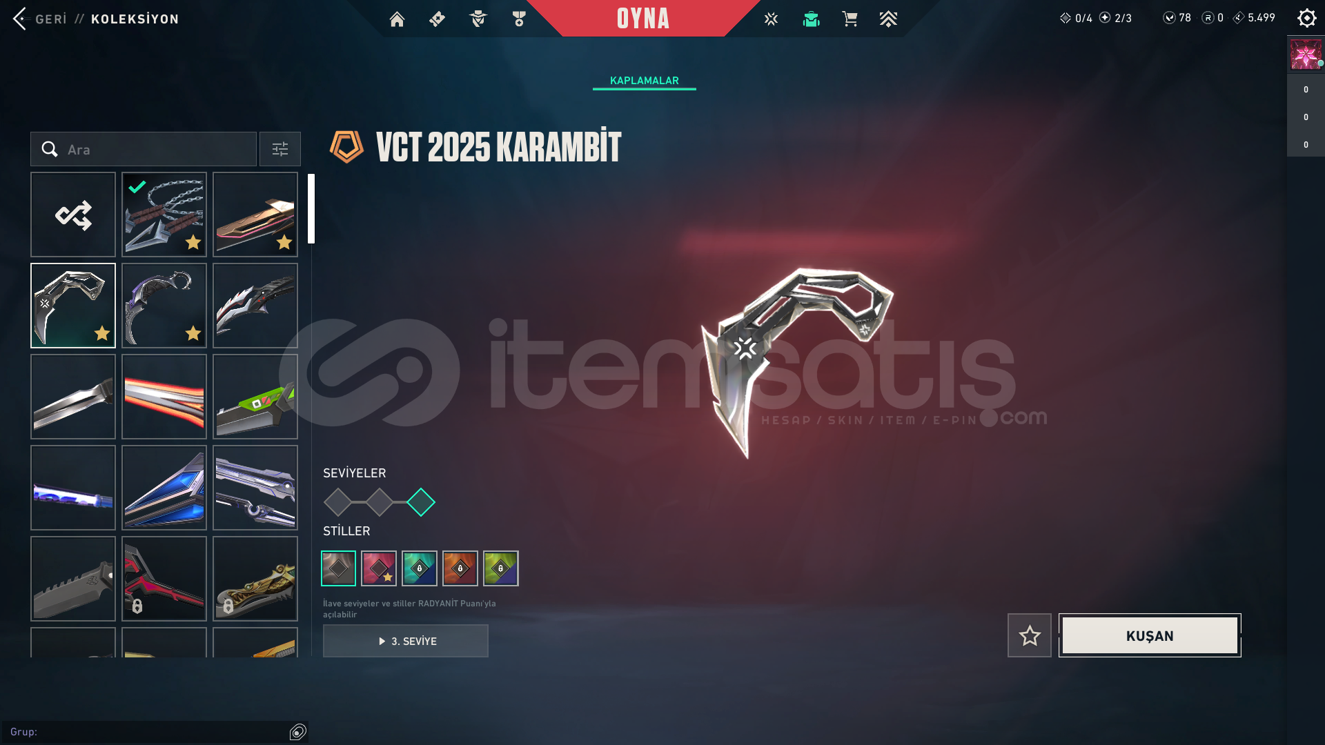 -Kuronami Vandal-Anomali Vandal-Champions 2025 Vandal-Cyrax Vandal-Faz Koruyucu Vandal ( Set olarak alındı)-RGX 11Z Pro Vandal-Sürat Canavarı Vandal-VCT 2025 KARAMBİT-KURONAMI NO YAIBA-Ulupençe Bıçak-Yağmacı Karambit-Faz Koruyucu Bıçağı-Battlepass Bıçakları (6tane)-Champions 2024 Phantom-Helezon Phantom-Yağmacı Phantom-Kuronami Sheriff-Sürat Canavarı Sheriff-Evori Rüyakanatlar...