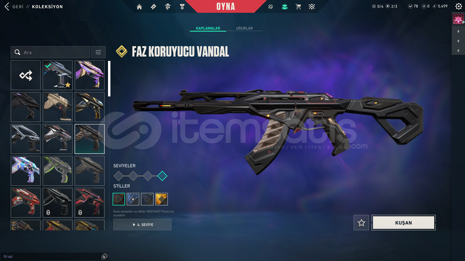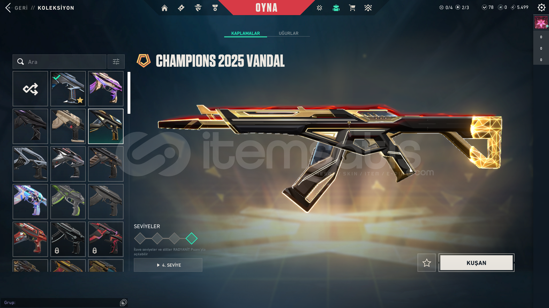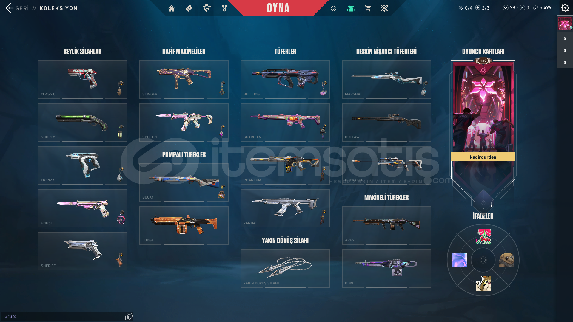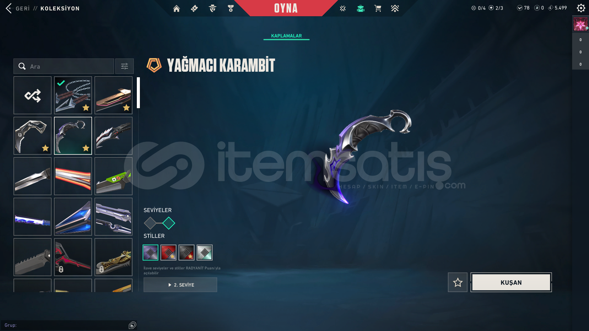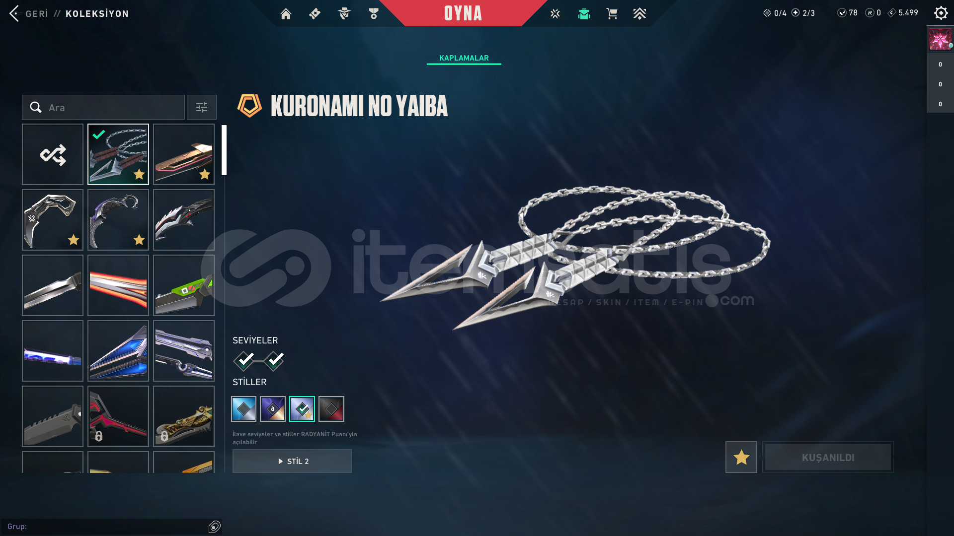 -Kuronami Vandal-Anomali Vandal-Champions 2025 Vandal-Cyrax Vandal-Faz Koruyucu Vandal ( Set olarak alındı)-RGX 11Z Pro Vandal-Sürat Canavarı Vandal-VCT 2025 KARAMBİT-KURONAMI NO YAIBA-Ulupençe Bıçak-Yağmacı Karambit-Faz Koruyucu Bıçağı-Battlepass Bıçakları (6tane)-Champions 2024 Phantom-Helezon Phantom-Yağmacı Phantom-Kuronami Sheriff-Sürat Canavarı Sheriff-Evori Rüyakanatlar...
