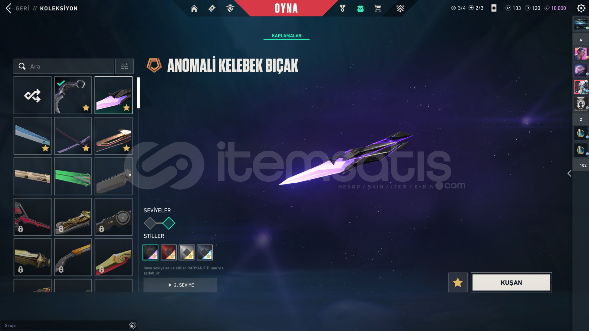 YAĞMACI KARAMBİT----EXO KATANA----ANOMALİ KELEBEK----DENGE(YELPAZE)----Ulupençe Bıçak ve 2 tane battlepass bıçağı bulunur hesaba toplam 13k yatırılmıştır istediğiniz gibi yazabilirsiniz indirim düşünür konuşuruz yazın