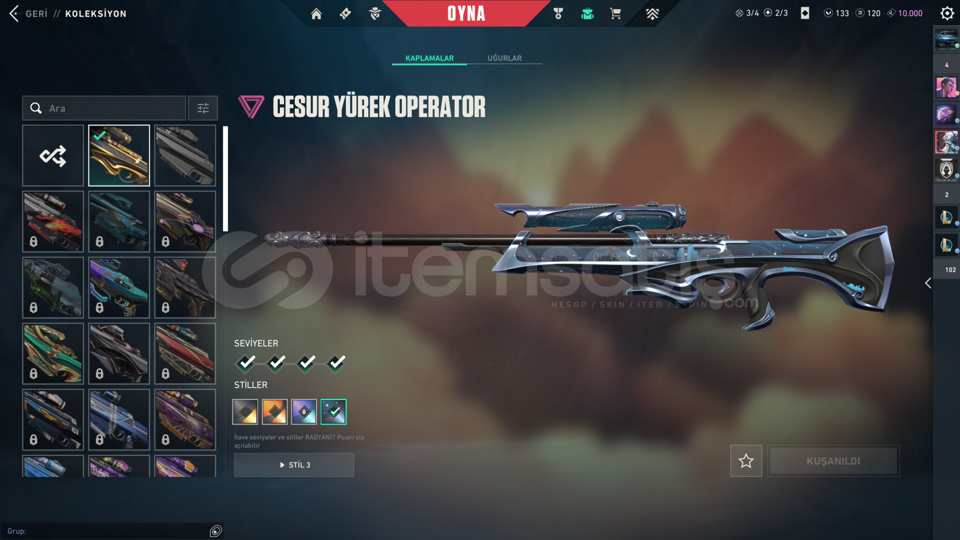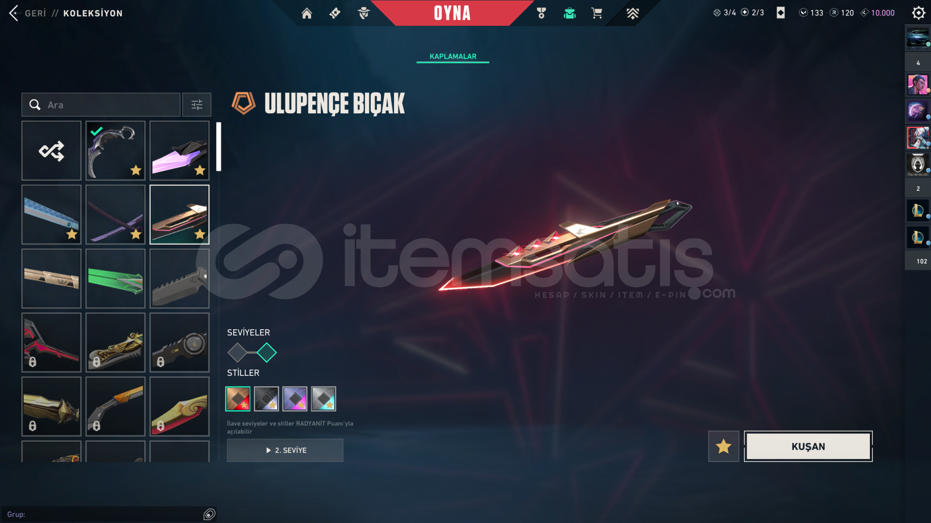 HesaptaArcane VandalAsil VandalGaia VandalCyrax VandalYitik VandalKuronami VandalOni VandalÖzel Harekat PhantomYağmacı SpectreGaia GhostMaymun(Cesur Yürek) OperatorSihirpunk ŞerifSükunet ShortybulunurBIÇAKLARYAĞMACI KARAMBİT----EXO KATANA----ANOMALİ KELEBEK----DENGE(YELPAZE)----Ulupençe Bıçak ve 2 tane battlepass bıçağı bulunur hesaba toplam 13k yatırılmıştır istediğiniz gib...
