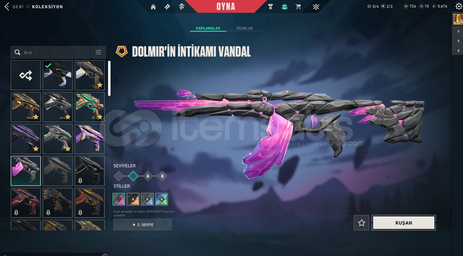 VANDALLARONETAP'TEN ORA VANDALASİL VANDALCESUR YÜREK VANDALEJDERİN BUYRUĞU VANDALEX.O VANDALYİTİK VANDALDOLMIR'İN İNTİKAMI VANDAL PHANTOMLARSİHİRPUNK PHANTOMHELEZON PHANTOMSHERİFLEREX.O SHERİFOUTLAWLAREX.O OUTLAWOPERATORLERMK.VII İSTİKLAL OPERATORSPECTRALAREX.O SPECTRABICAKLARUZAYLI AVCISI BIÇAĞIECELİN ISIRIĞI BIÇAKEX.O KILICIUZAY GEÇİDİ BIÇAKLARIHESAPTA 724 VP VARDIR E...