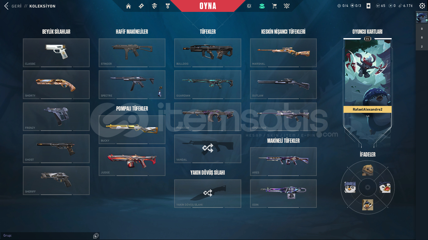 HESAPTA BULUNAN SKİNLER EKSİKSİZ BİR ŞEKİLDE YUKARIDA YAZIYOR
