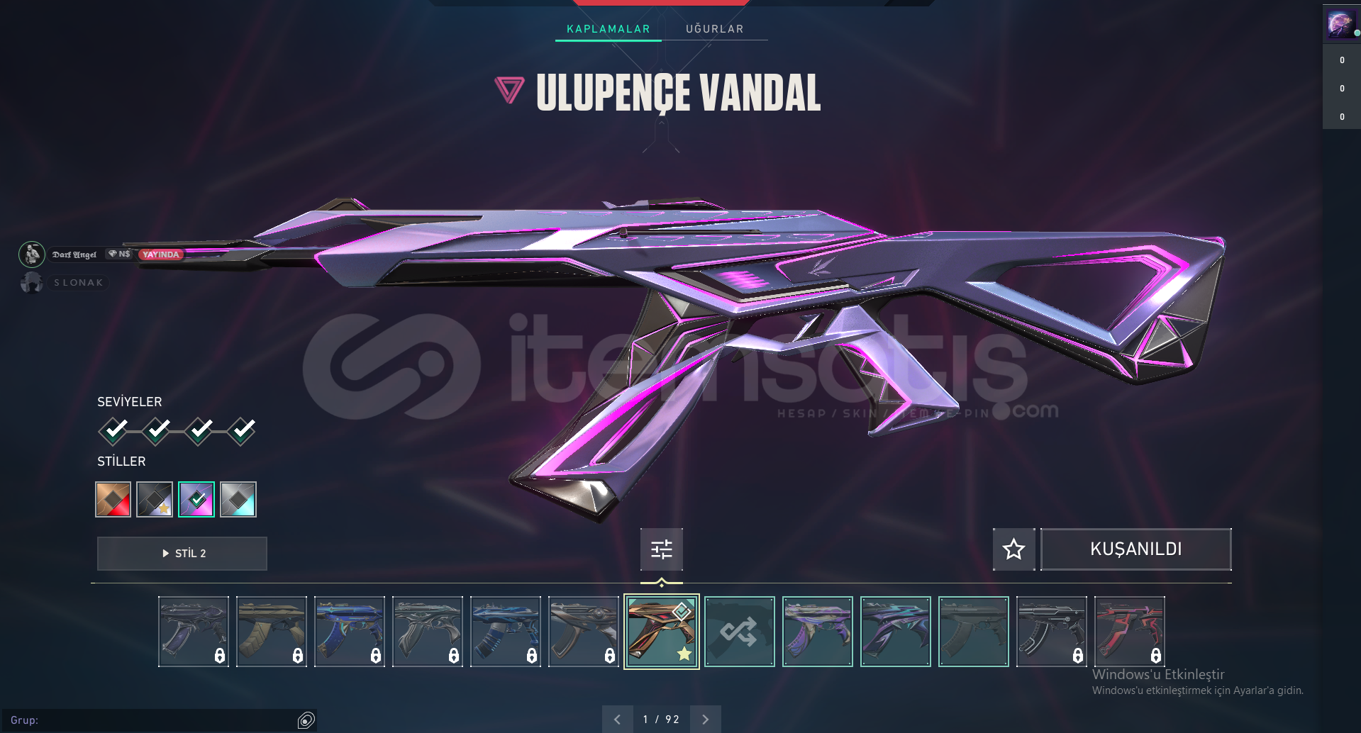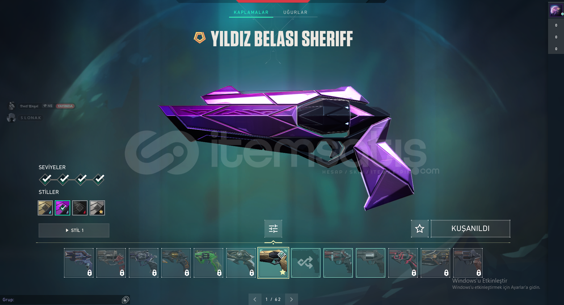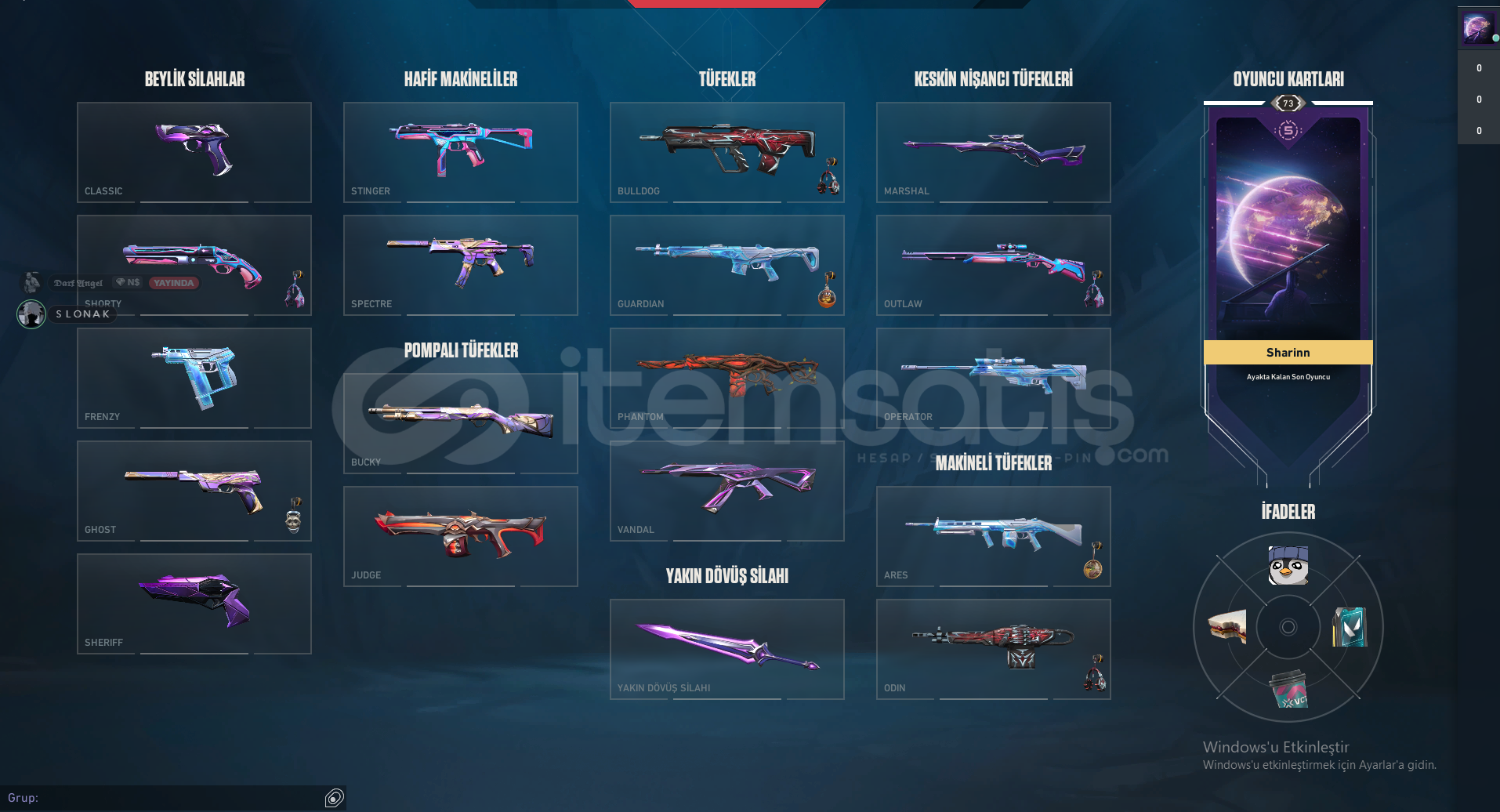 HESABIN İÇİNDEKİLER73 LVL MAİNLİK HESAP24 SKİNLİULUPENÇE VANDAL1ALBENİ VANDAL2KALP DURDURAN VANDAL3GAIANIN İNTİKAMI PHANTOM4GLAXY MUHAFIZI PHANTOM5YILDIZ BELASI SHERRİF6KIRIK KALP SHERRİF7GLAXY MUHAFIZI CLASSIC8KALP AVCISI SHORTY9HALOFORM FRENZY10ALBENİ GHOST11GÜN TUTULMASI GHOST12KALP AVCISI STİNGER13ALBENİ SPECTRE14ALBENİ BUCKY15GLAXY MUHAFIZI JUDGE16KIRIK KALP BULLDOG17HALOFORM GUARDİYAN18G...