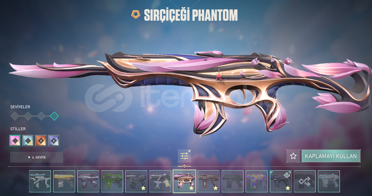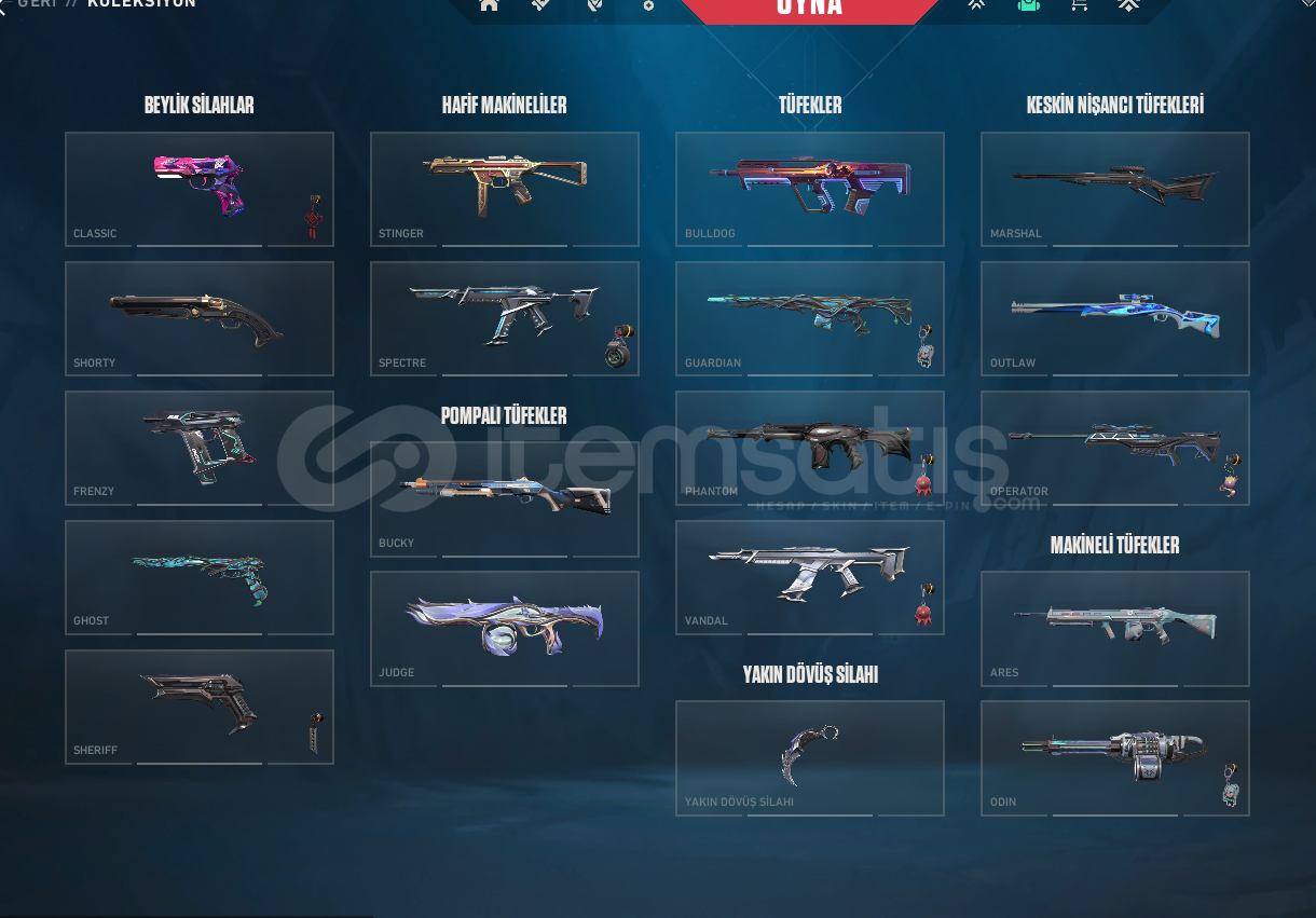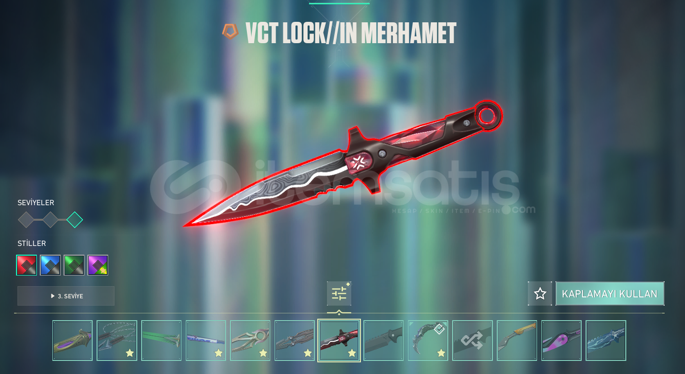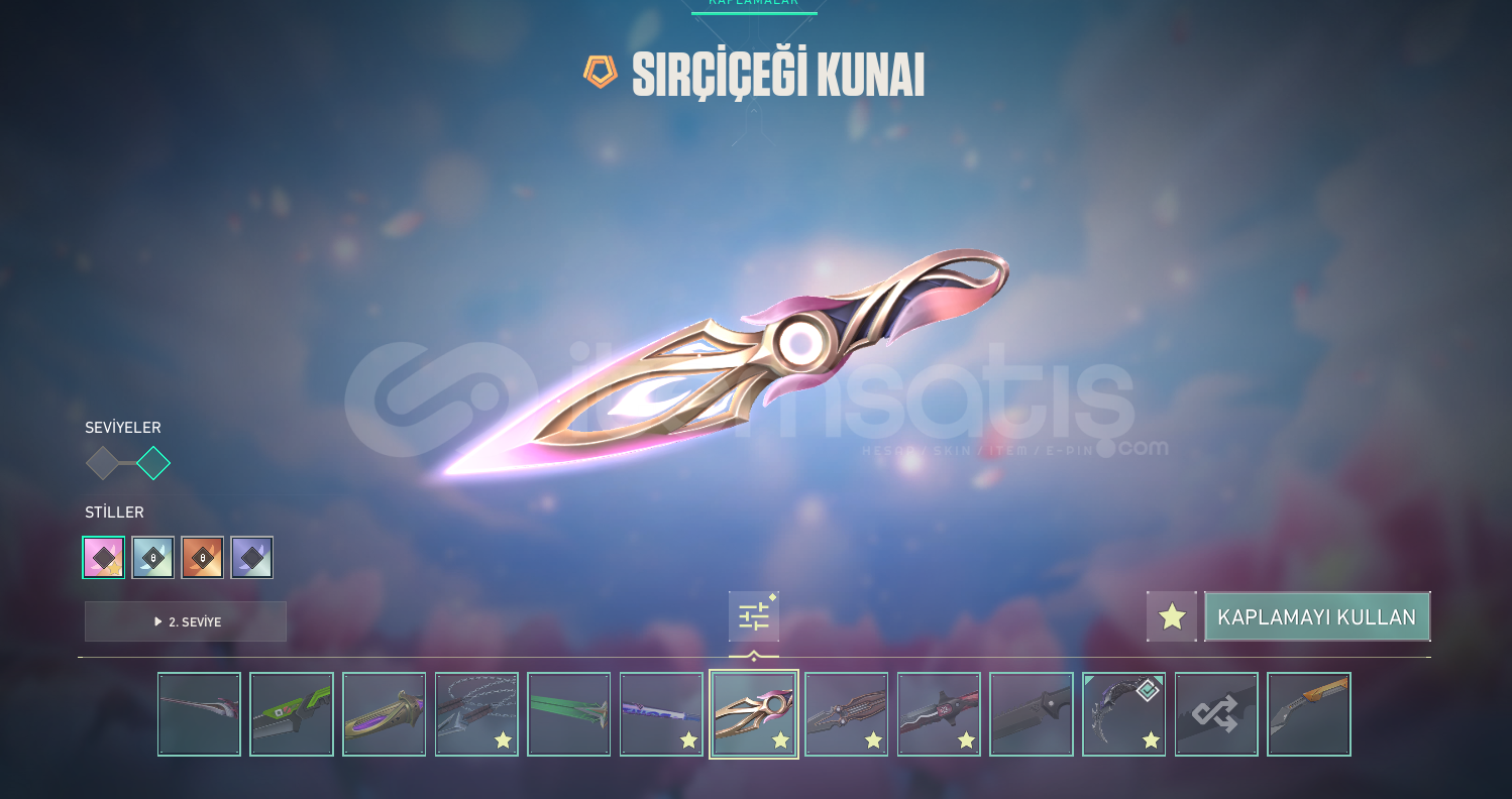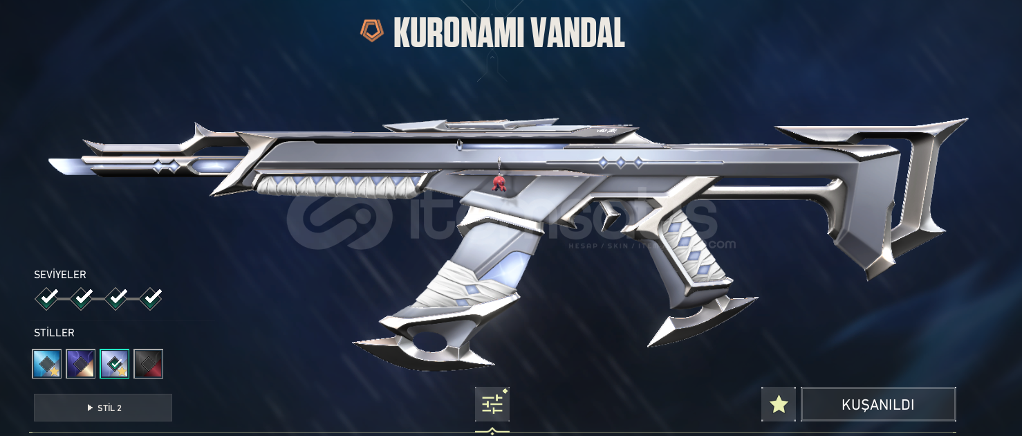 • Sırçiçeği Kunai+Kuronami No Yaiba+VCT Lock İn Merhamet+Felaketin Kalbi Vandal+Champions 2024 Vandal+Sırçiçeği Set+Kuronami Set+Protocol Phantom olmak üzere 156 skin mevcuttur