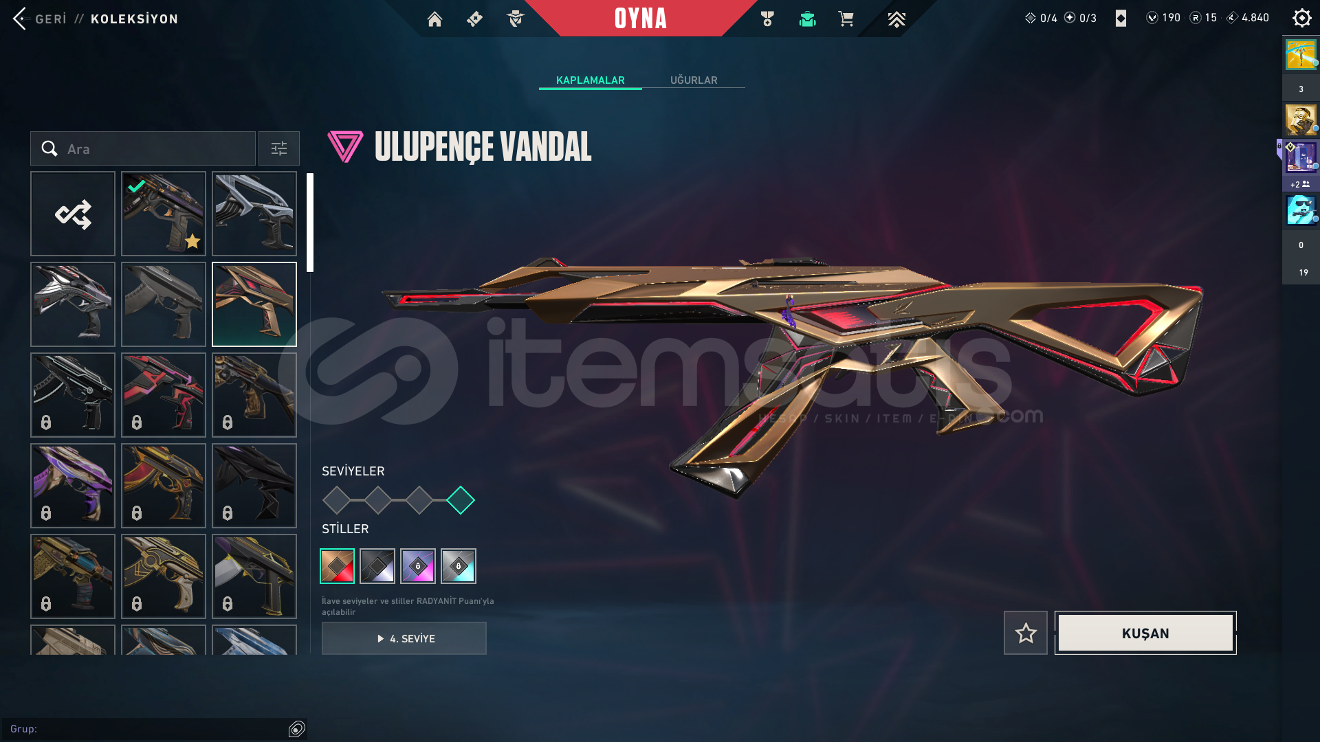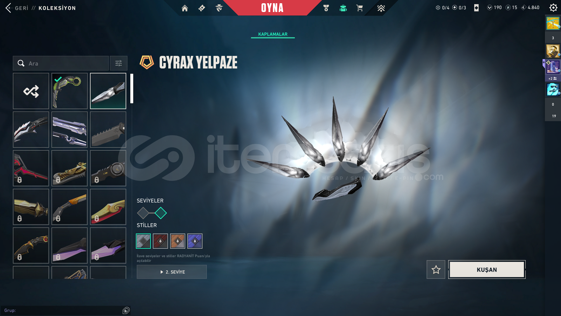 RGX KARAMBİTCYRAX YELPAZEKAOS VANDALULUPENÇE VANDALCYRAX VANDALNEPTÜN PHANTOMNEPTÜN CLASSİCYAĞMACI GHOSTCYRAX GHOSTPROTOKOL SHERİFFNEPTÜN ODİNCYRAX STİNGERCYRAX GUARDİANHER SİLAHTA FAZLACA BP SKİNLERİ8000TL'DEN FAZLA YATIRILMISTELEFON BAĞLANILABİLİRMAİL DEVİR EDİLECEK
