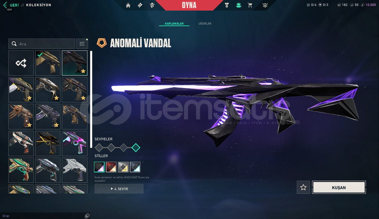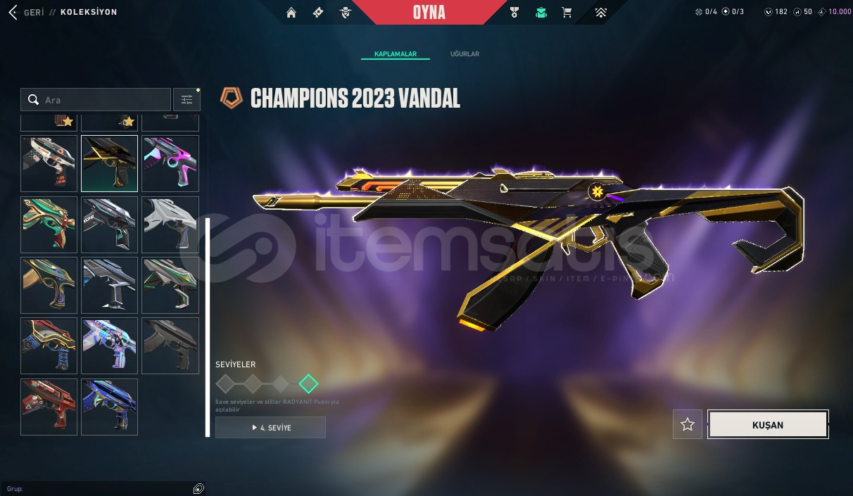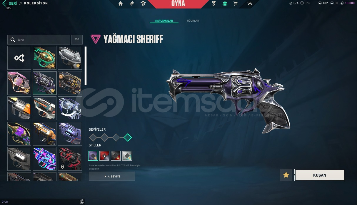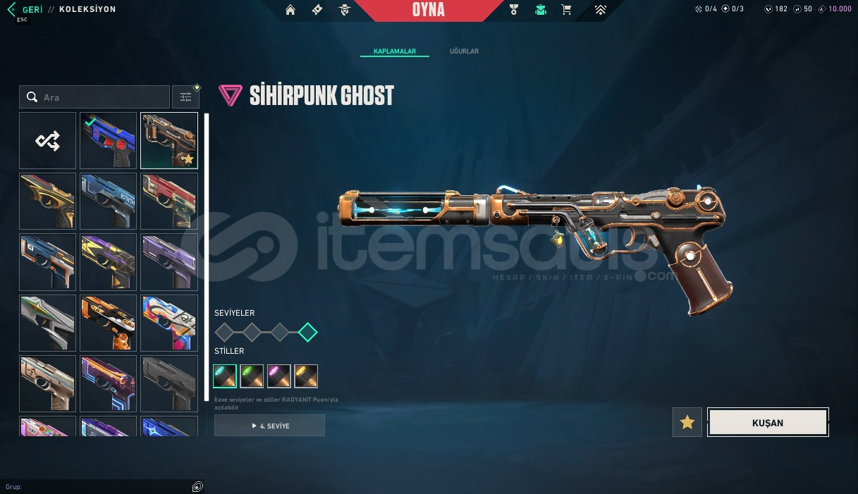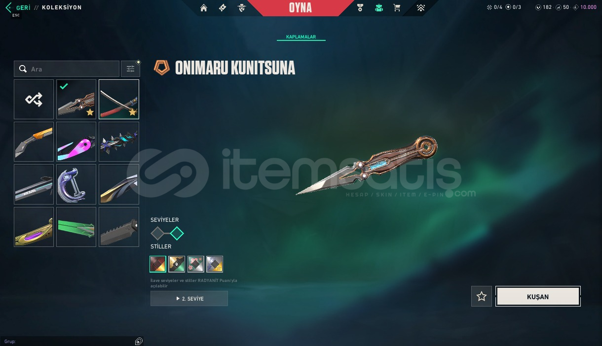 87K VP HARCANMIŞBRONZ 2195SKİNHesabın İçerisindeki Skinler:Radiant Entertainment System GhostRadiant Entertainment System PhantomProtocol 781-A PhantomAraxys VandalSingularity VandalMystbloom SheriffSandswept DaggerImperium SheriffTilde KnifeImperium VandalChronoVoid PhantomMagepunk SparkswitchVenturi KnifeOnimaru KunitsunaTransition KnifeKuronami VandalRGX 11z Pro PhantomComet SwordChampions 2023 VandalBoundOverdrive VandalIridian Thorn BladeRuination GuardianPrelude ...