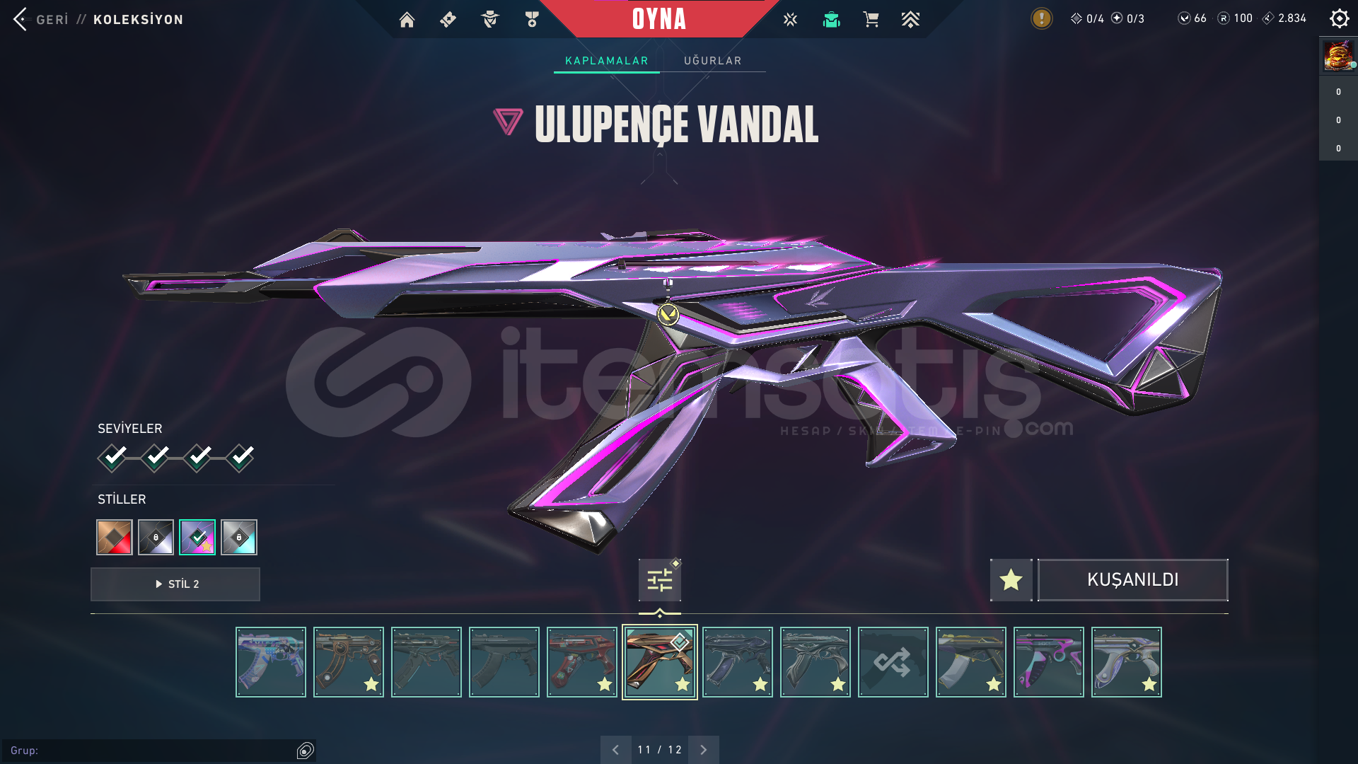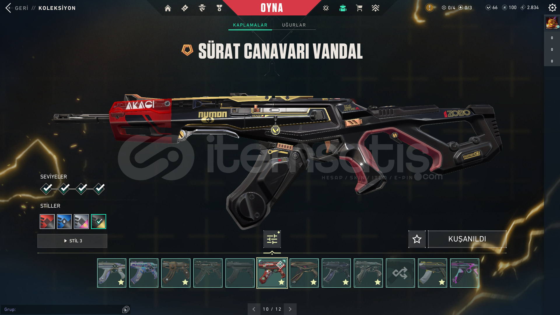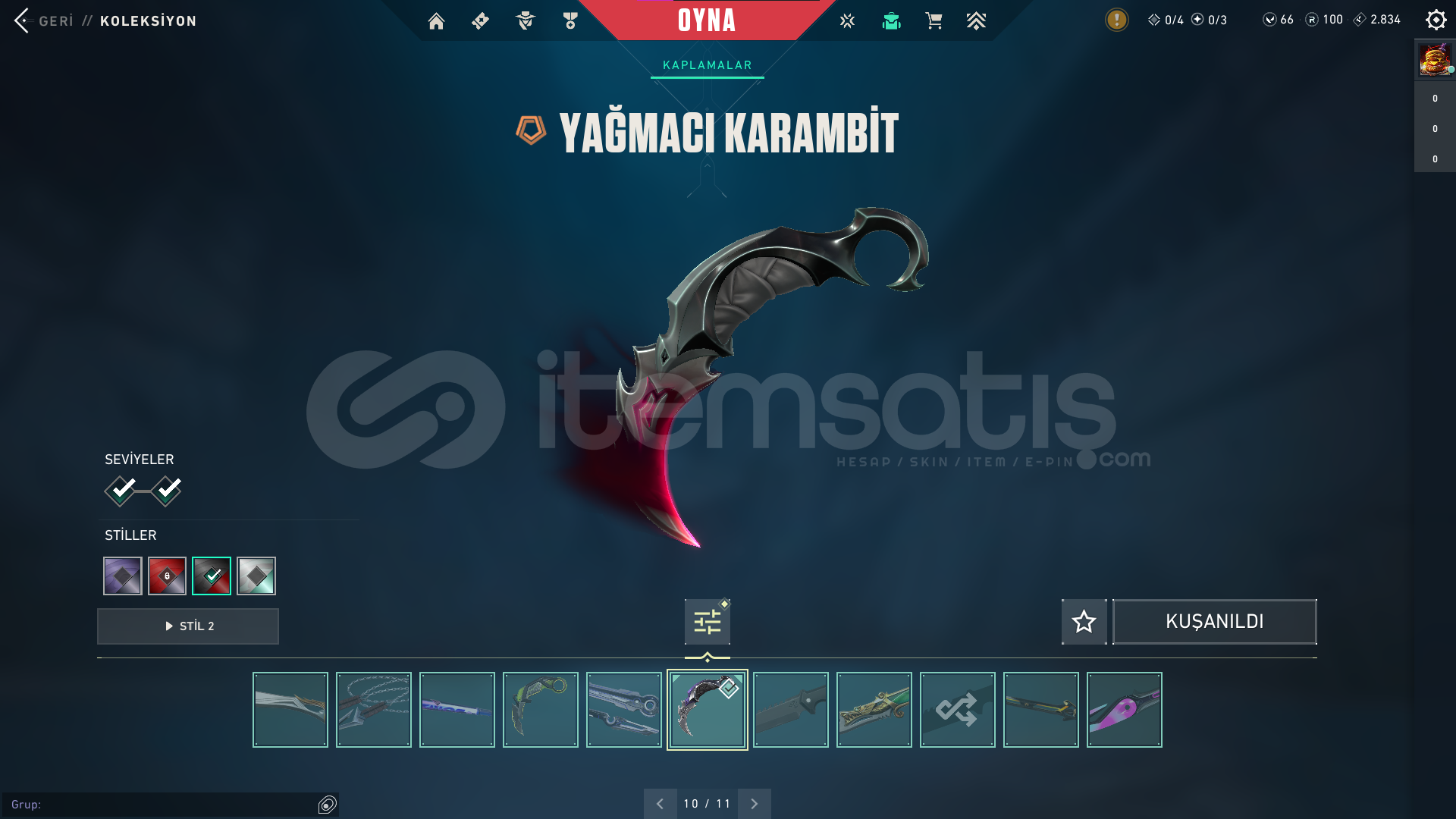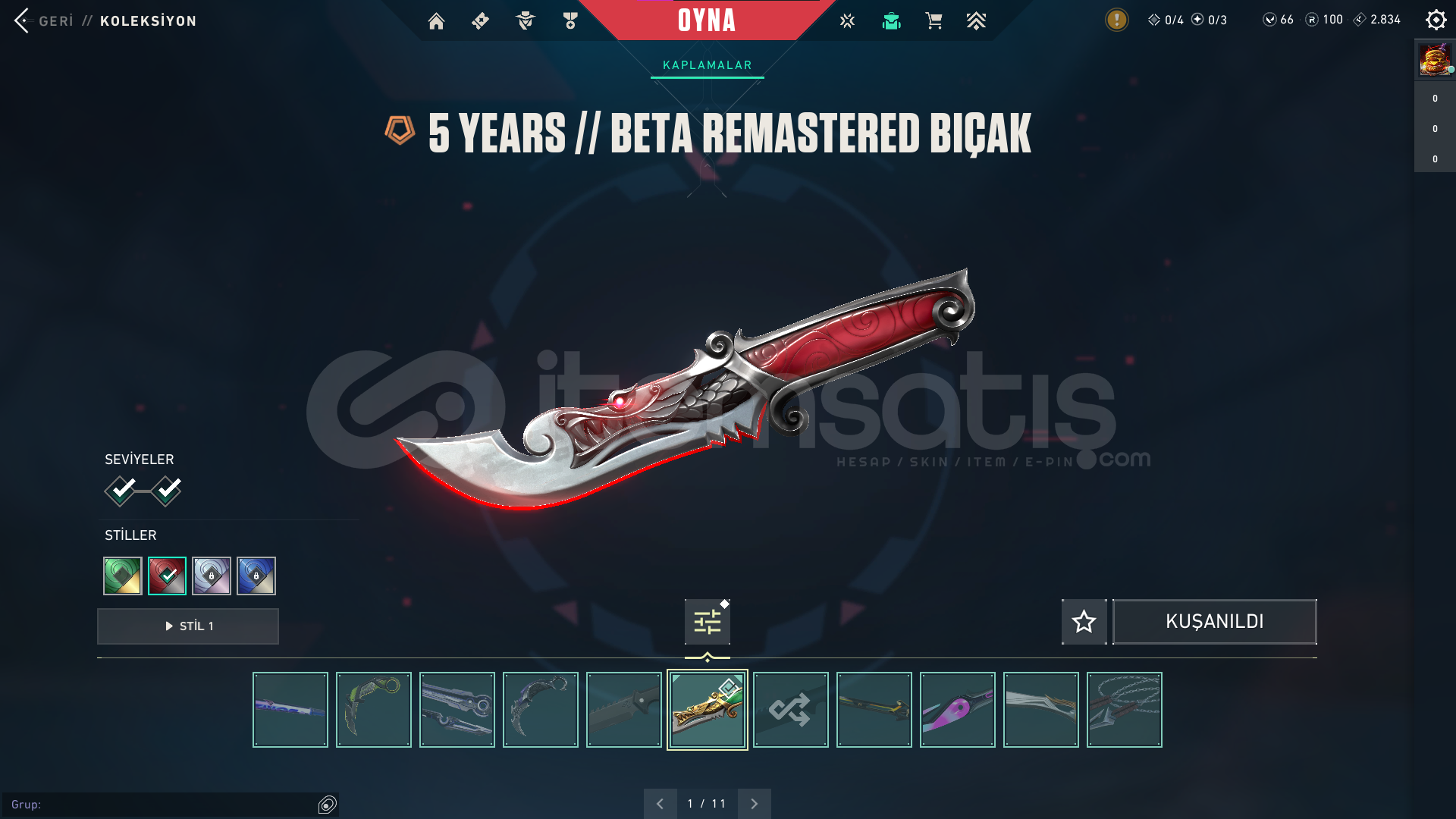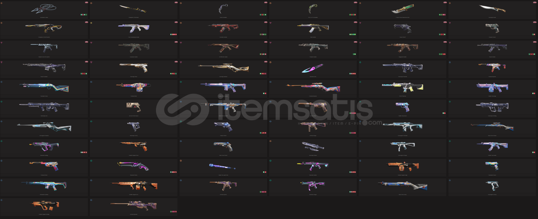⭐ Hesapta 5 Years // Beta Remastered Bıçak , Yağmacı Karambit , Uzay Geçidi Bıçakları , RGX 11z Pro Karambit , Popstar Işık Çubuğu , Kuronami No Yaiba , Fatih Kılıç , Devinim Bıçağı , Champions 2024 Kılıcı , Evori Rüyakanatlar Vandal , Asil Vandal , Yağmacı Vandal , Yitik Vandal , Ulupençe Vandal , Süratcanavarı Vandal , Devinim Vandal , Sihirpunk Vandal , Soğukçelik Vandal , Popstar Vandal , Yitik Classic , Fatih Ghost , Yağmacı Sheriff , Radiant Krizi 001 Spectre , Yağmacı Guaridan , Champions 2024 Phantom ve Fatih Marshal gibi skinler bulunmaktadır. Görsellerde tüm skinleri görebilirsiniz.