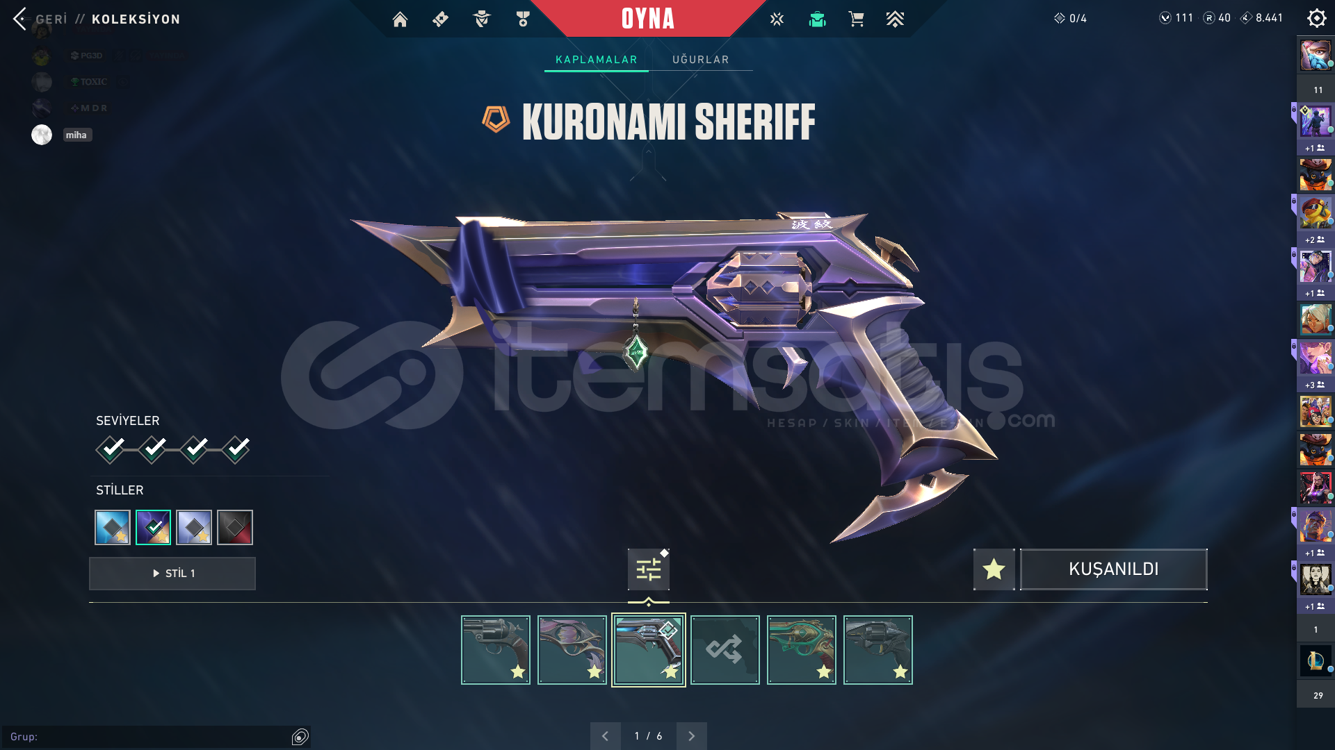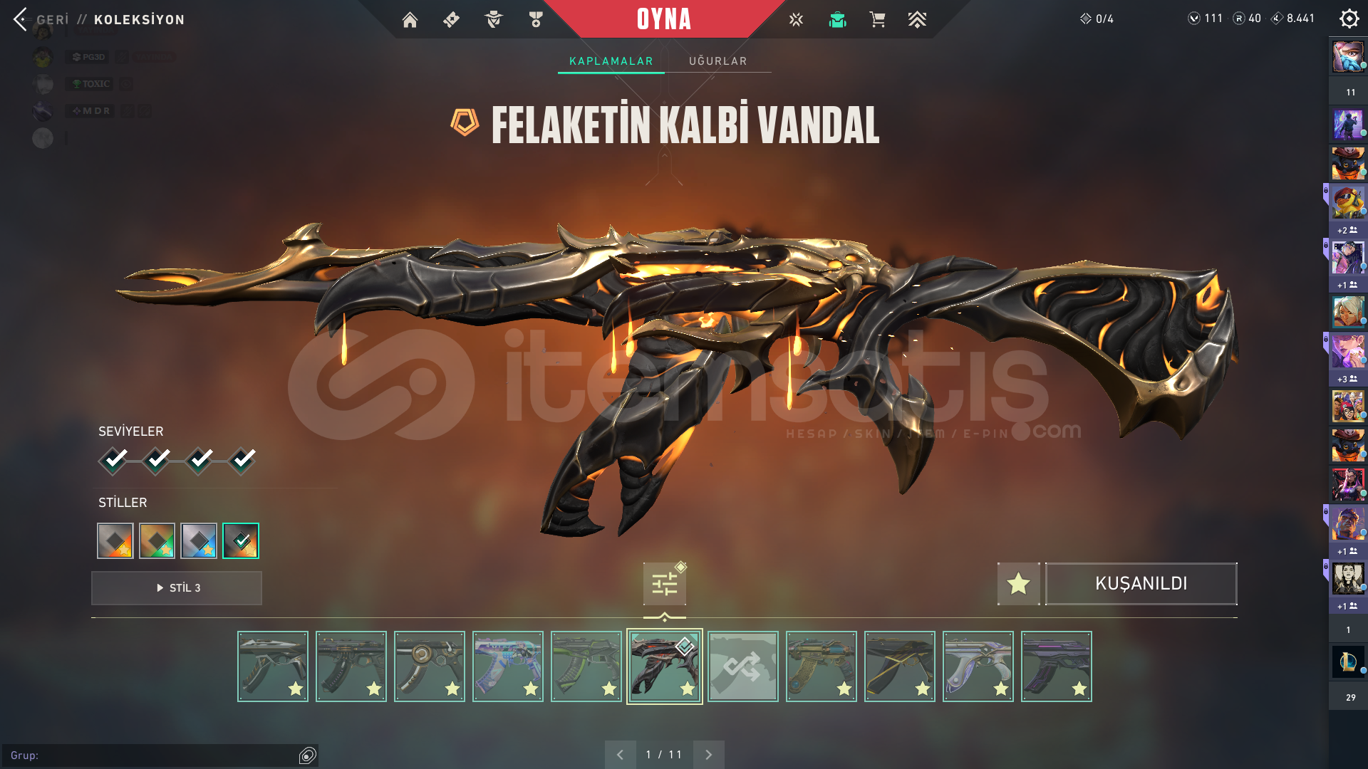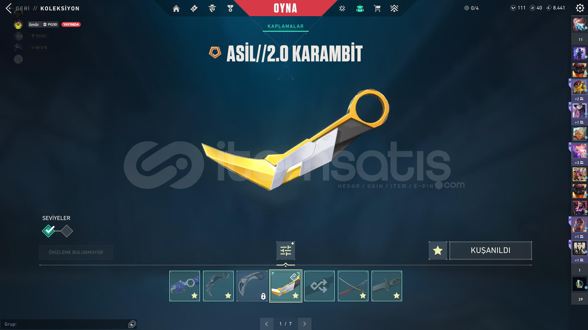 Asil Karambit, Yağmacı Karambit, Oni Katana, Uzaylı Avcısı Bıçağı, Valorant Go 1. Bıçağı vardır.