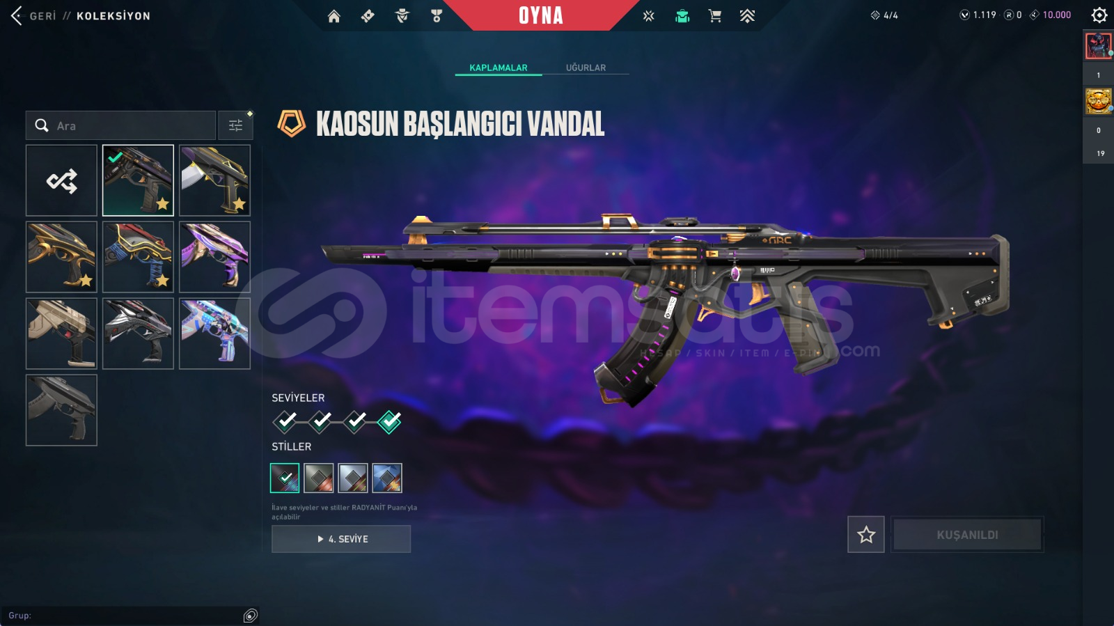VANDAL ---> KAOS VANDAL + ASIL VANDAL + ONI VANDAL + CESUR YUREK VANDAL + 4 BP SKIN