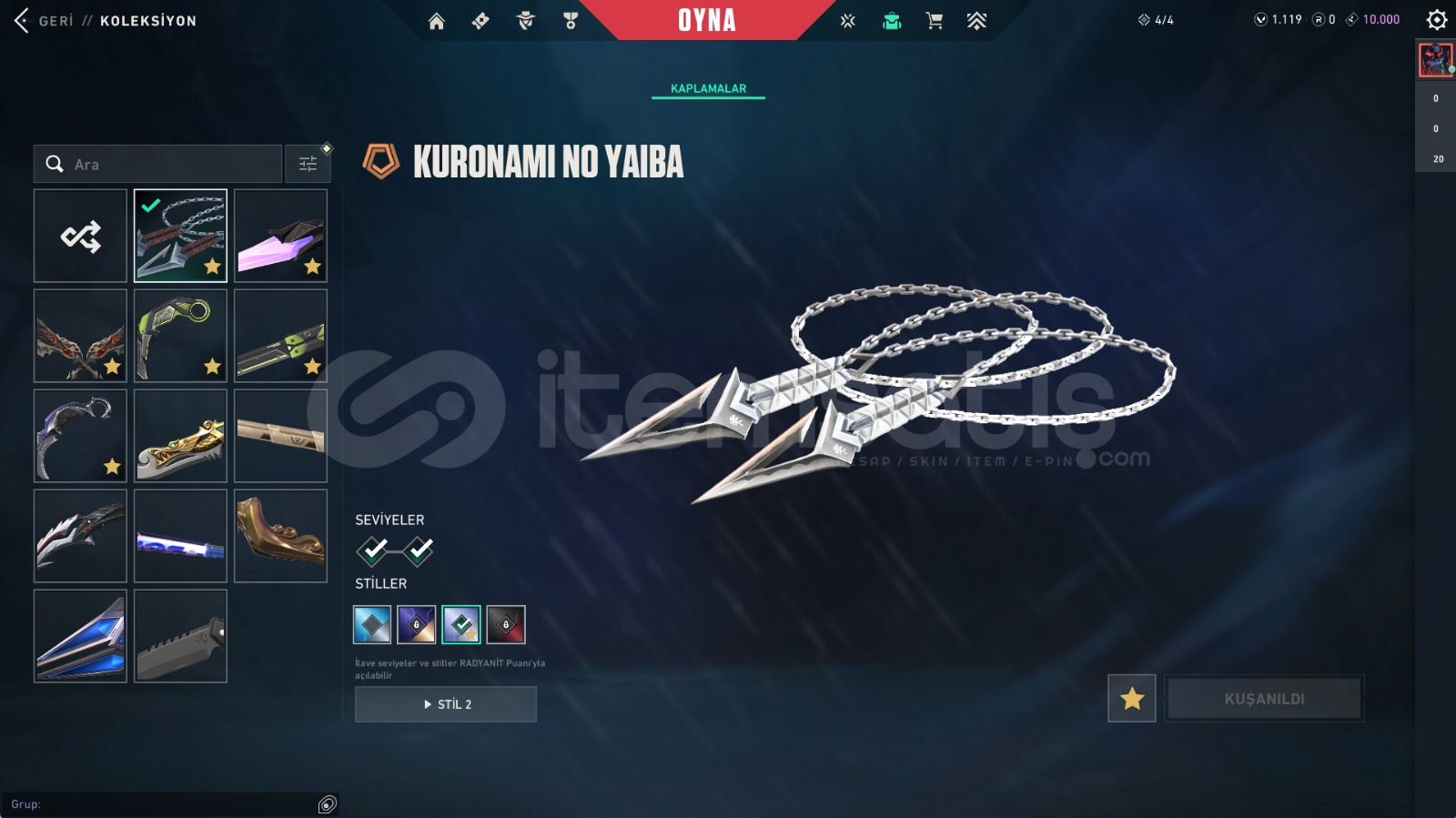 BICAK ---> KURONAMI + RGX KARAMBIT + RGX KELEBEK + YAGMACI KARAMBIT + 5. YIL BAYONET + ANOMALI KELEBEK + SEMAVI YELPAZE + FELAKETIN BICAKLARI + 4 BP SKIN