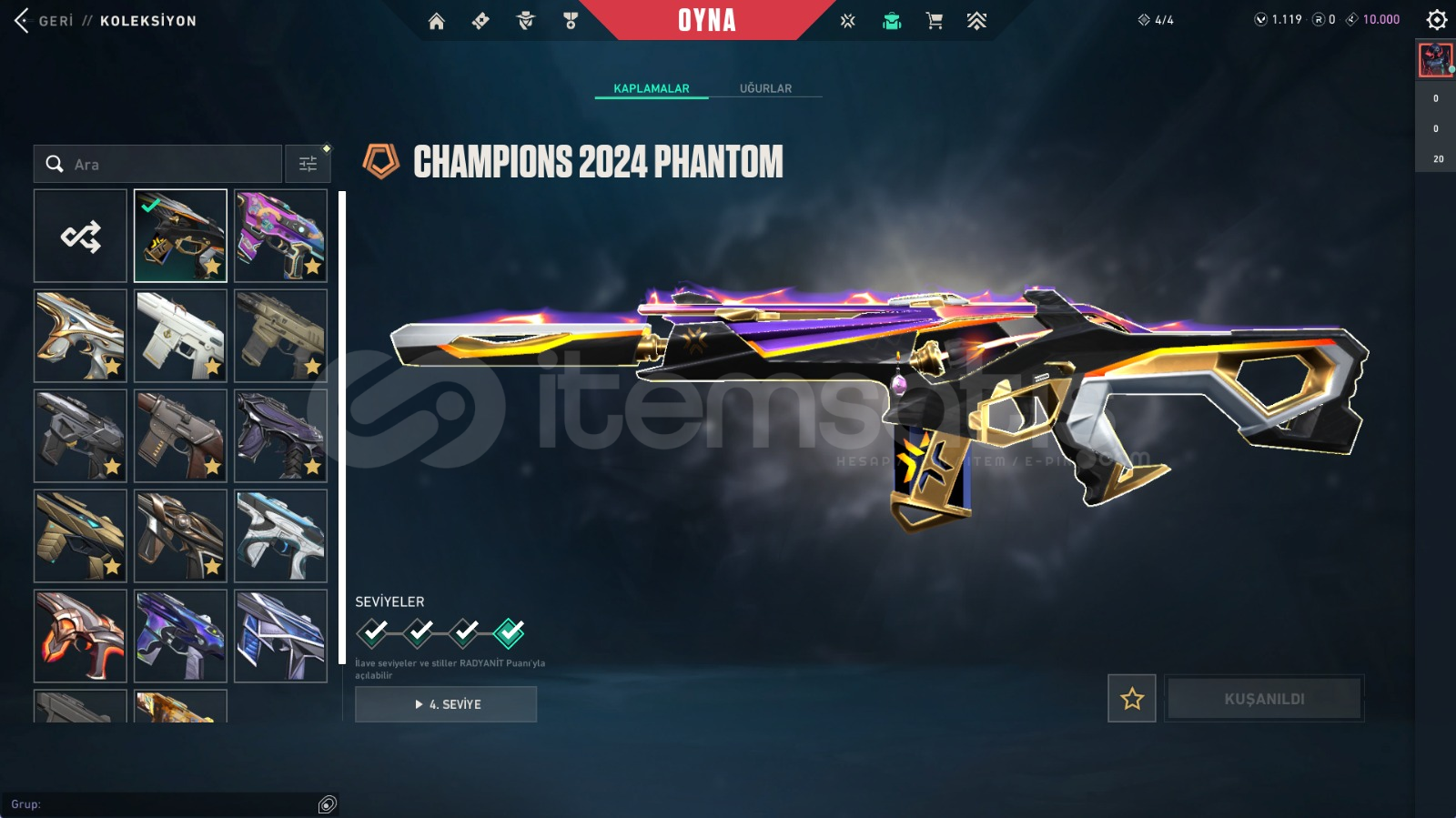30 ANIMASYONLU SKIN + 1100 VP + BP SKINLERLE DOLU EFSANE HESAP--------------------------------------CLASSİC ---> ASIL CLASSIC + 3 BP SKINSHORTY ---> 2 BP SKINFRENZY ---> 3 BP SKINGHOST ---> FATIH GHOST + 5 BP SKINSHERIFF ---> SERI TETIK SHERRIF + 4 BP SKINSTINGER ---> 2 BP SKINSPECTRE ---> EXO SPECTRE + IYON SPECTRE + 3 BP SKINBUCKY ---> 2 BP SKINJUDGE ---> 6 BP SKINBULLDOG ---> ONI BULLDOG + 3 BP SKINGUARDIAN ---> YILDIZ BELASI GUARDIAN + 5 BP SKINPHANTOM ---> CHAMPIONS 2024 + PROTOKOL + F...