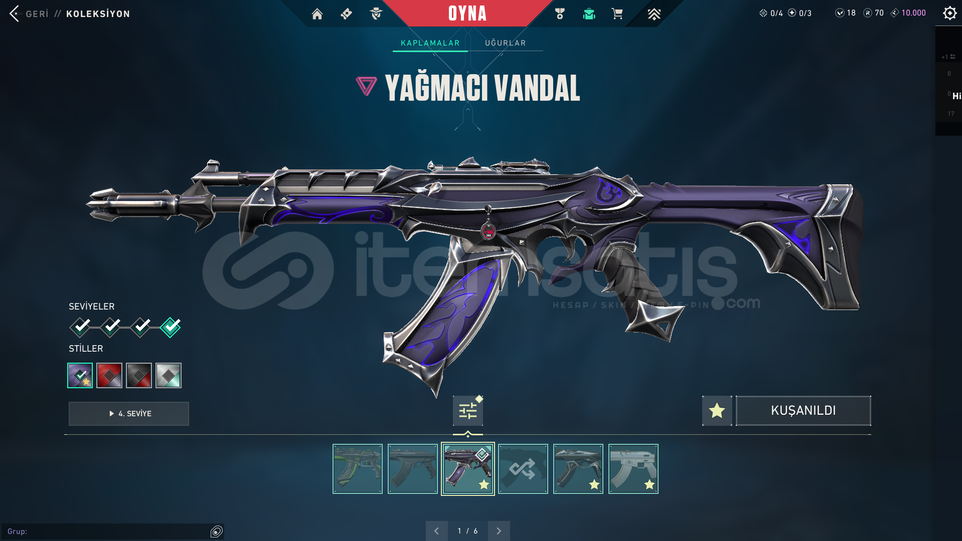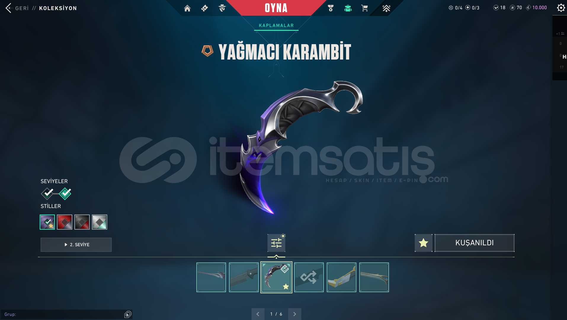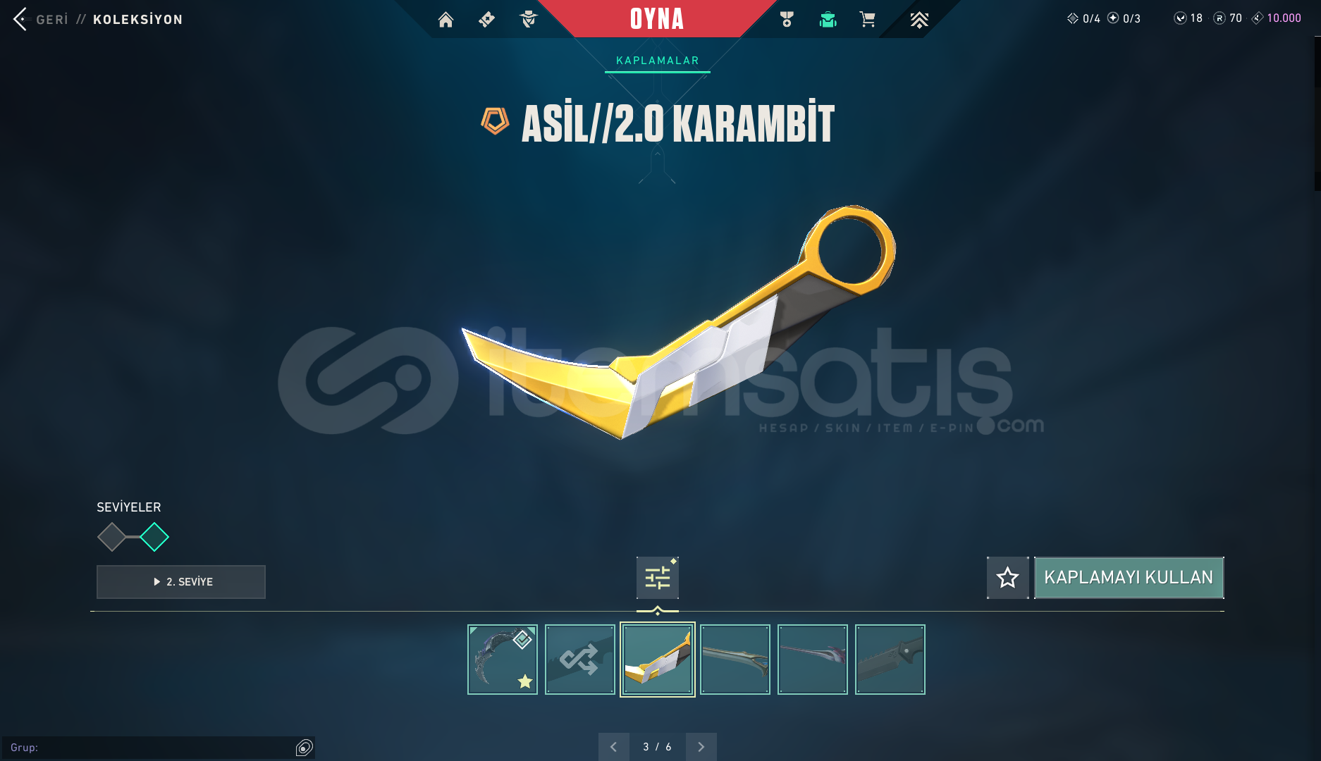 Hesabın içerisindeki bıçaklarYağmacı karambit 4 stili de açıkAsil 2.0 KarambitEbedi fatih 4 stili de açıkİğnekabuk kılıçHesabın içerisindeki VandallarYağmacı vandal 4 stili de açıkRgx 11Z Pro vandal 4 stili de açıkIşık Muhafızları Vandal 4 stili de açıkNeptün vandal 2 stili de açıkHesabın içerisindeki phant...