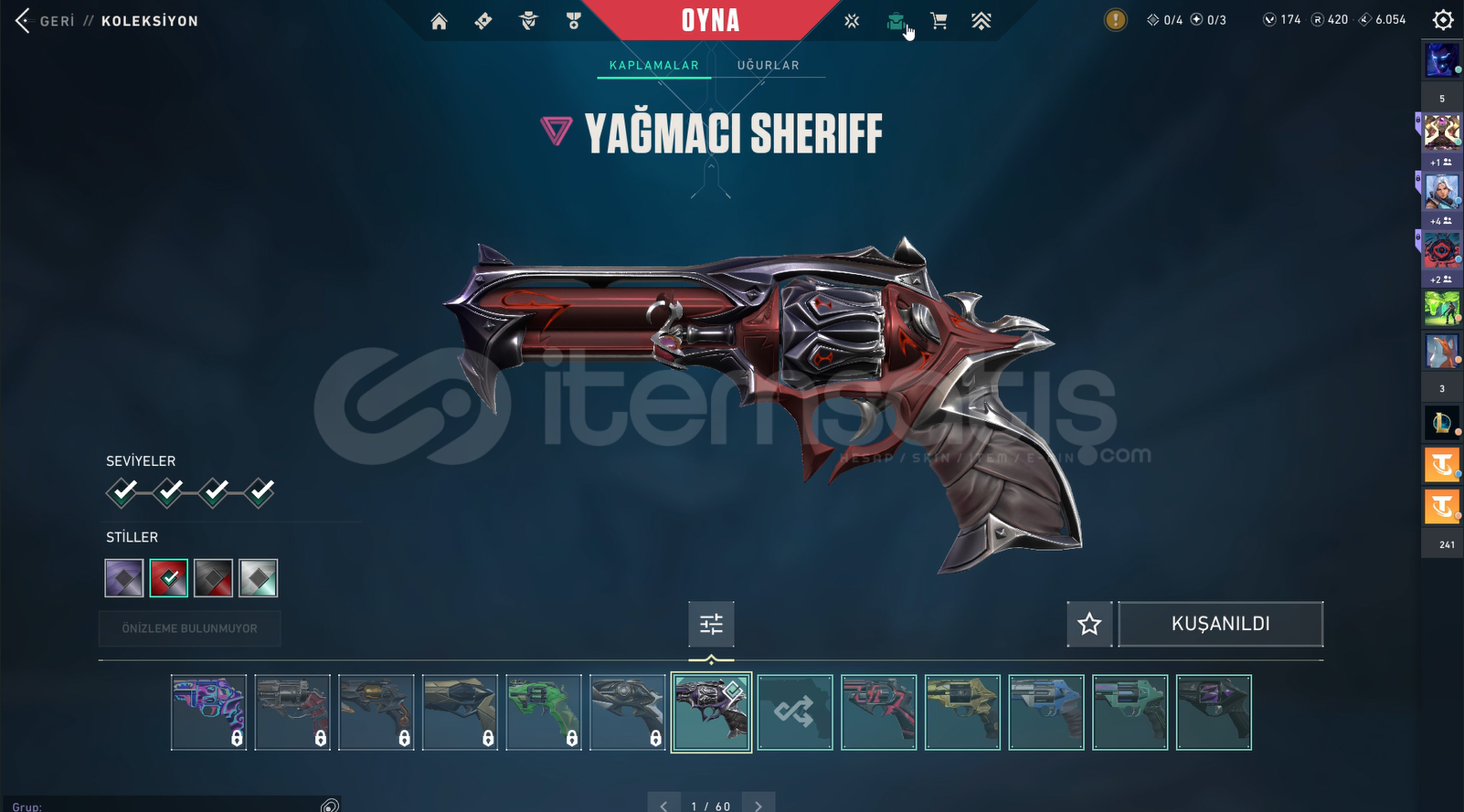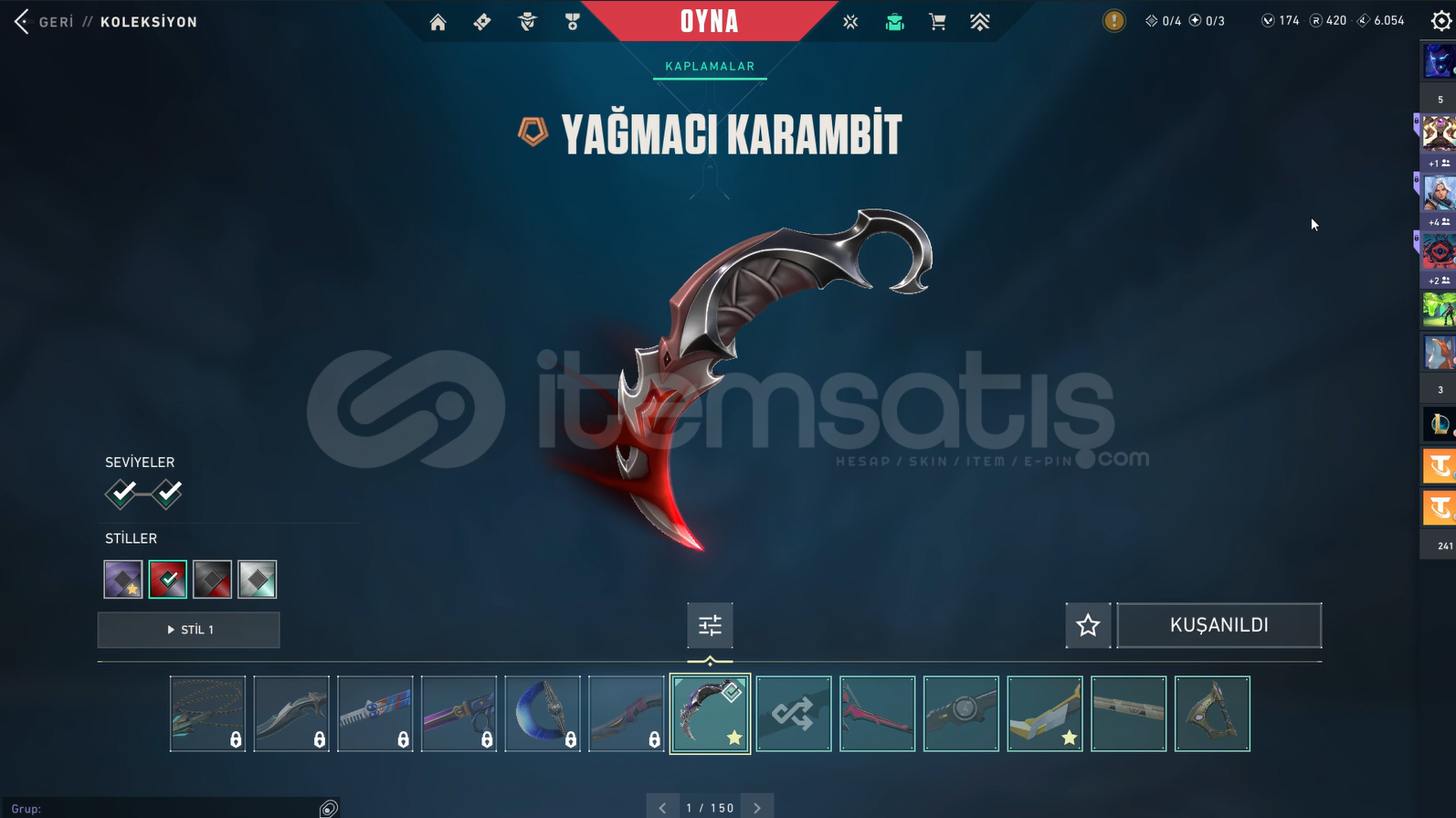 Benim Kendi HesabımdırHesabım Yüksek seviyedir ihtiyaçtan satıyorum alttaki skinler ve battlepass lar mevcuttur tüm karakterler açıktırpazarlık YapılırFatih GhostYağmacı SheriffDelipop PhantomAsil Vandal Champions 2024 Vandal Protokol SpectreAsil ClassicRGX KelebekAsil KarambitYağmacı KarambitKöken Operator