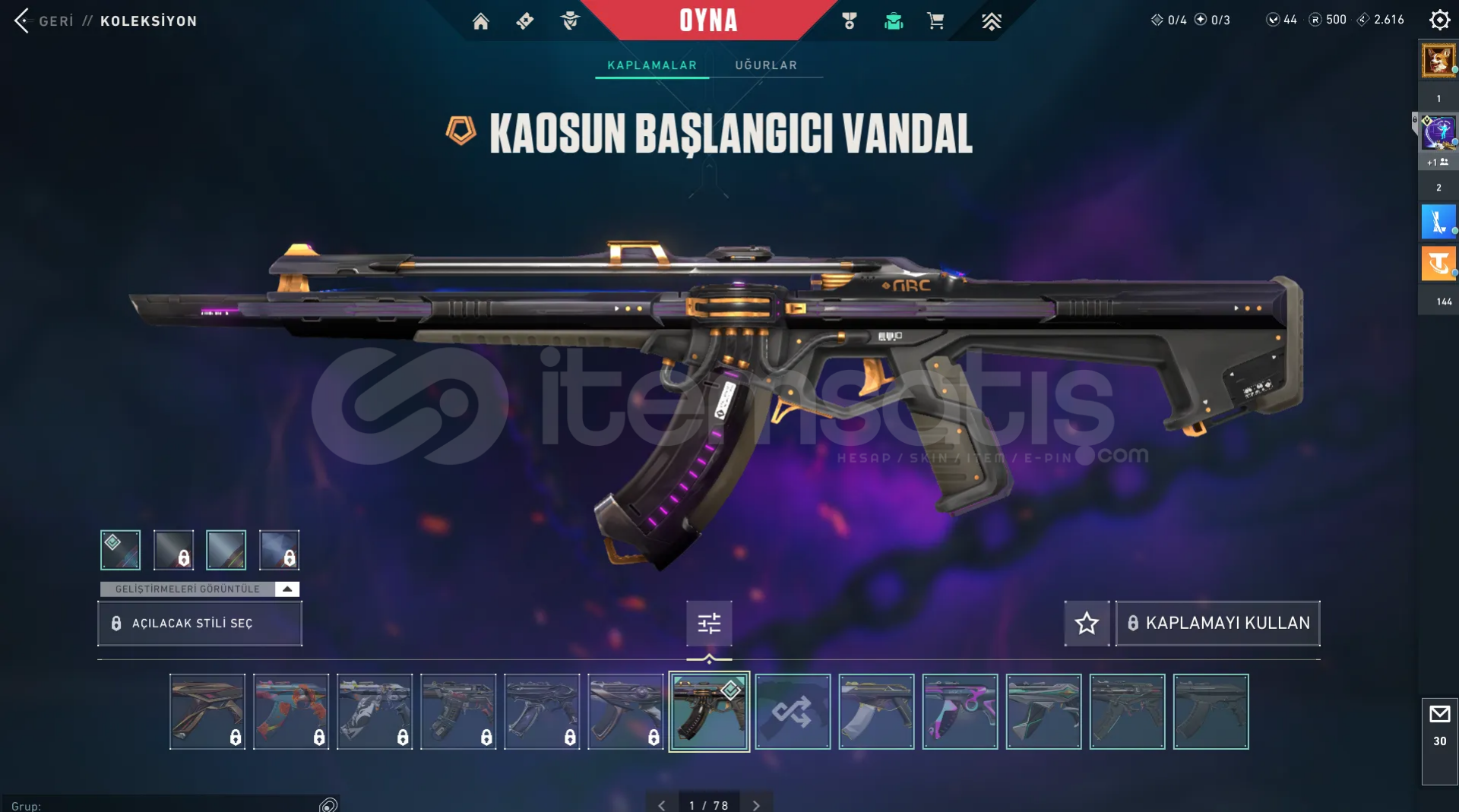 75+ skinli, TR Valorant hesabı. Kaos, Uzaylı Avcısı, Kelebek, Asil classic ve daha fazlası