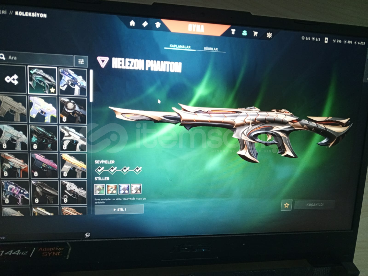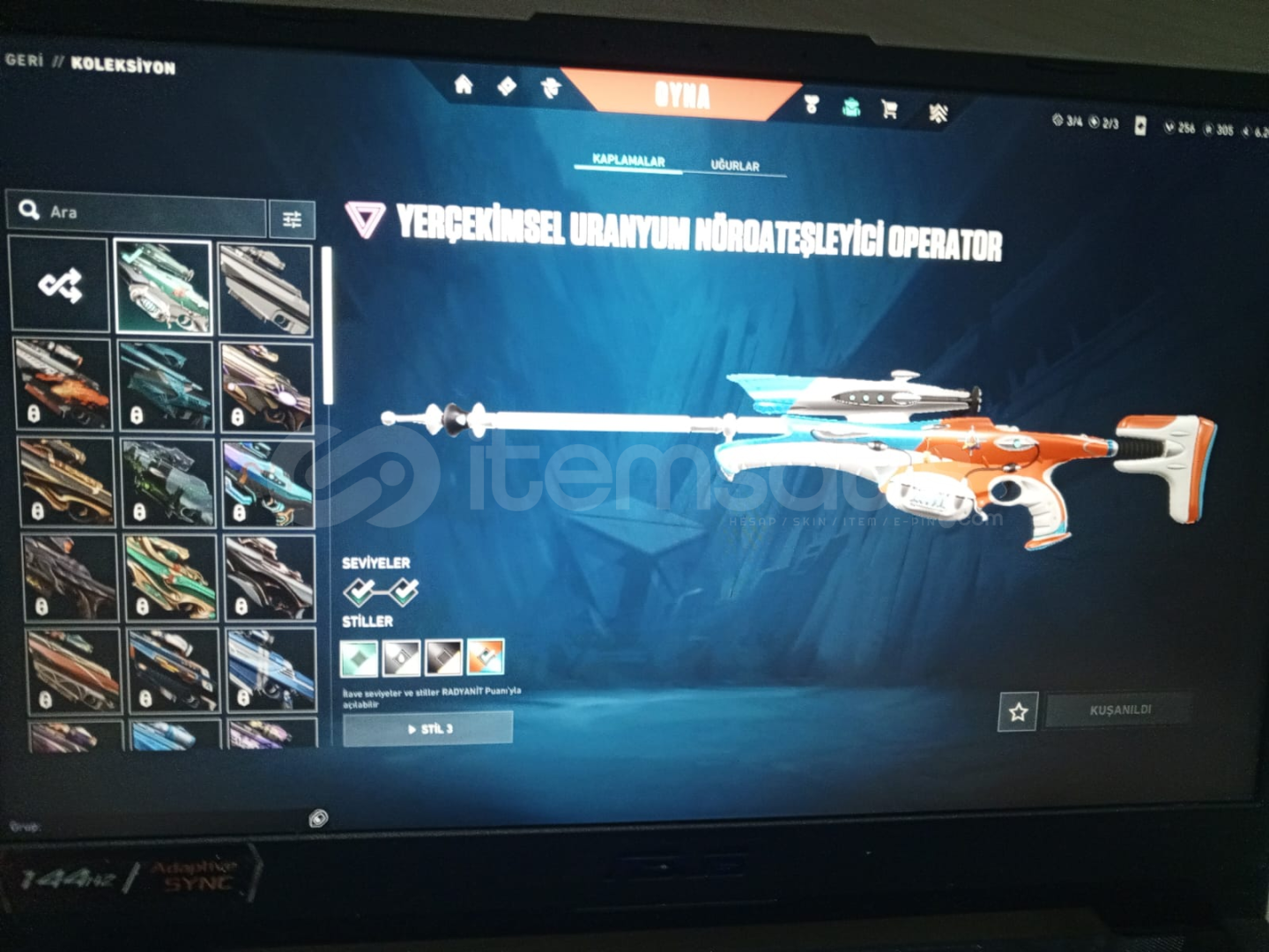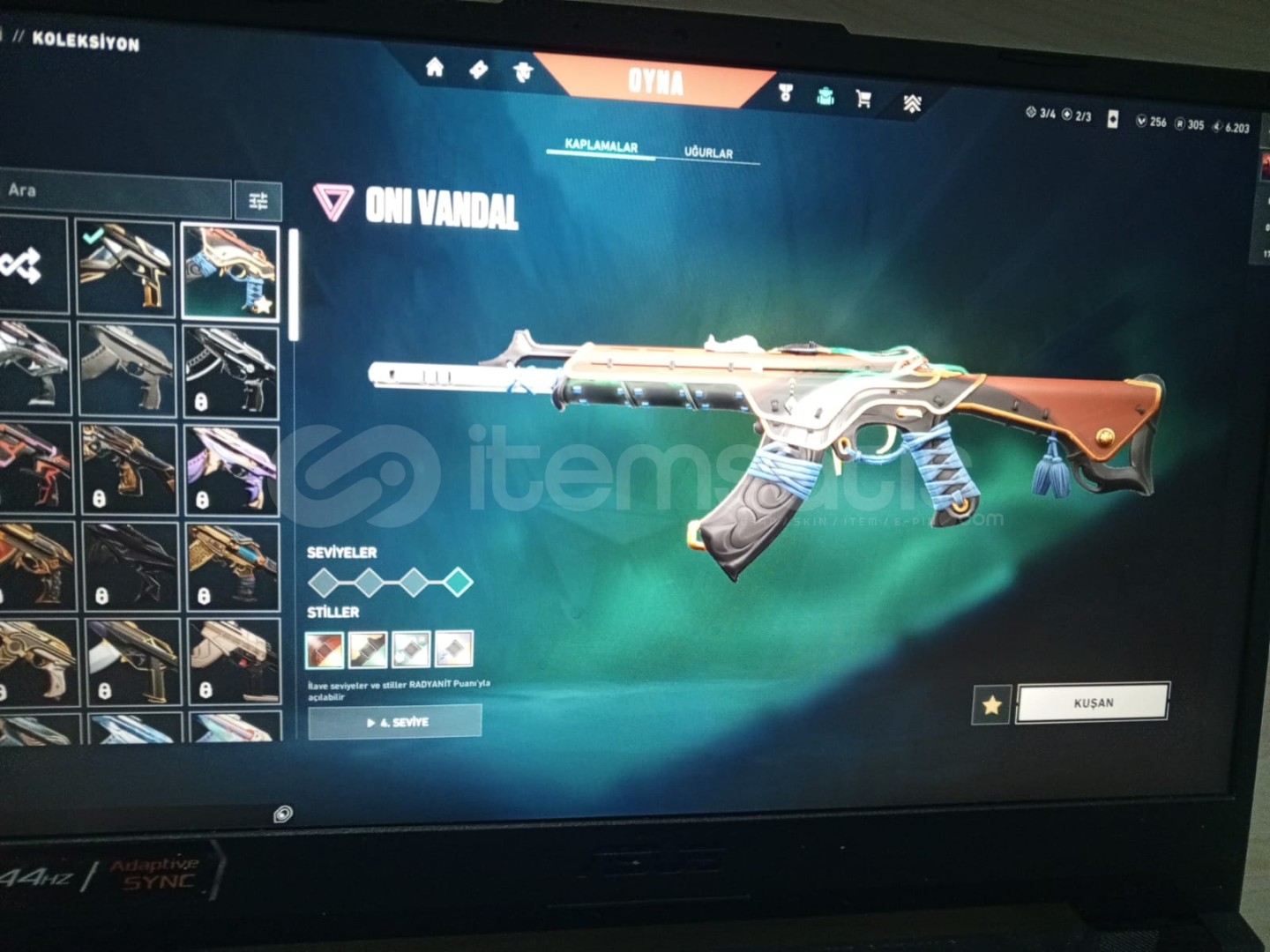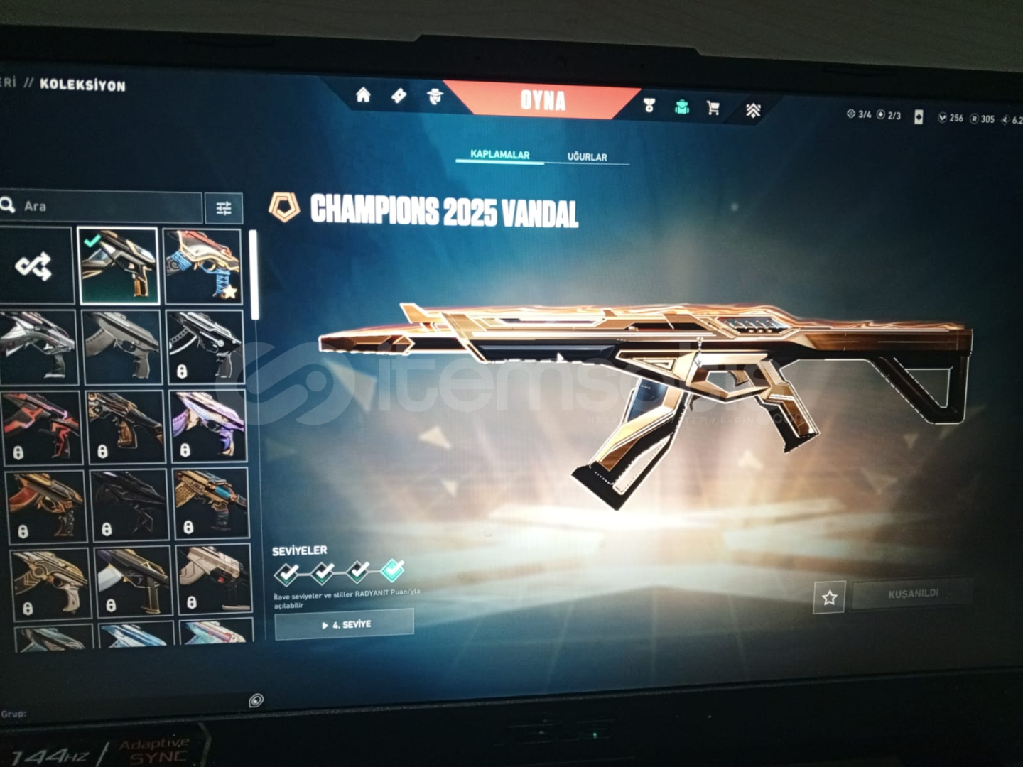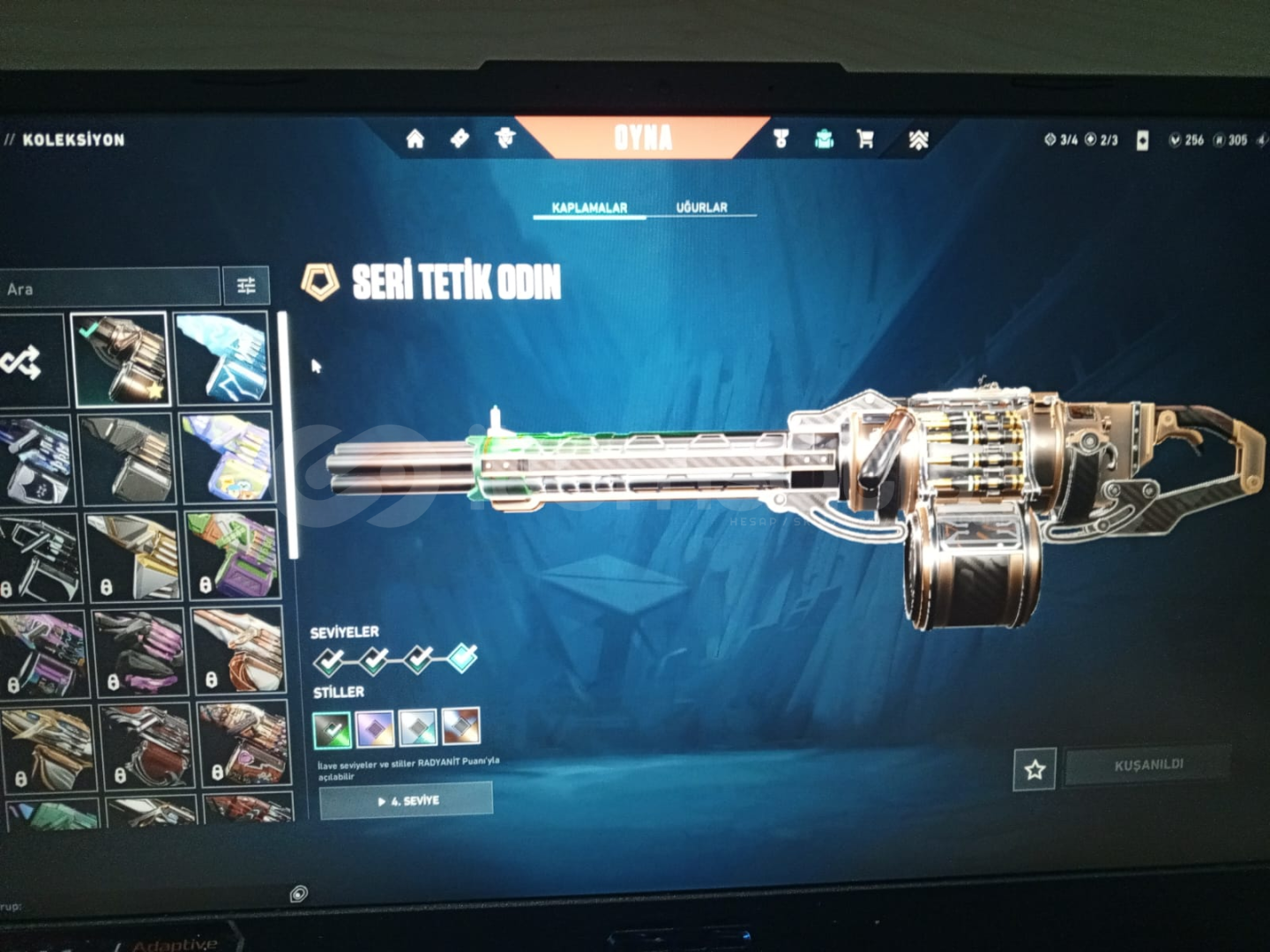 Vandal:oni Vandal champions 2025 VandalPhantom:helezon ODİN:seri tetik flaş ODİN operatör:yerçekimsel uranyum nöro ateşleyici Bıçak:iyon karambitExtra 2 battle pass 305 radyanit puanı