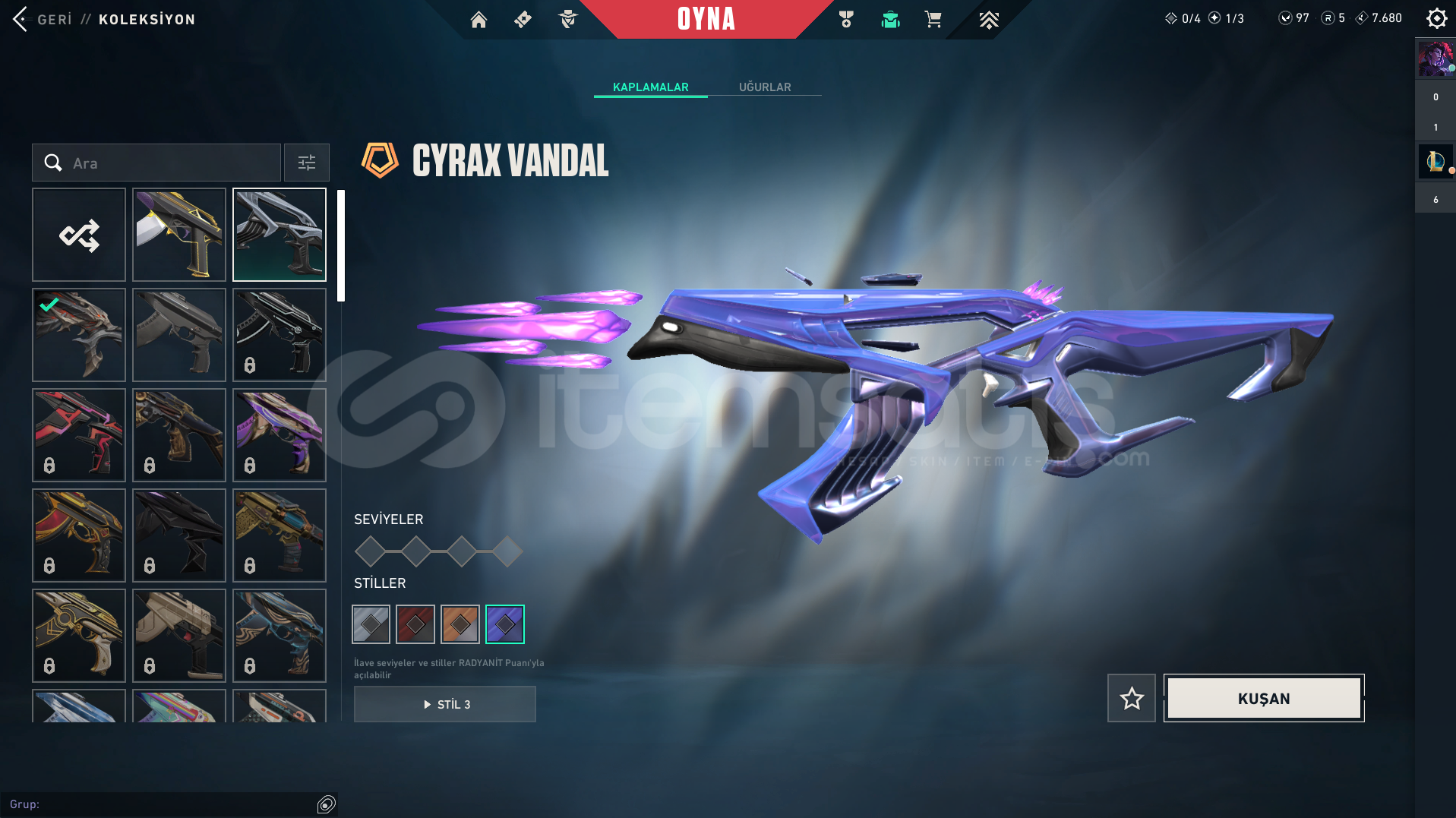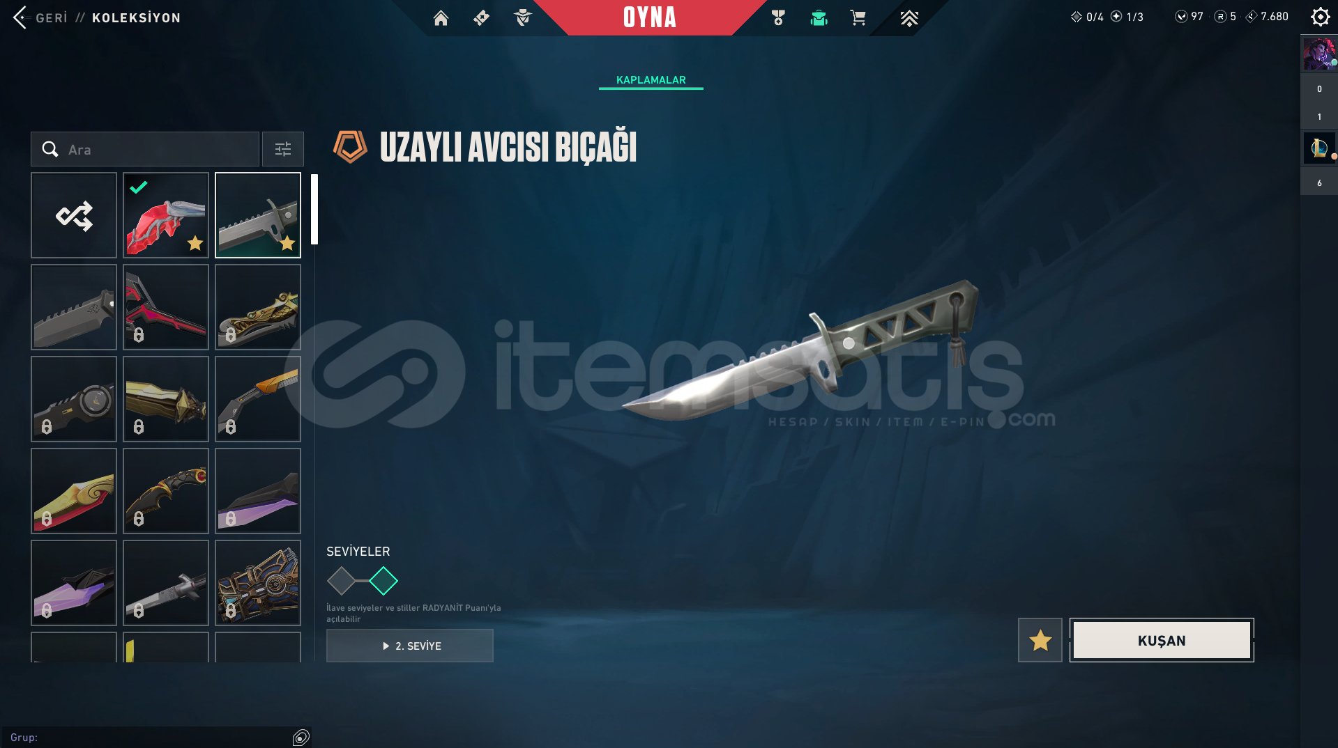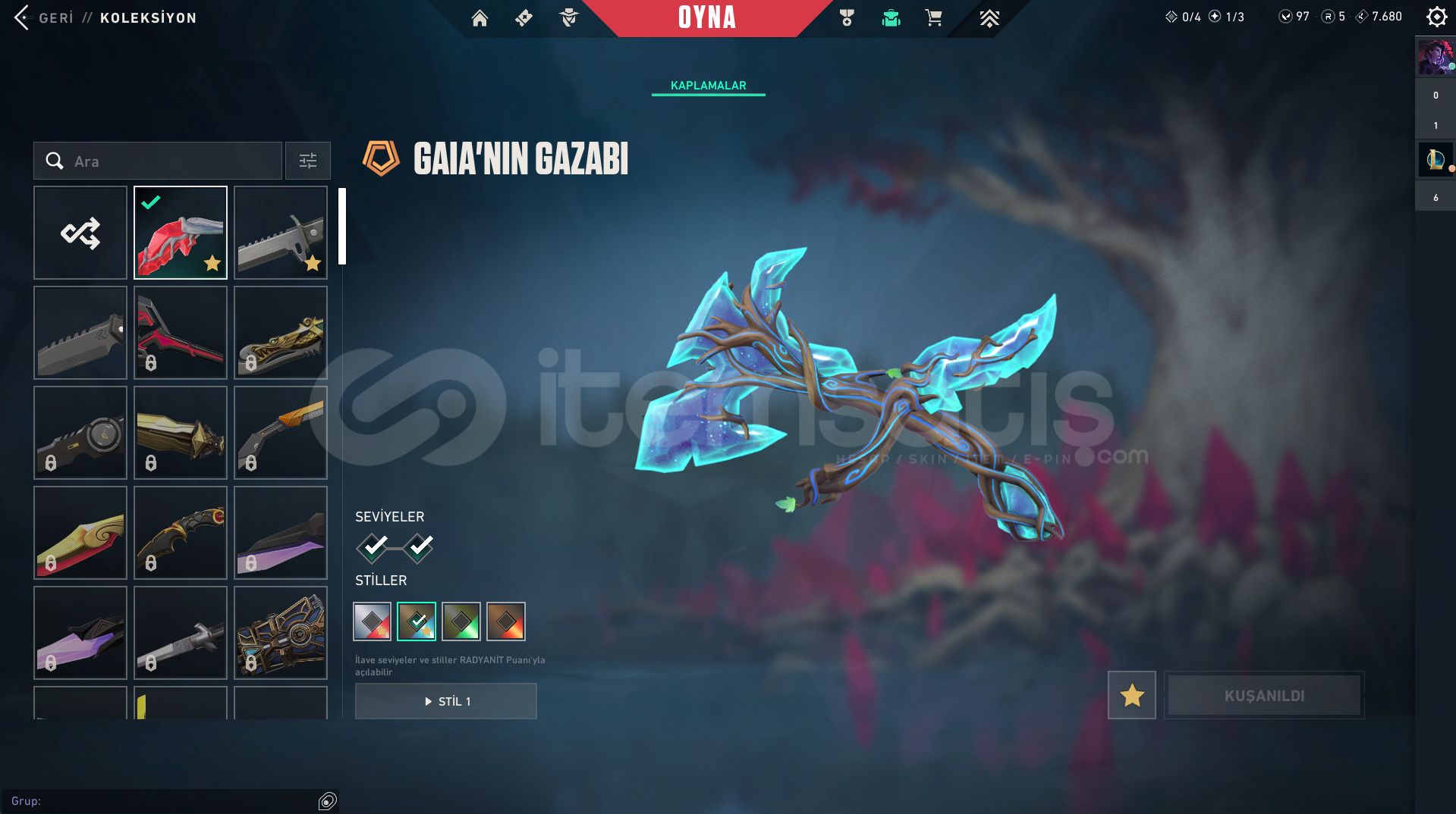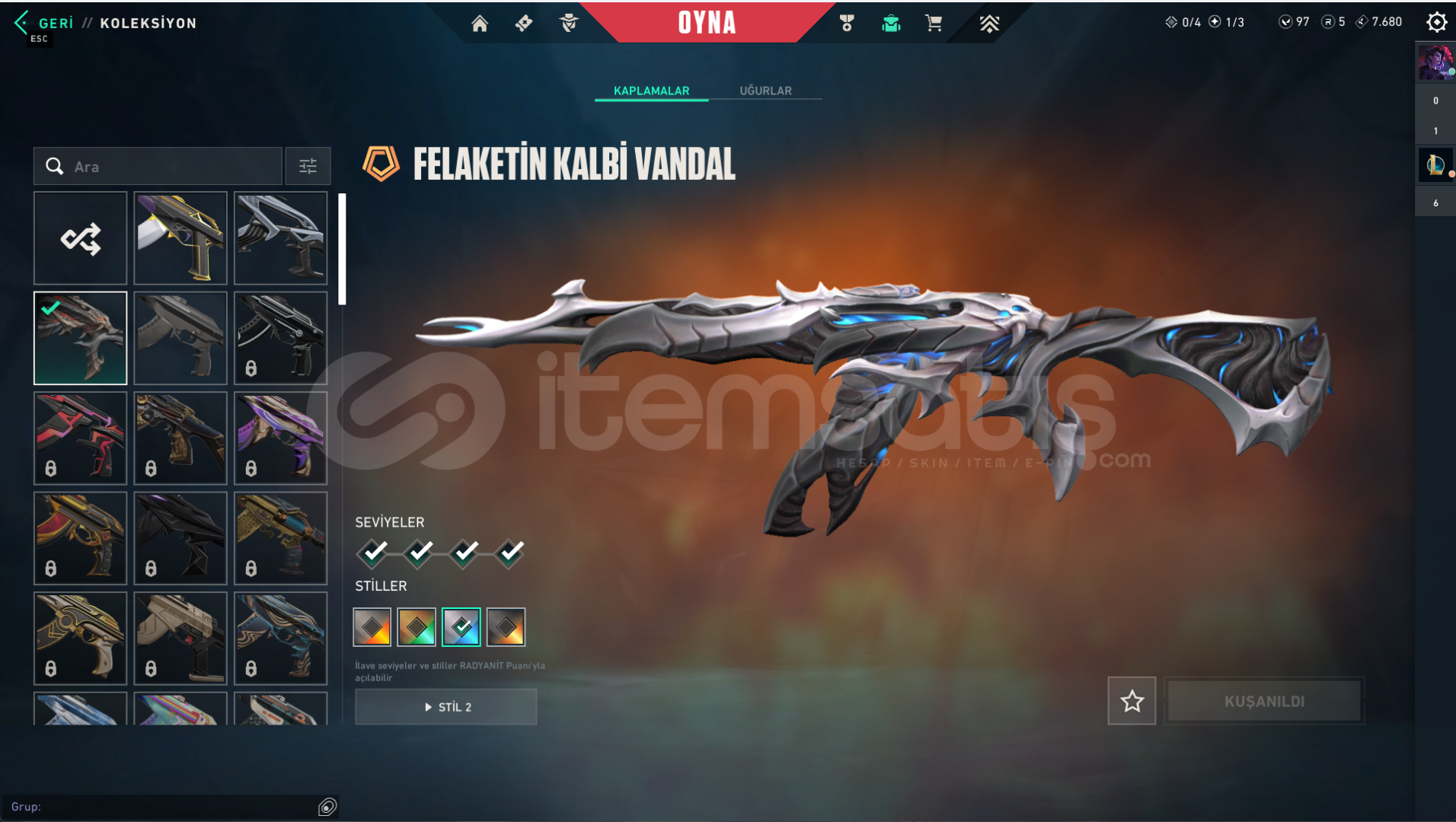 FELAKETİN KALBİ VANDALCYRAX VANDALASİL VANDALGAİANIN AZABI BIÇAKUZAYLI AVCISI BIÇAK55 SEVİYETR HESABIRANK: GOLD 2PAZARLIK PAYI VARDIR