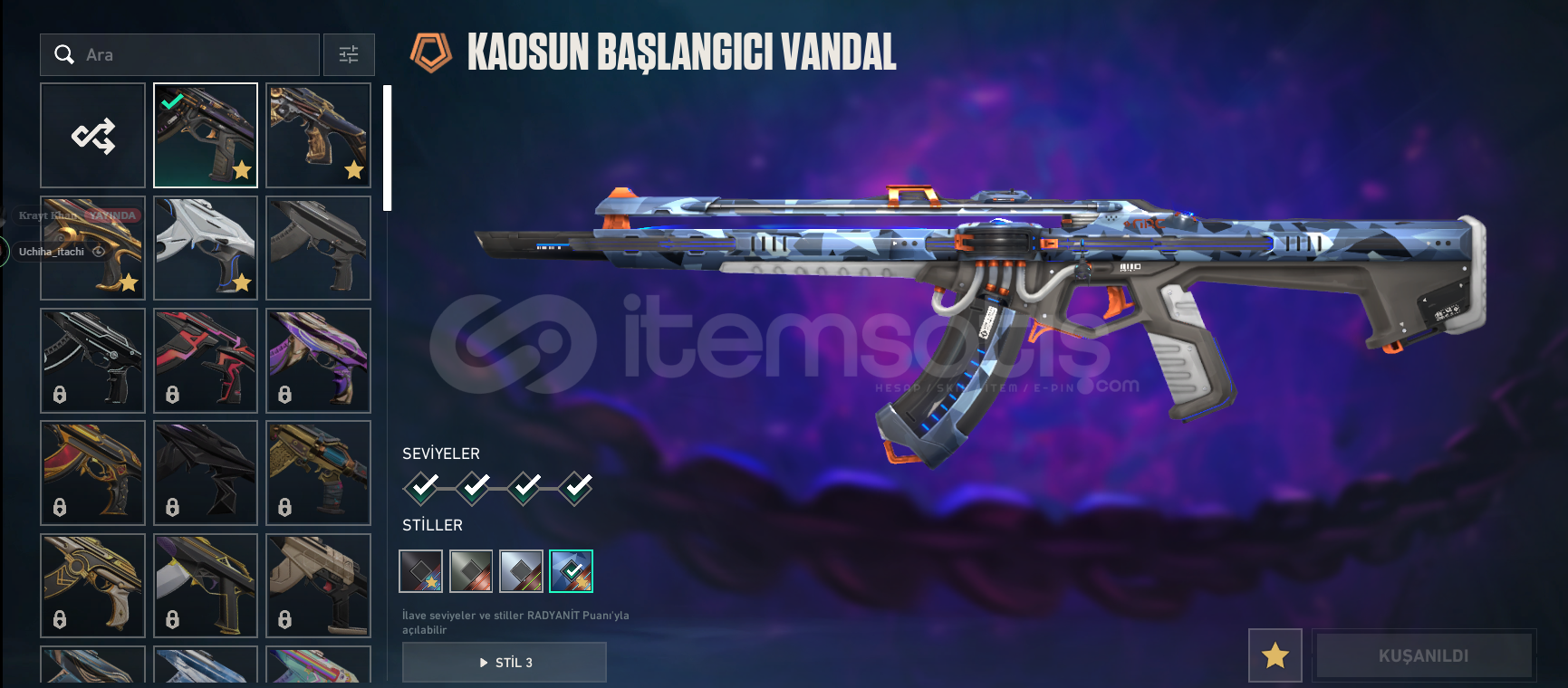Kaos Vandal,Aemondir Vandal, Cesur Yürek Vandal, İyon Vandal Yağmacı Phantom İyon Sheriff Cesur Yürek Ghost Köken bucky Uzaylı Avcısı Bıçak,Asil karambit
