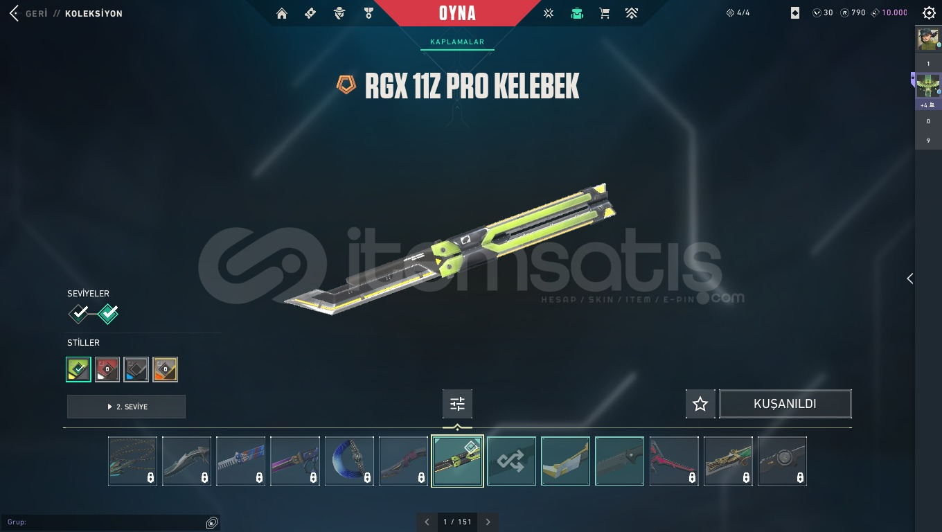 Hesabımdaki skinlerKaos vandal Yağmacı vandalIşık muhafızları opAsil karambitRgx kelebekVe diğer küçük silahların hepsinde ücretsiz skinler mevcut
