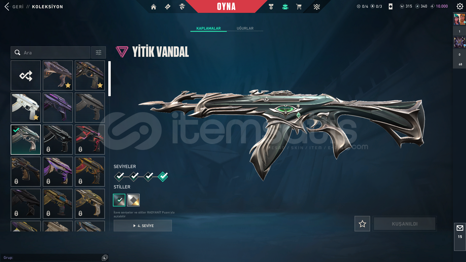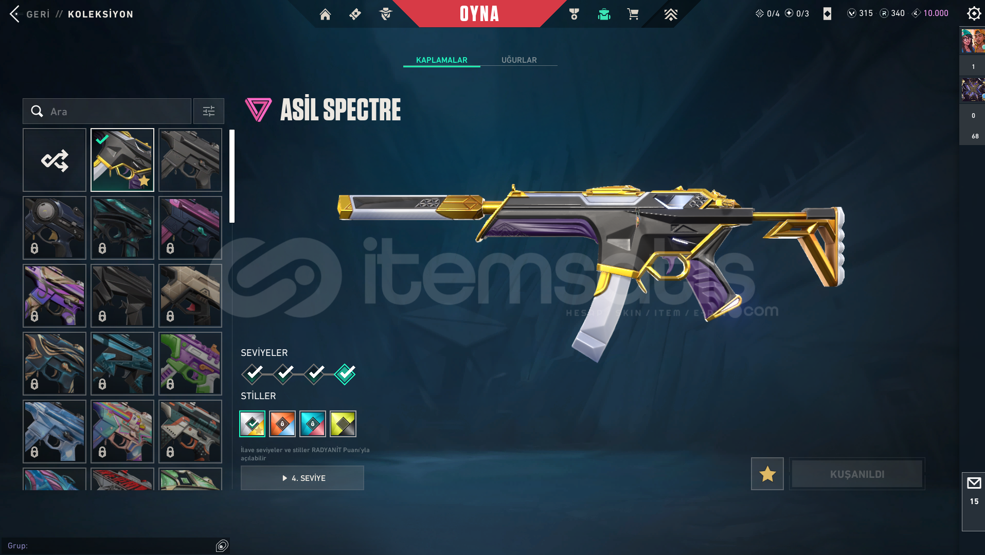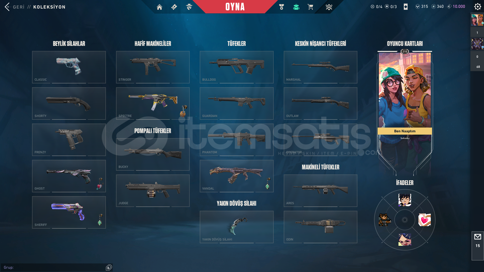VANDAL-Kaos vandal-Ejder vandal-Yitik vandal-Neptün vandal-EXO vandalBIÇAK-Yağmacı KarambitSPECTRE-asil 2.0 spectreGHOST-Fatih ghost-diğer skinlerin çoğunda bir sürü battlepass skini mevcuttur-hesapta 315vp bulunur-yücelik elo görmüş ve birçok silahta yücelik uğurluğu varLOLDE 194 SKİNİ BULUNUR VE GOLD RANKDADIR-kimlik onaylı itemsatış satıcısı güvencesiyle-paza...