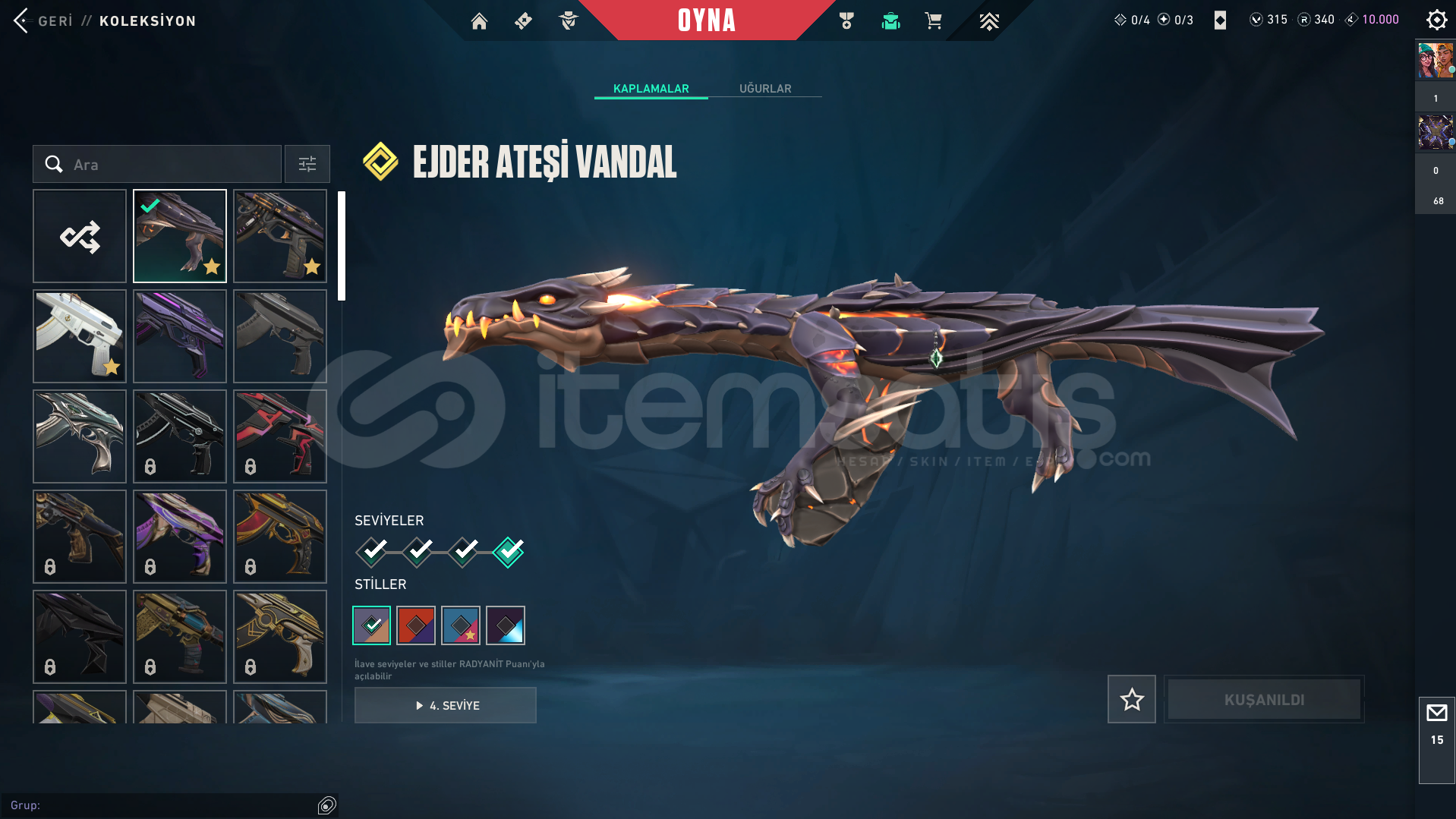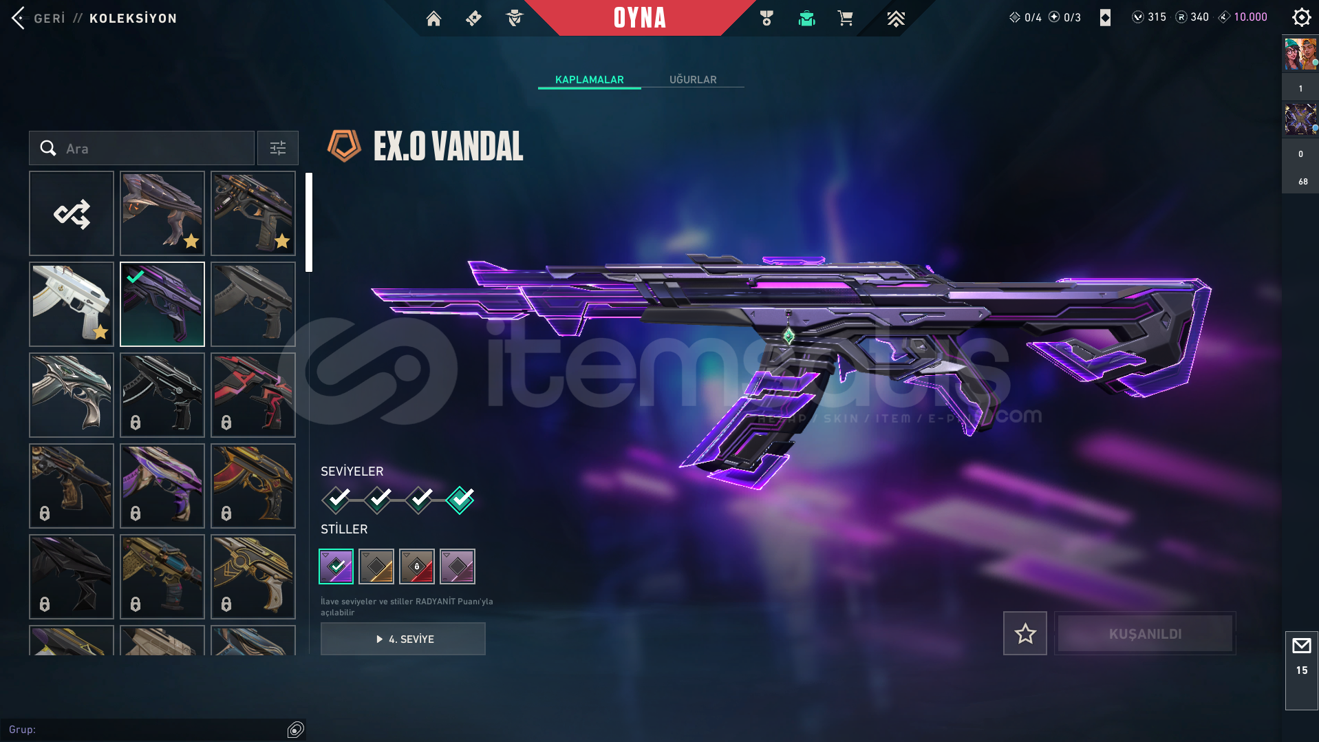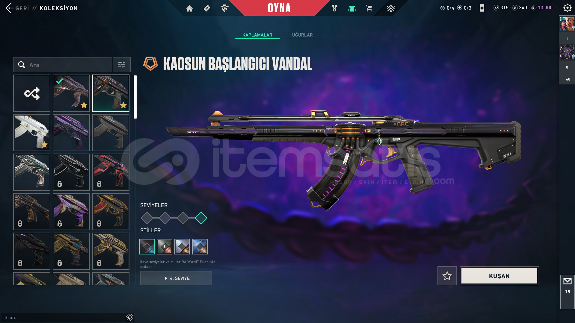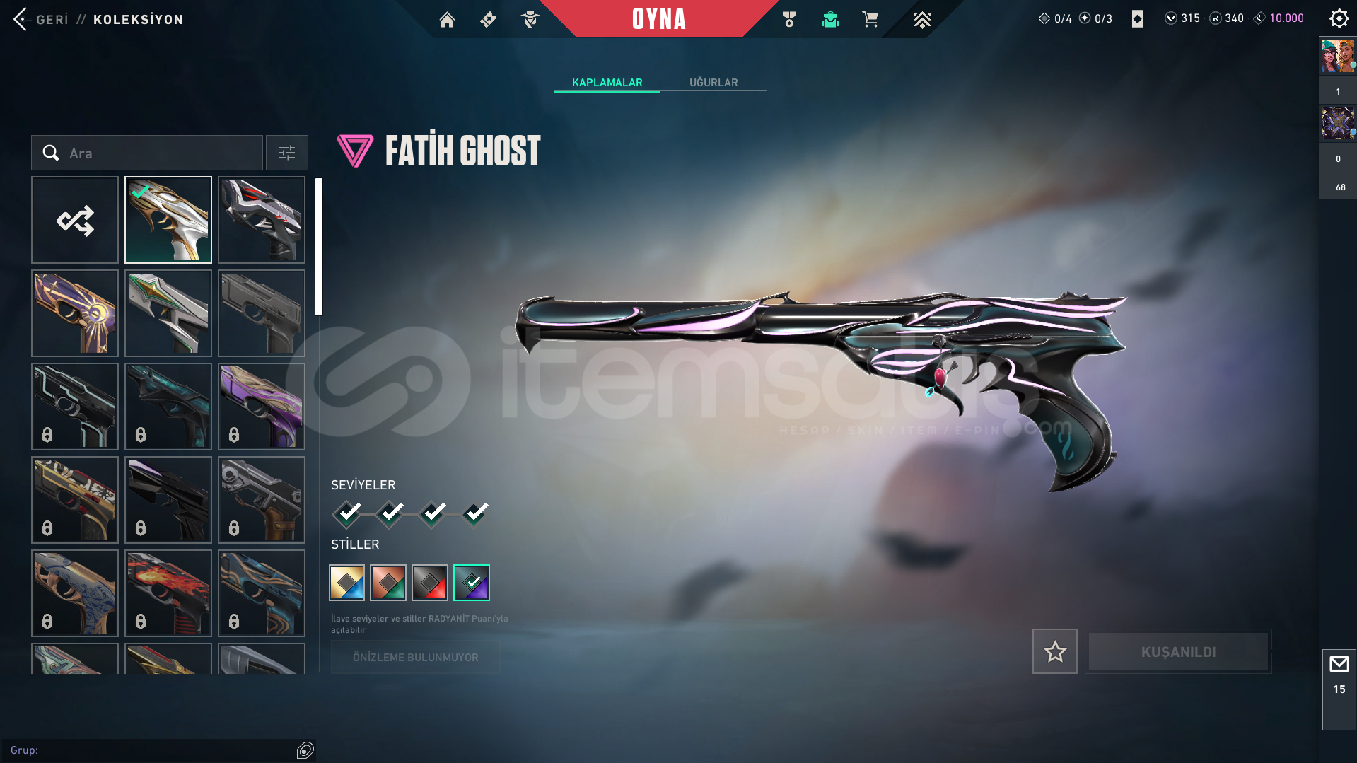 VANDAL-Kaos vandal-Ejder vandal-Yitik vandal-Neptün vandal-EXO vandalBIÇAK-Yağmacı KarambitSPECTRE-asil 2.0 spectreGHOST-Fatih ghost-diğer skinlerin çoğunda bir sürü battlepass skini mevcuttur-hesapta 315vp bulunur-yücelik elo görmüş ve birçok silahta yücelik uğurluğu varLOLDE 194 SKİNİ BULUNUR VE GOLD RANKDADIR-kimlik onaylı itemsatış satıcısı güvencesiyle-paza...
