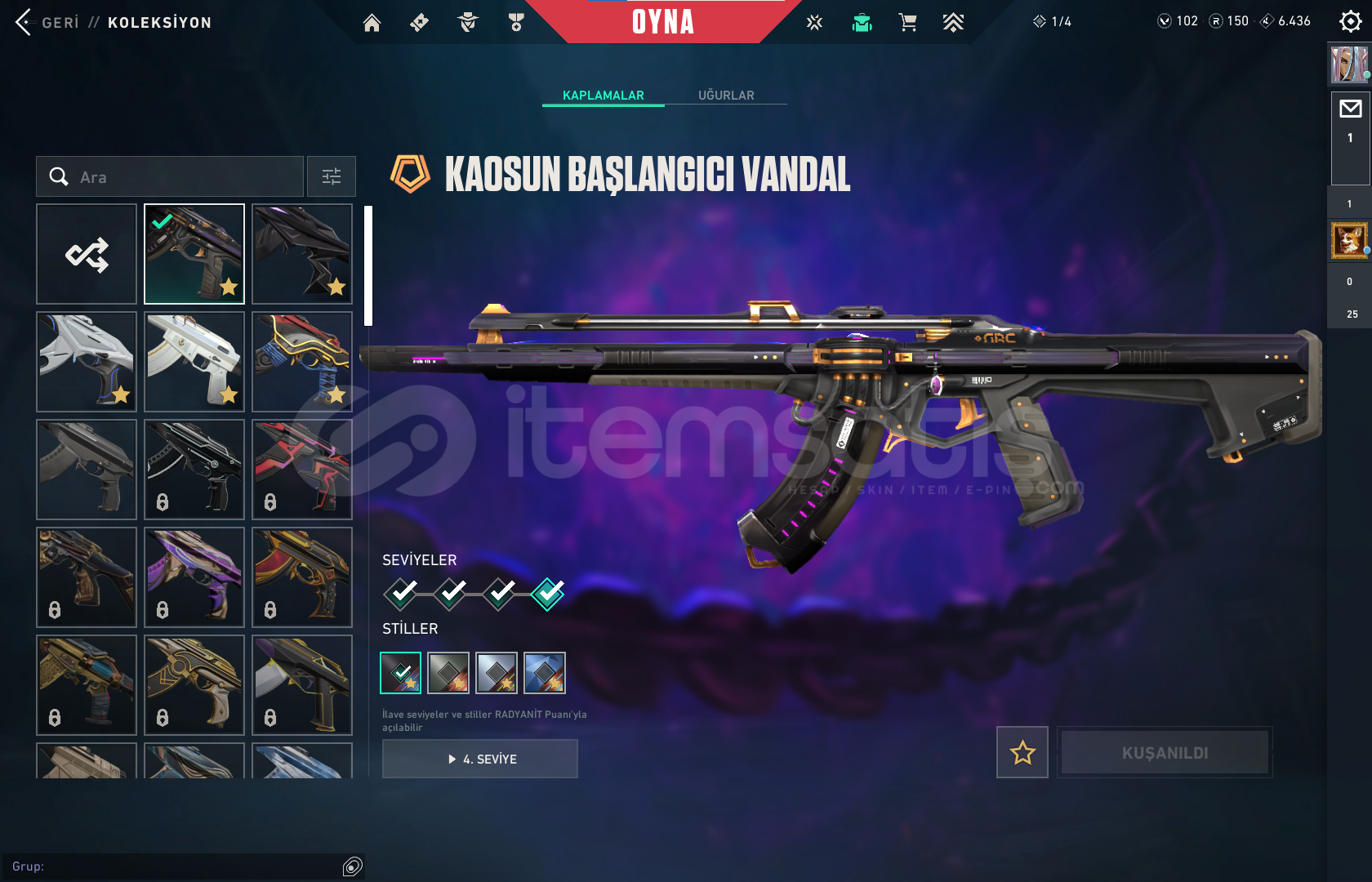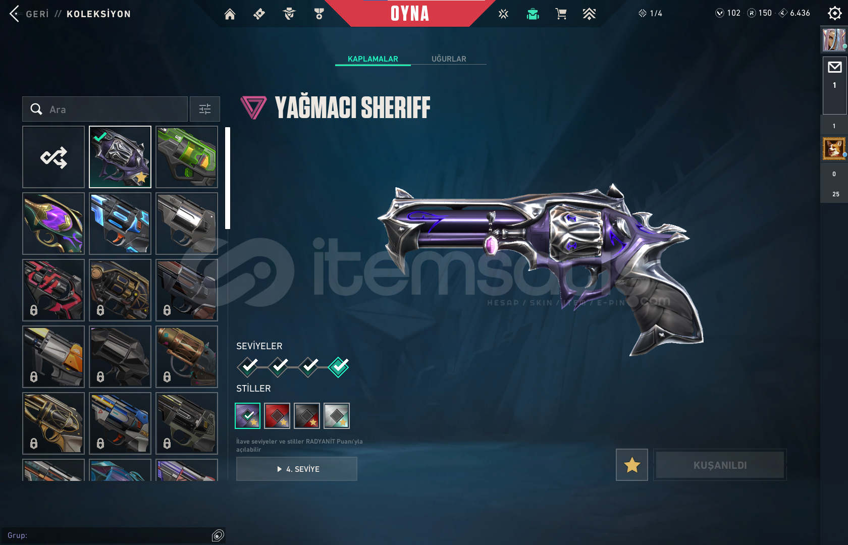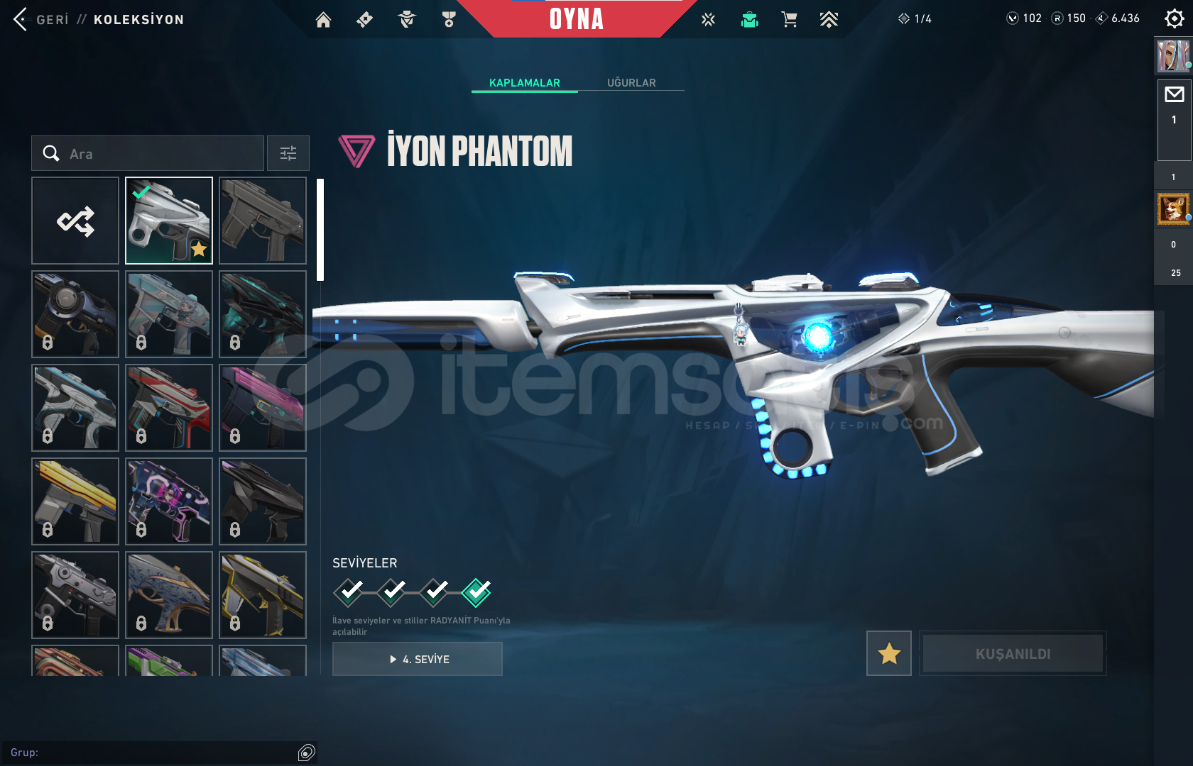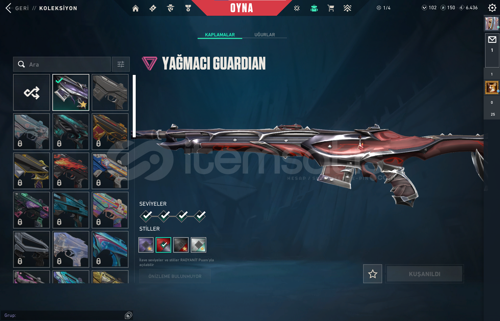 ALMADAN ONCE YAZINHAFTAİÇI 16:00-23:00 ARASI HAFTA SONU 14:00-24:00 ARASI AKTİFİMTertemiz Mainlemelik HesapÖnceden Dia Olmuş Ama Güncel Olarak GümüşYeni Gelen Vp Zamlarına Göre Çok Uygunİsim Değişme Hakkına Az KalmıştırHESAPTAKİ PAHALI SKİNLER NELER?Classic: AsilGhost: SihirPunkSheriff: YağmacıGuardian: YağmacıPhantom: İyonVandal: Kaos,iyon,anomali,oni,nept&u...