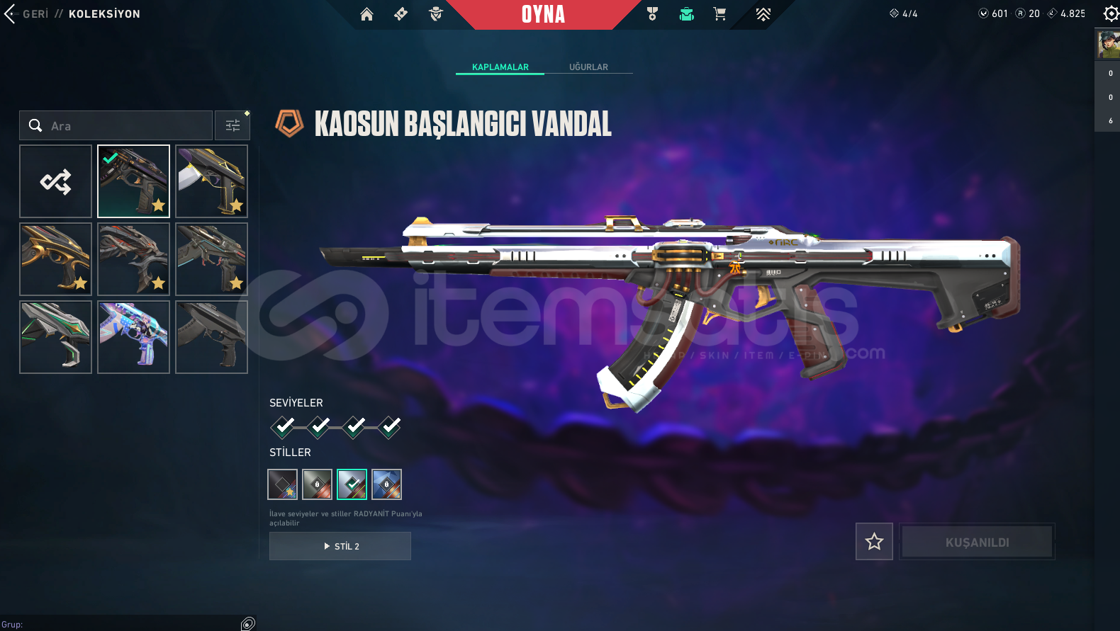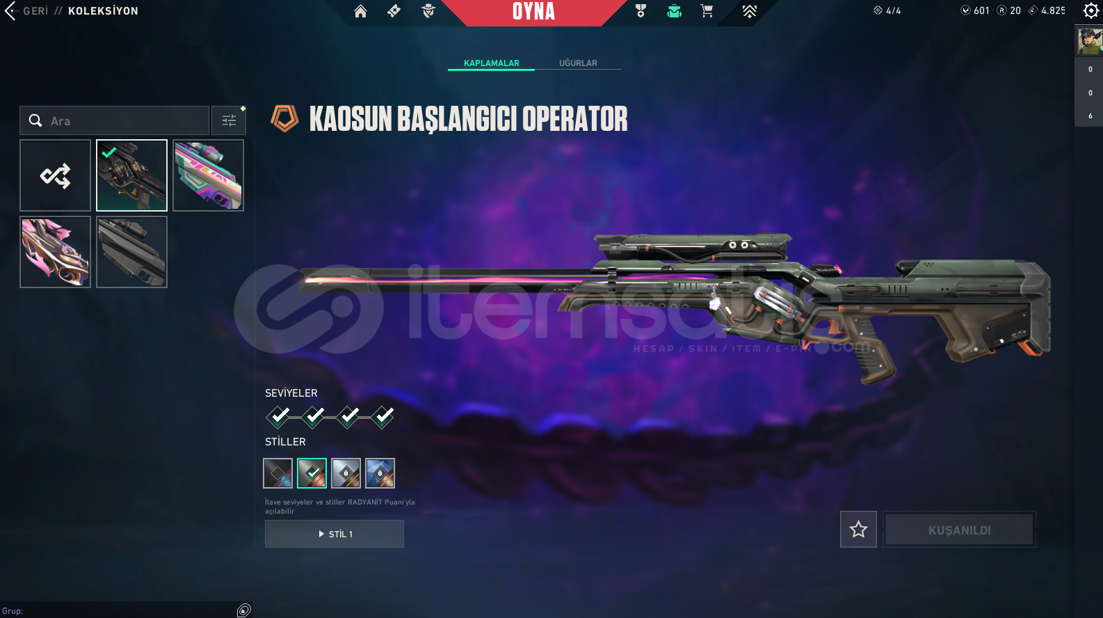 İhtiyacım olduğu için satıyorum, fiyatta pazarlık yoktur. İçerik aşağıda;FNC x VCT 2024 ClassicGaia GhostAnomali SheriffSır çiçeği SheriffSır çiçeği JudgeSır çiçeği PhantomYağmacı PhantomKaos VandalAsil VandalCesur Yürek VandalFelaketin Kalbi VandalSoğuk Çelik VandalKuronami MarshallKaos OperatorSır çiçeği Operator2 ...