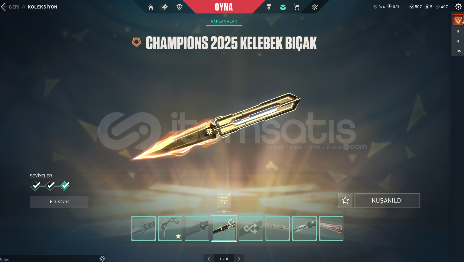champions 2025 kelebek, faz koruyucu bıcak , vct 2025 karambit , uzaylı avcısı bıcak harici 2 adette battle pass bıcagı