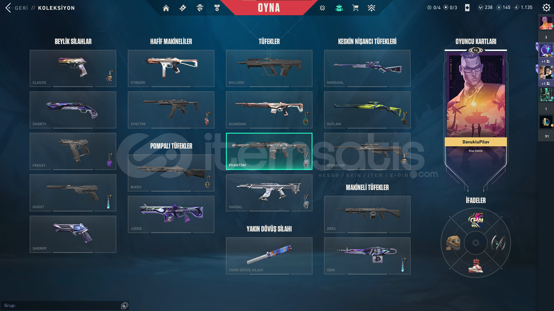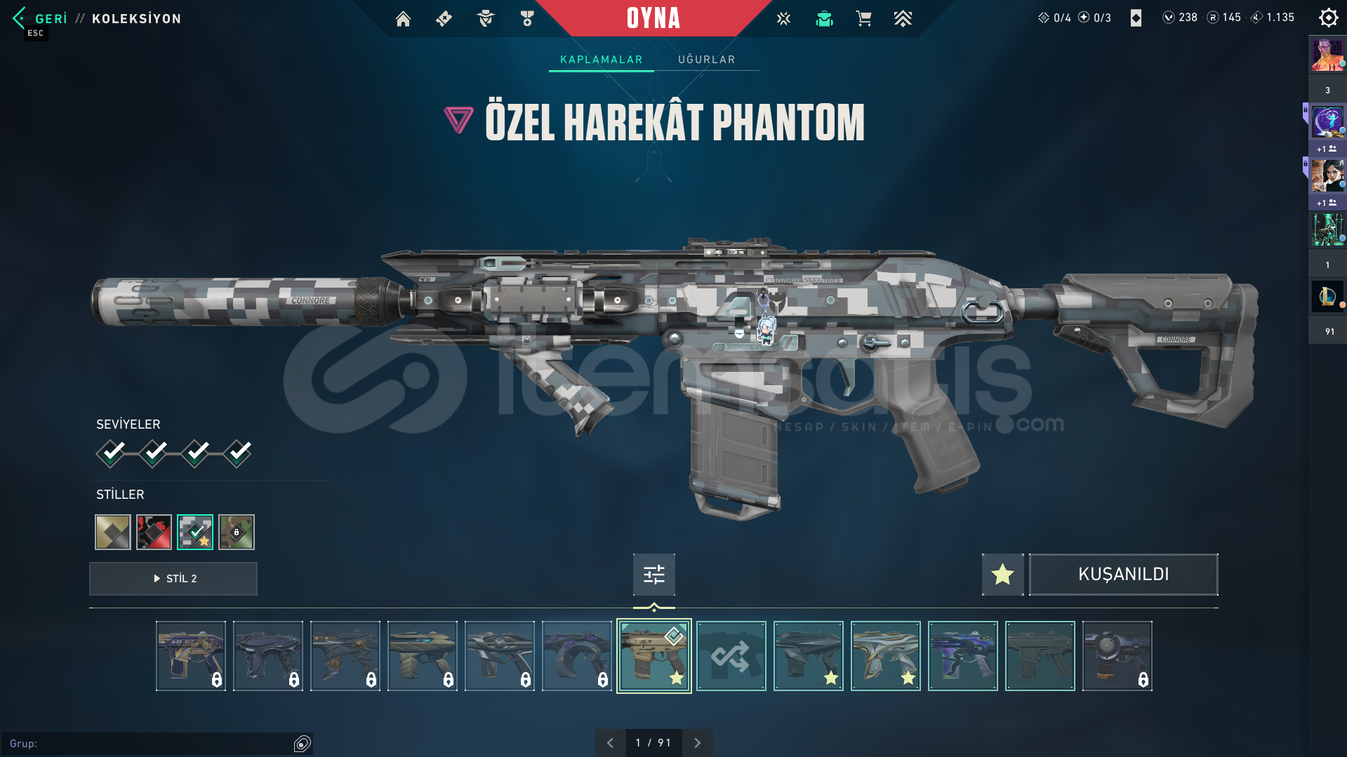 İÇİNDEKİLER. KURONAMİ VANDAL ULUPENÇE VANDAL OZEL HAREKAT PHANTOM FATIH PHANTOM ANOMALİ PHANTOM YORU KELBEK TARAK 1X BATTLE PASSBİLGİ. HESAP SEVİYESİ 96 DIR MAX GOLD 1 E ÇIKMIŞTIR CHAMBER FULL CLOVE İSE AZ KALMIŞTIR TÜM AJANLAR AÇIKTİR İÇİNDE BİRAZ VP VARDIR GECE PAZARINDA İSE ALINABİLİCEK SKNLER BULUNUR