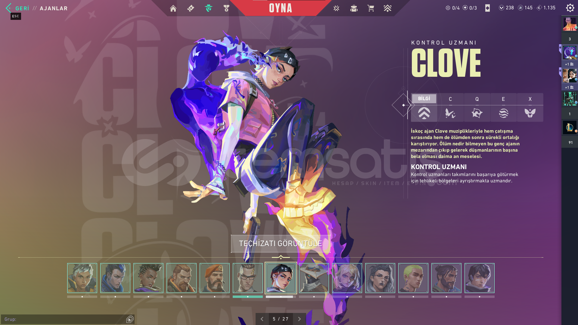 BİLGİ. HESAP SEVİYESİ 96 DIR MAX GOLD 1 E ÇIKMIŞTIR CHAMBER FULL CLOVE İSE AZ KALMIŞTIR TÜM AJANLAR AÇIKTİR İÇİNDE BİRAZ VP VARDIR GECE PAZARINDA İSE ALINABİLİCEK SKNLER BULUNUR