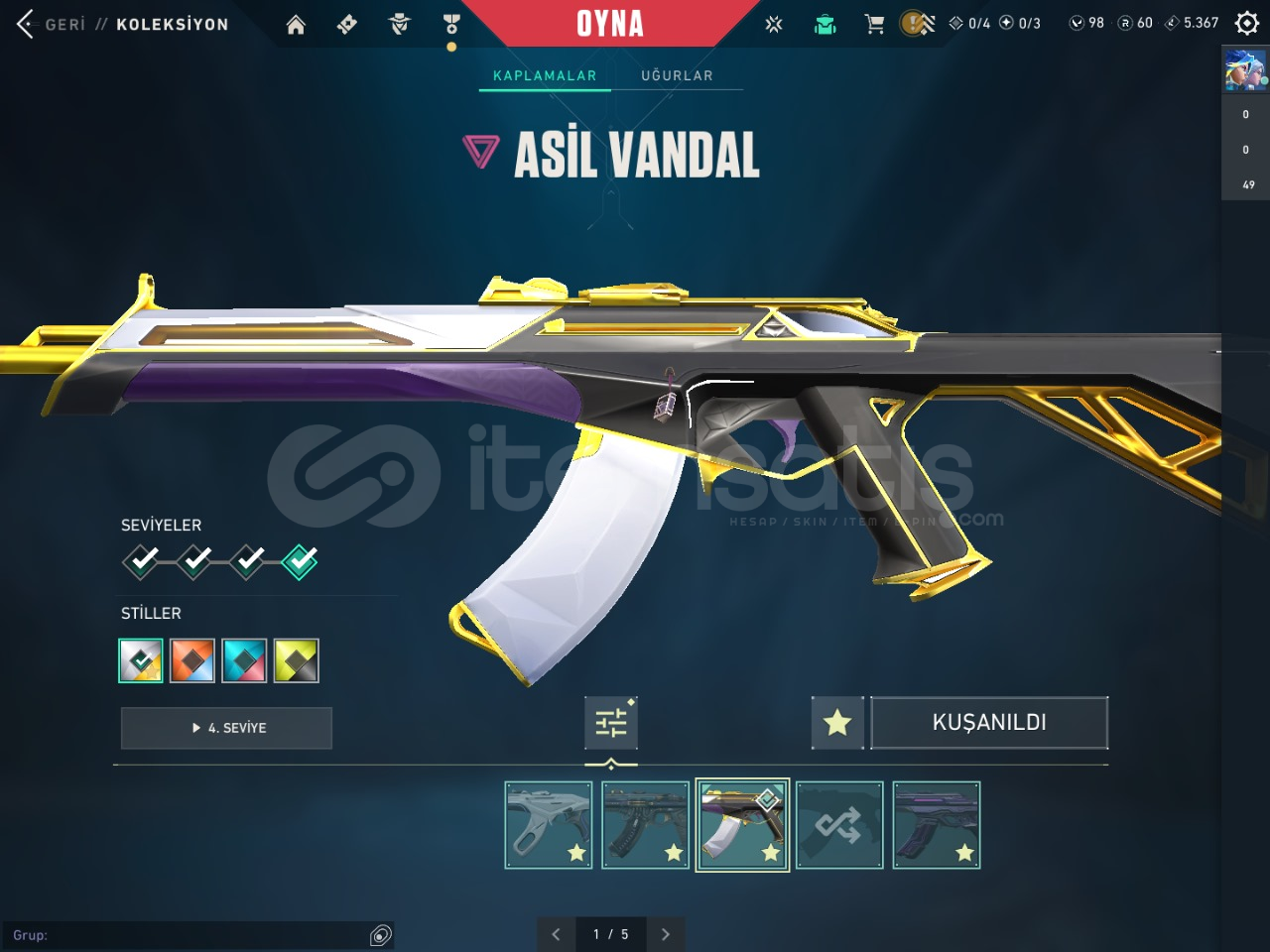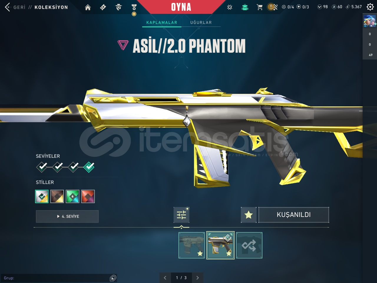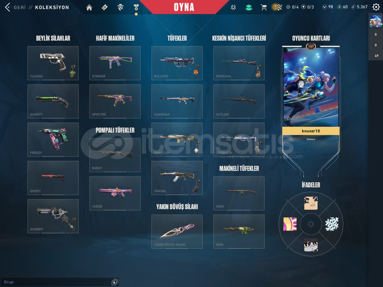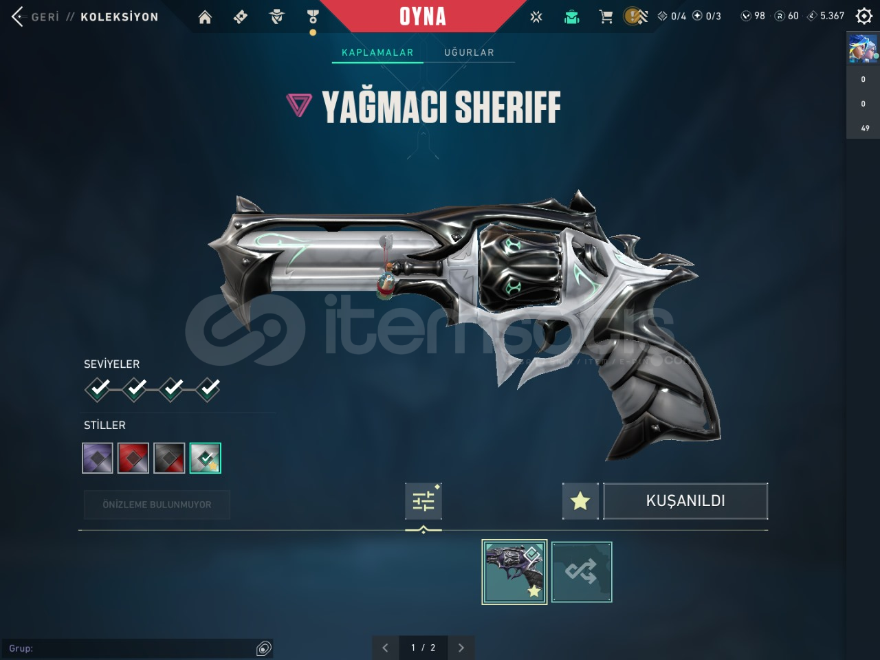 NOT: EU SUNUCUDUR İSTANBUL GİRİŞ YAPAR.RANK: Silver 2LEVEL: 185ENVANTER DEĞERİ: 35.100 VPAraxys Bio-AtomizersMystbloom KunaiMinima KarambitXenohunter KnifeEX.O VandalPrelude to Chaos VandalRecon PhantomPrime VandalIon VandalReaver SheriffPrime//2.0 PhantomLuxe OperatorTOPLAM: 60 Skin📌 Ürün AçıklamasıErişim ve E-Posta BilgileriSatın alma işlemi tamamlandıktan sonra tarafınıza kullanıcı adı...