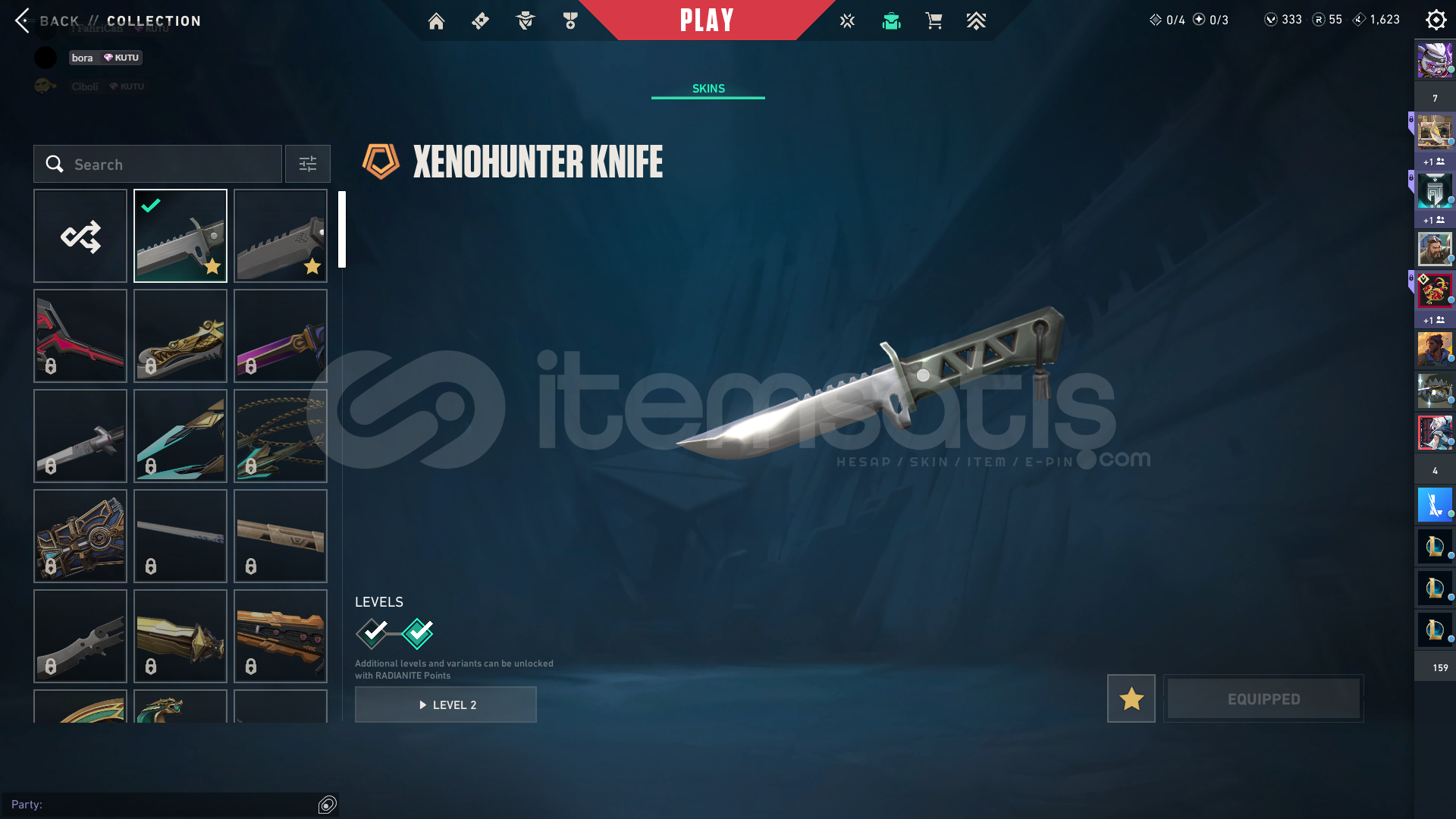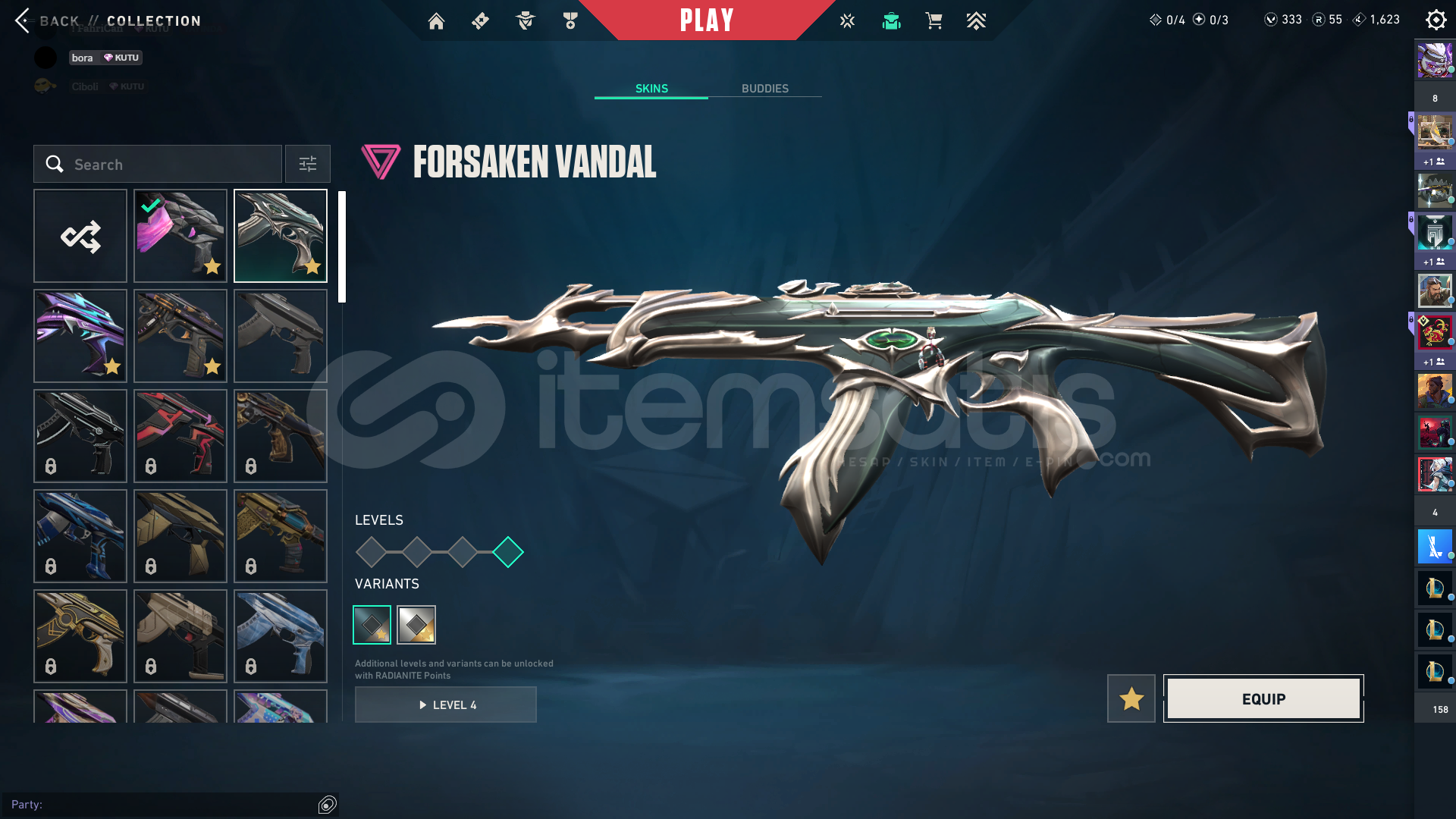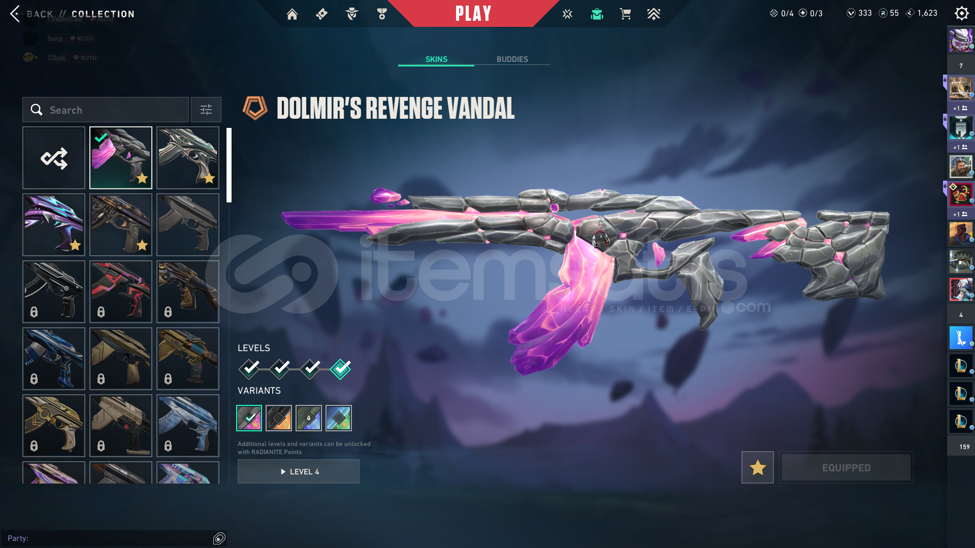 dolmir vandal kaos vandal yitik vandal oni phantom uzayli avcisi bicagi mevcuttur ve battle pass skinleri dahil bircok secenek mevcuttur