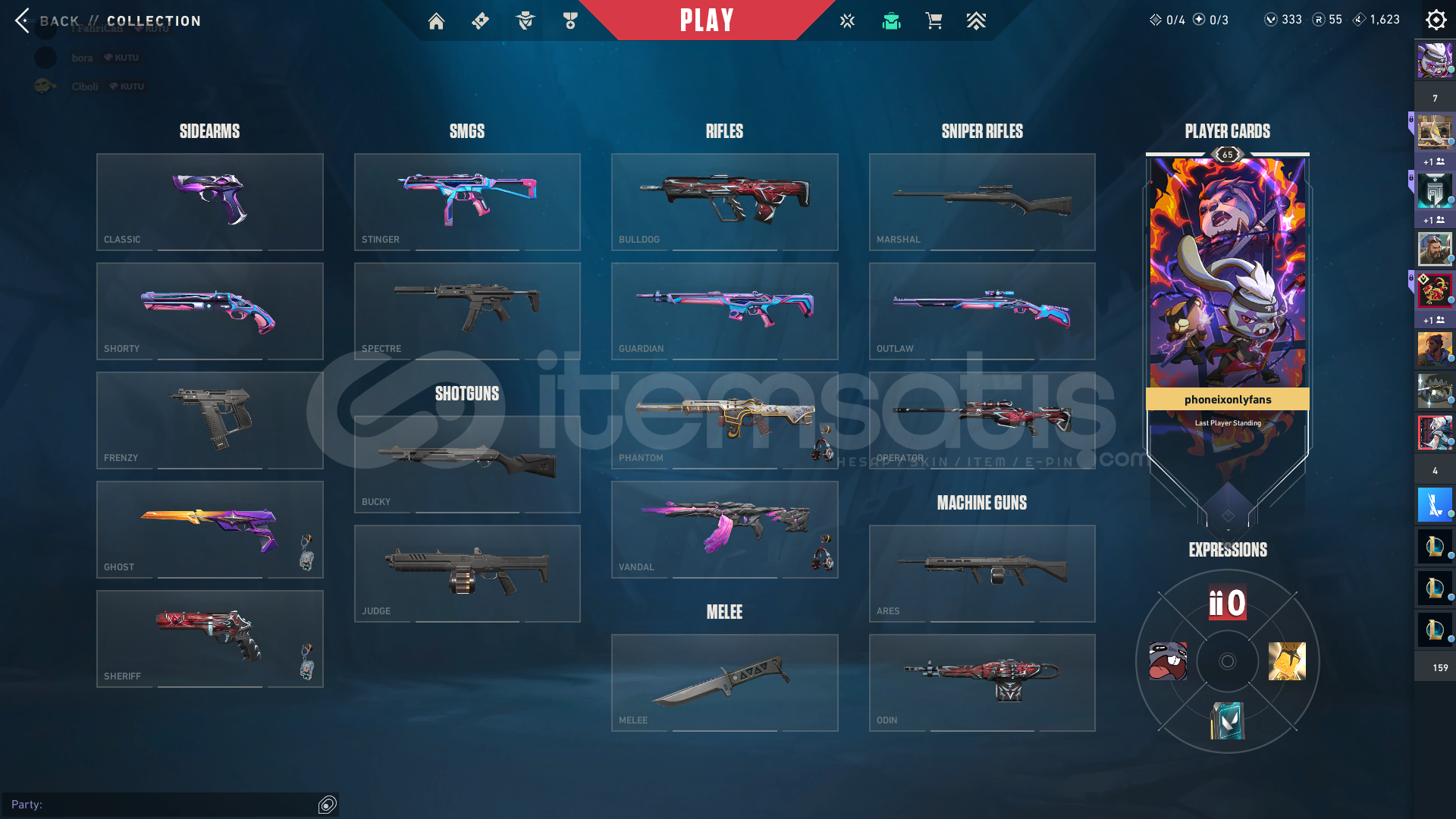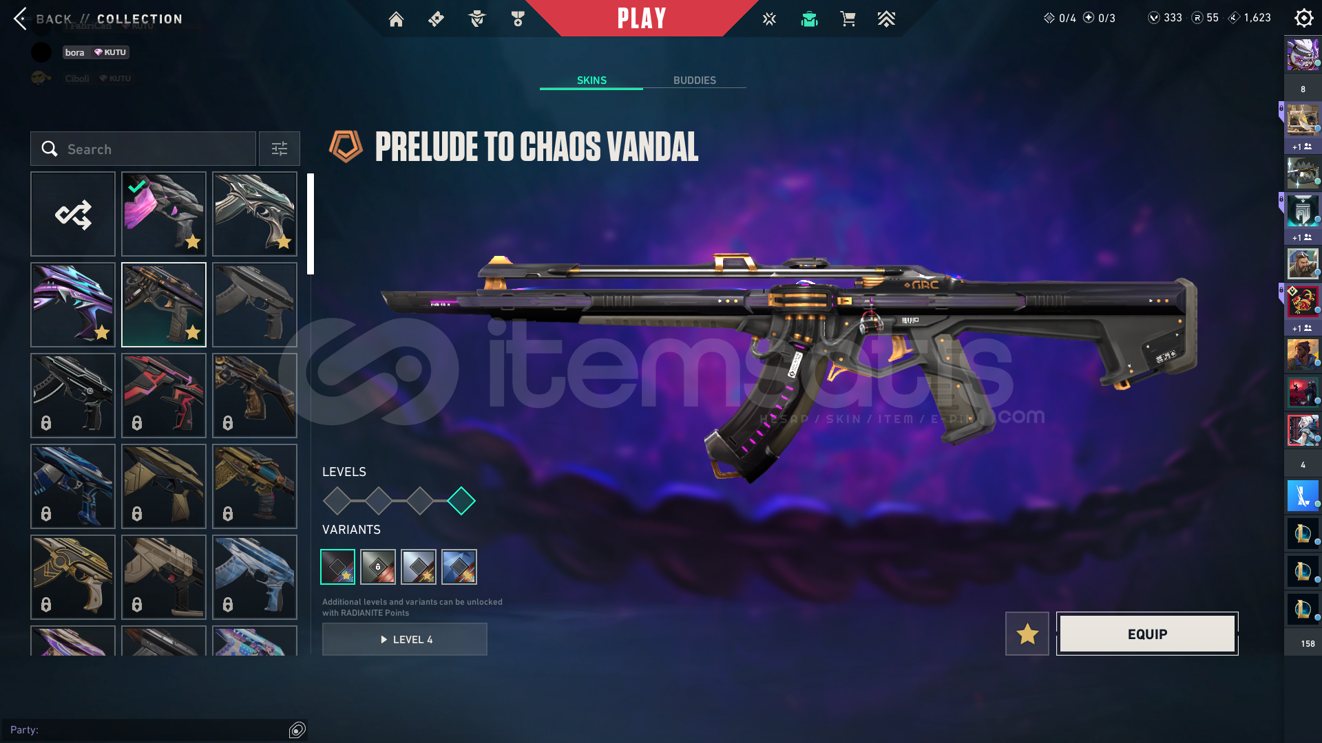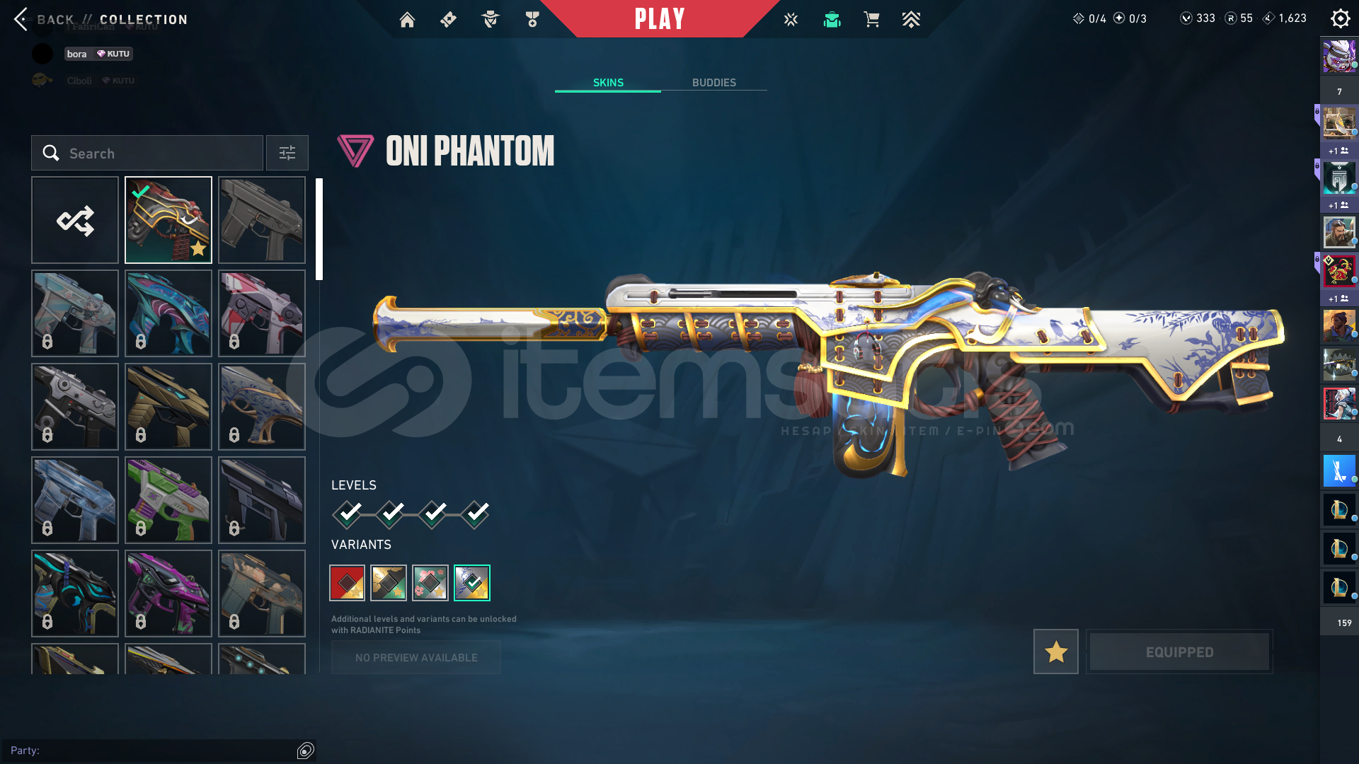 dolmir vandal kaos vandal yitik vandal oni phantom uzayli avcisi bicagi mevcuttur ve battle pass skinleri dahil bircok secenek mevcuttur
