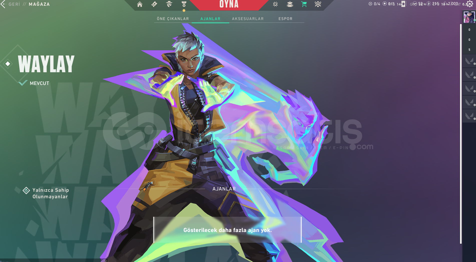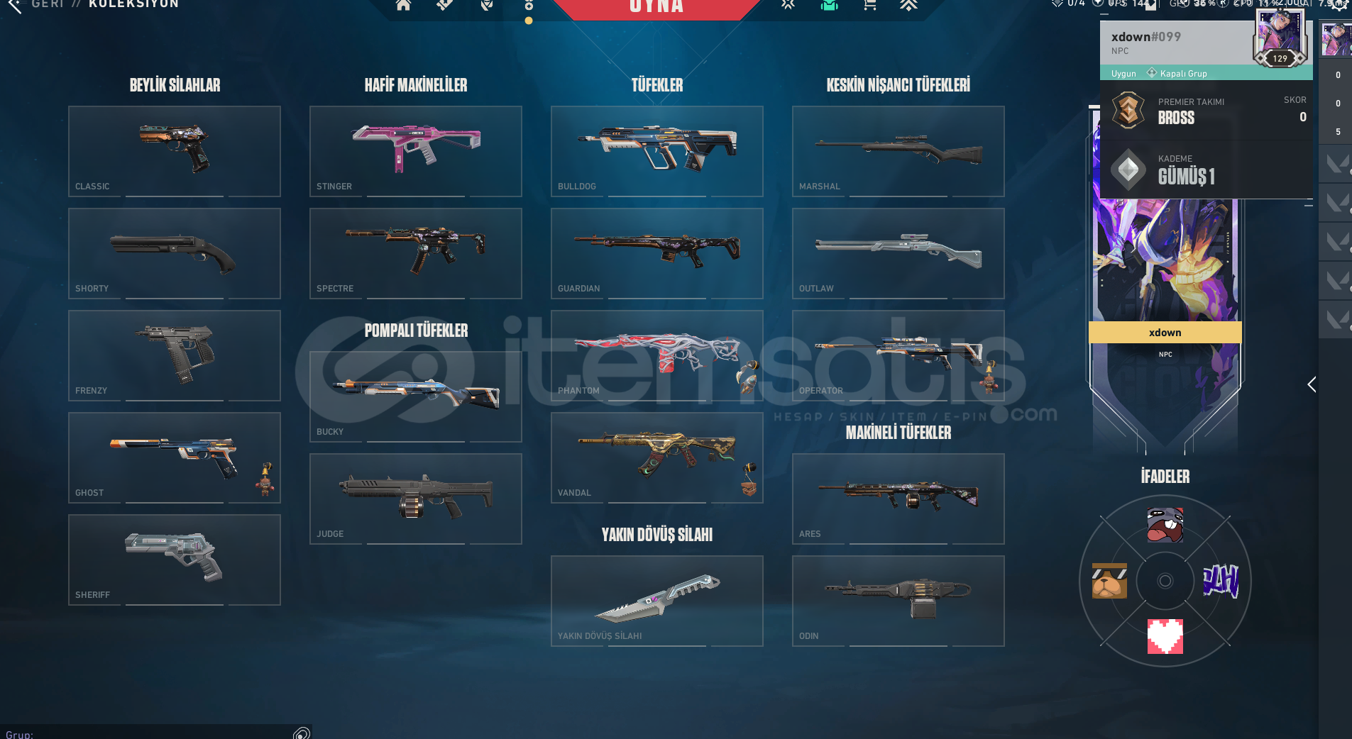 ⭐ ONİ VANDAL, GAİA'NIN İNTİKAMI PHANTOM VE 2 FARKLI (biri full diğeri fullenmemiş) BATTLEPASS SKİNLERİ VARDIR.⭐ TÜM AJANLAR AÇIKTIR.⭐ HESAP 129 SEVİYEDİR, RANK GÜMÜŞ.⭐ MANUEL TESLİM MAİL DEĞİŞİM İLE BİRLİKTE HESAP SİZE DEVREDİLECEKTİR.⭐ 7/24 AKTİF DESTEK SAĞLANMAKTADIR.⭐ HESAP DEVREDİLDİKTEN SONRA T&...