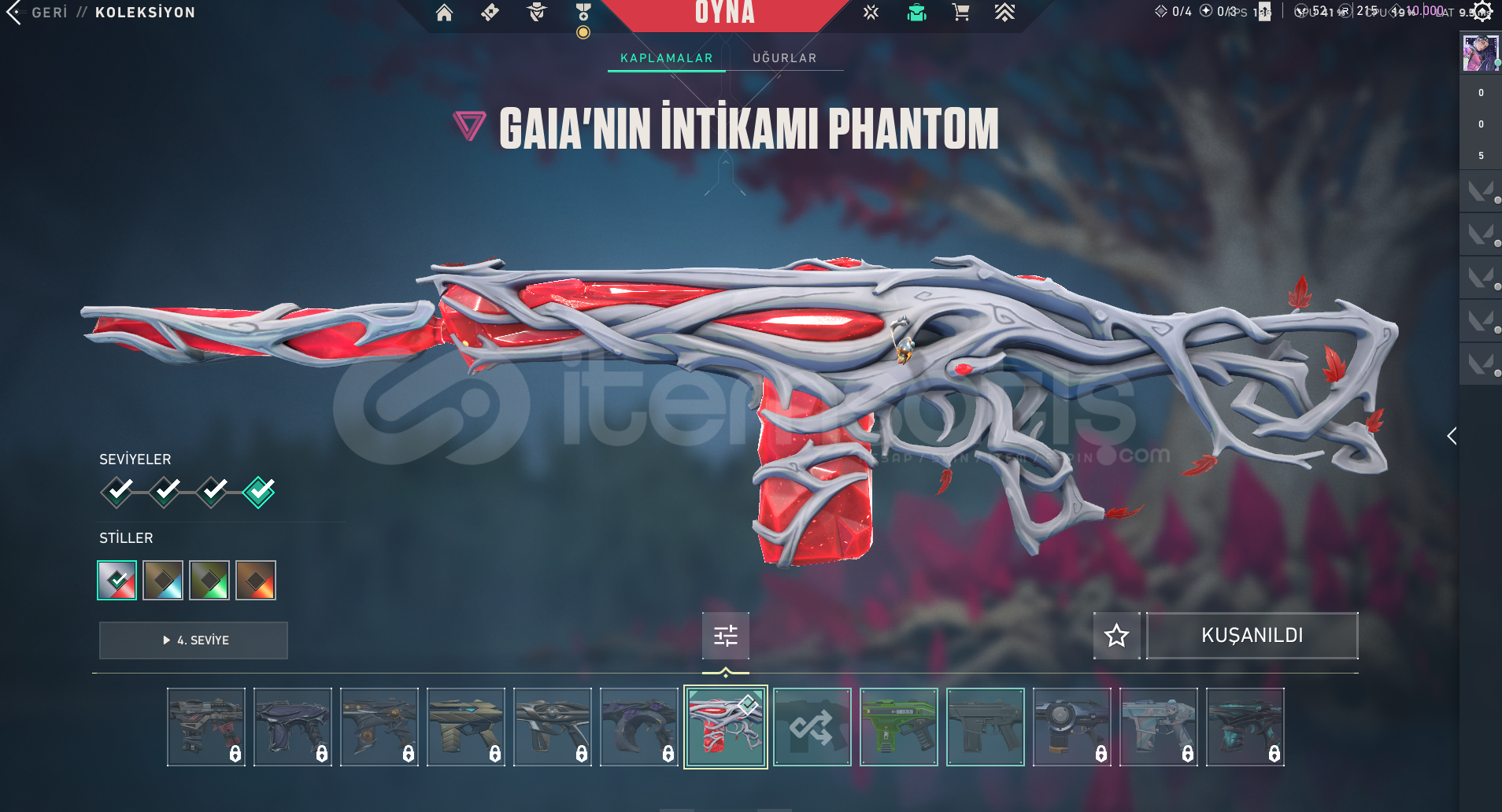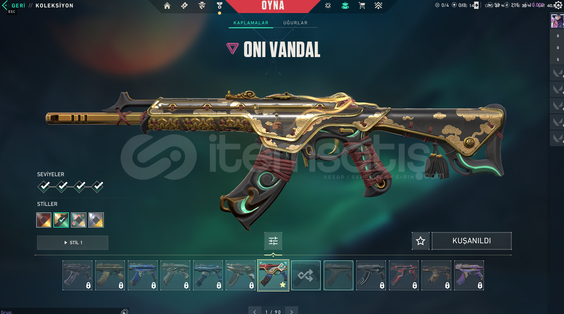 ONİ VANDAL, GAİA'NIN İNTİKAMI PHANTOM VE 2 FARKLI (biri full diğeri fullenmemiş) BATTLEPASS SKİNLERİ VARDIR.