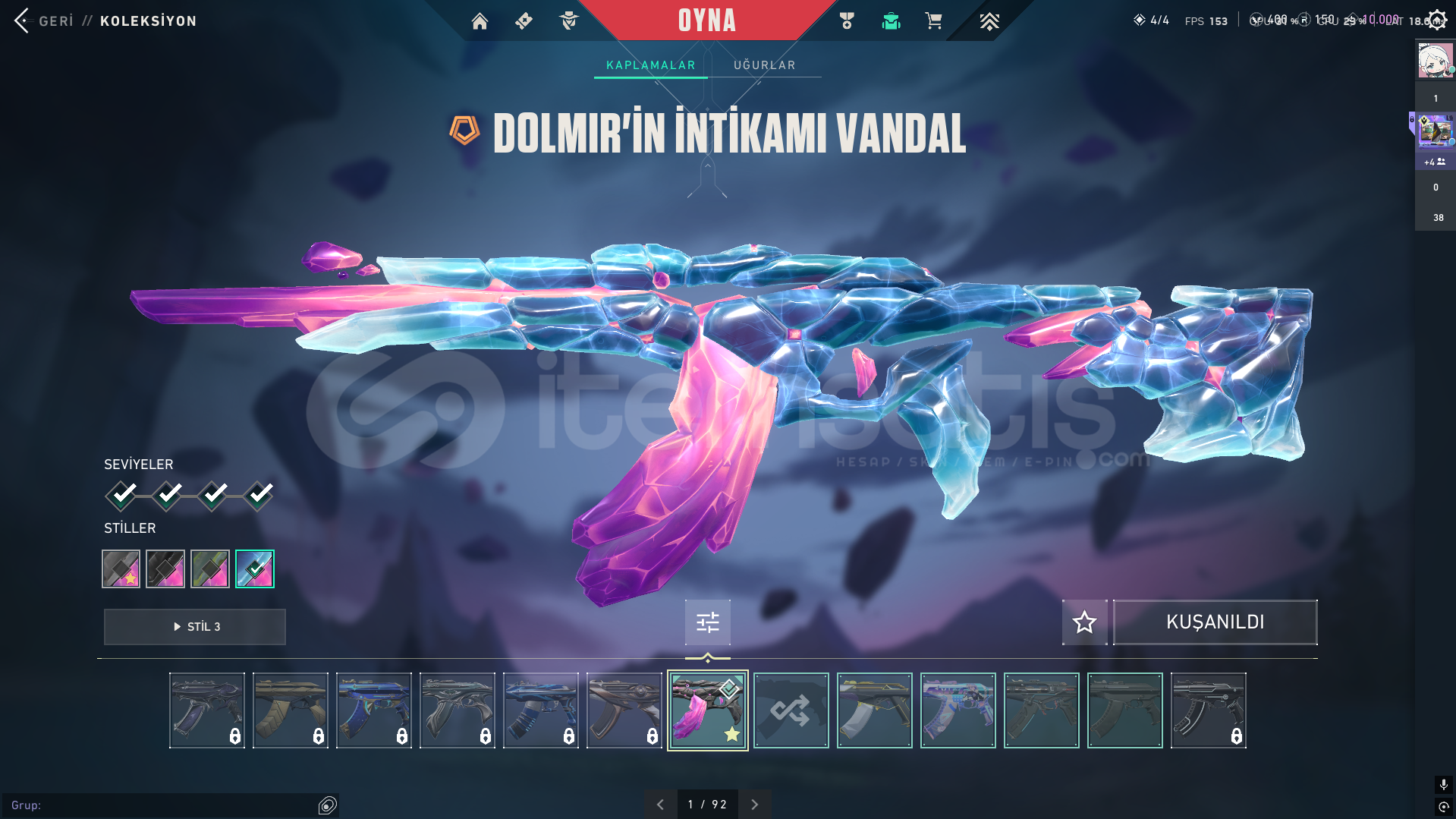 DOLMİRİN İNTİKAMI VANDALULU PENÇE GHOSTASİL CLASSİCÖZEL HAREKAT PHANTOMASİL VANDALSOĞUK ÇELİK VANDALCESUR YÜREK OPERATORUZAYLI AVCISI BIÇAKGÜNCEL RANK GOLD 1114 SEVİYETÜM AJANLAR AÇIKKİMLİK ONAYLI SATICI+15 BAŞARILI SATIŞ9.9 YORUMDetay isteyen yazabilir pazarlık için konuşuruz