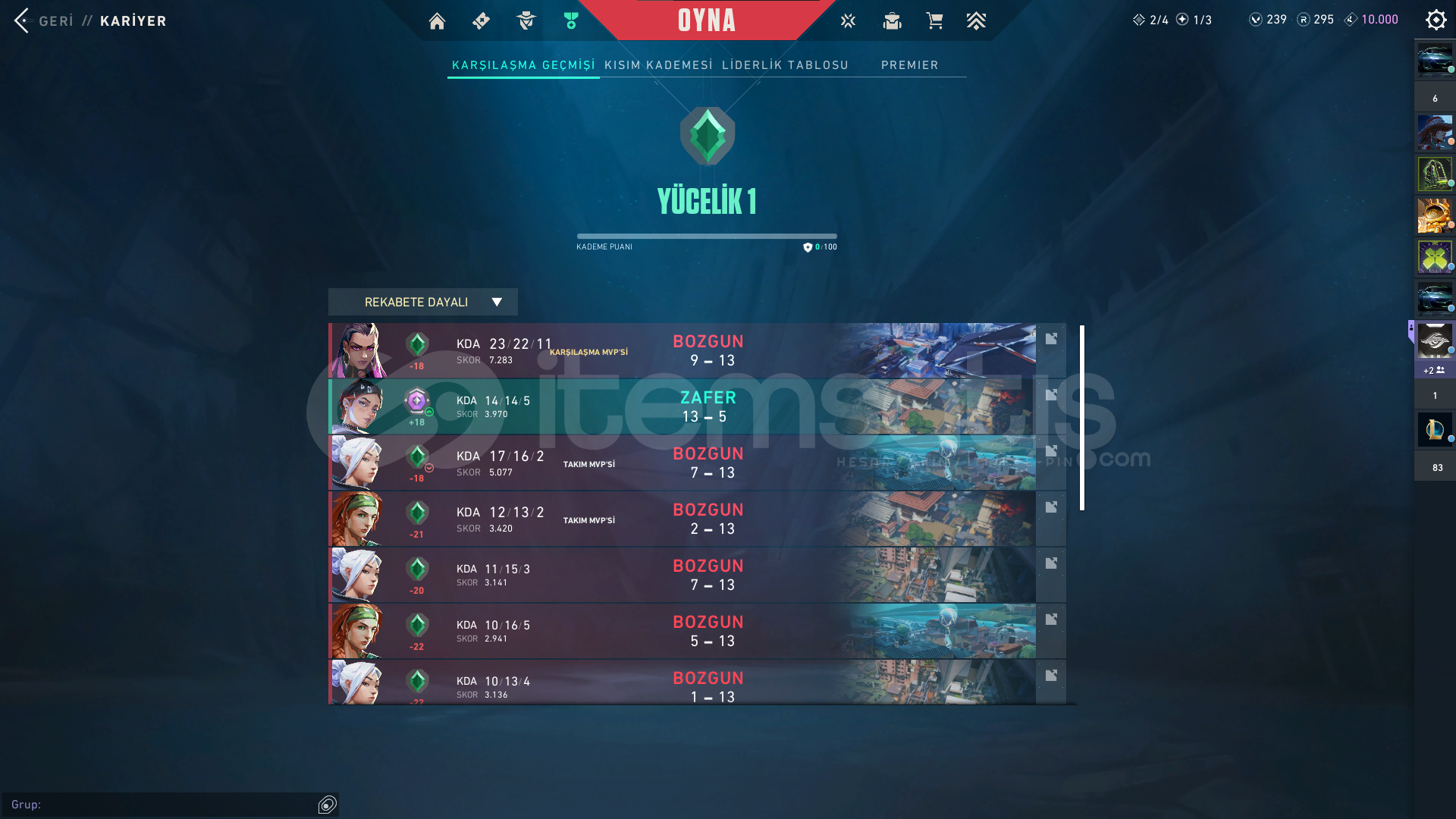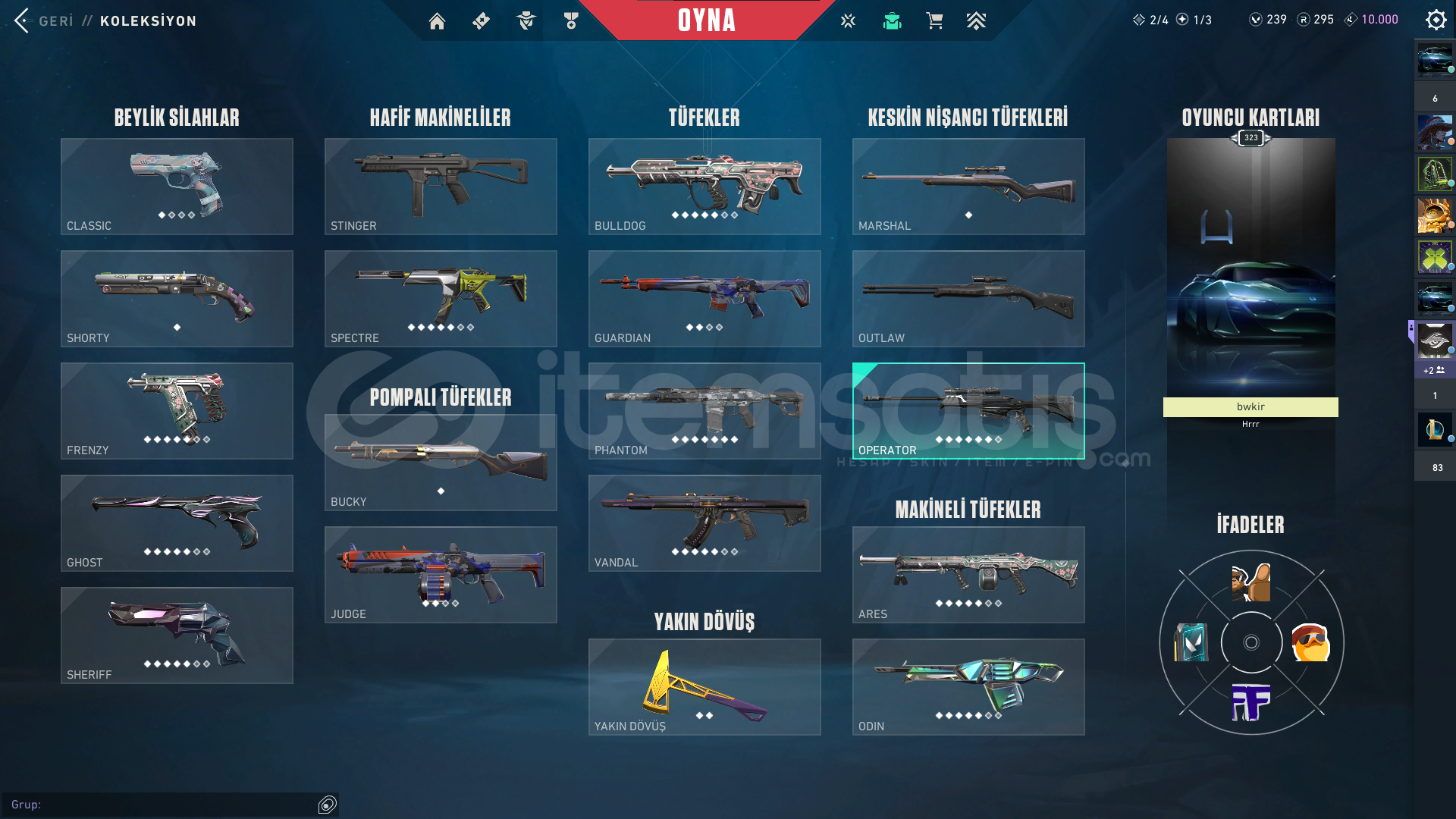 Hesap bölüm 02 kısım 2 açılmıştır max YÜCE 1 ye çıkmıştır.Güncel rank YÜCE 1 0 KP323 lvl239 vp295 rp vardır 2 battle passClassic - 5 adet normal skinShorty - 4 normal skinFrenzy - oni - 4 normal skinGhost - fatih - 6 normal skinSherrif - anomali - 6 normal skinStinger - 1 normal skinSpectre - asil - viran - 1 normal skinBucky - 1 normal skinJudge - 2 normal skinBulldog - oni - 2 normal skinGua...