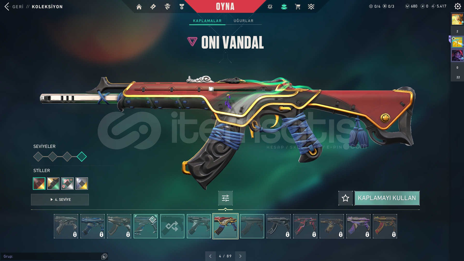 Volorant tek bağİçindeki Skinler-Asil Classic-Ulu Pençe ghost-Yağmacı Sheriff-Yağmacı Phantom-Oni Vandal-Krunami Vandal-Yağmacı Operatör-Uzaylı Avcısı Bıçak-2 tane battle pass(savaş bileti)hesapta 680 vp vardırrank oynanmadığı için derecesizdir
