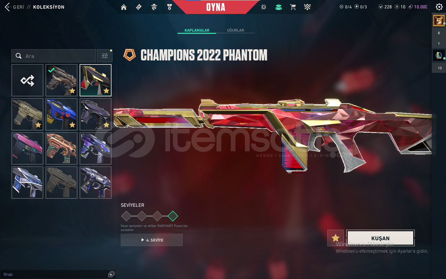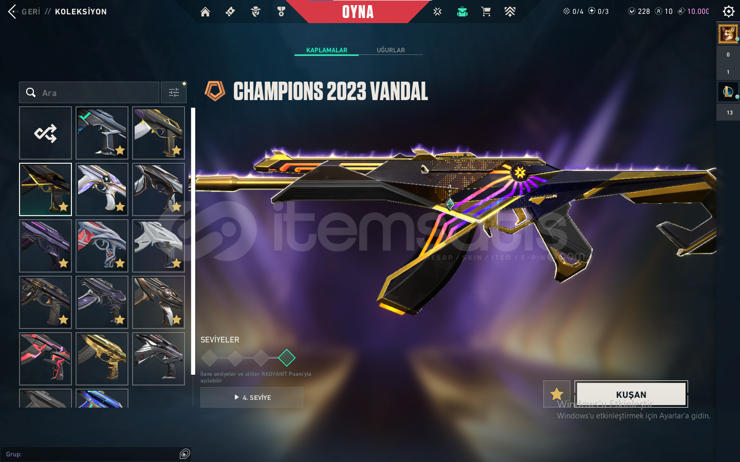 ACİL SATILIKTIR!!!VANDAL : Yağmacı, Zamanın Ötesi, Kuronomi, Kaosun Başlangıcı, İyon, Gaia, EX.o, Evrim, Evori, Champions 2023, AsilPHANTOM : Radiant Entertainment, Yağmacı, Özel Harekat, Felaketin Kalbi, Champions 2022BIÇAK : Yağmacı Karambit, Yağmacı Bıçak, VCT 2025 Karambit, Uzaylı Avcısı, Uzaylı Geçidi, RGX Katana, Oni Katana, Champ 2023 Kunai ,...
