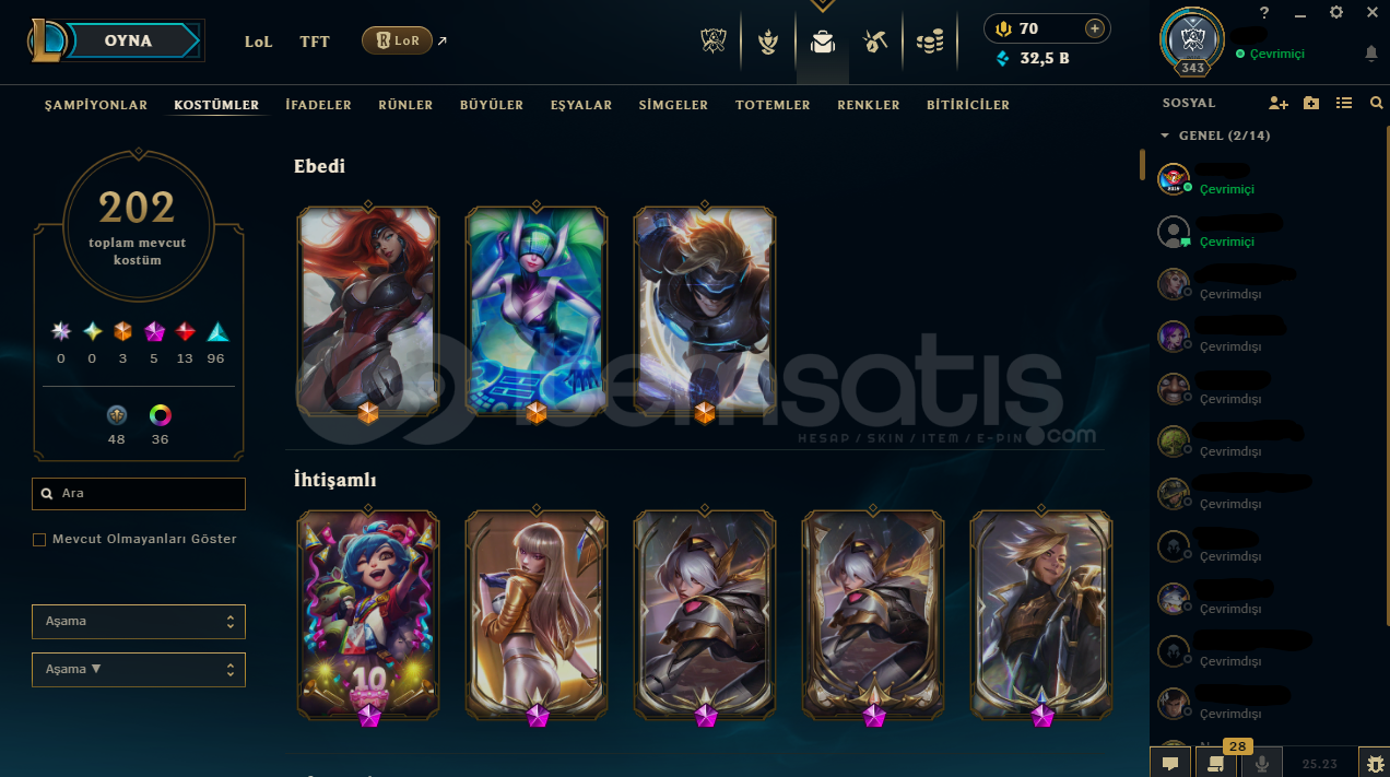 9 Yıllık Hesaptır, içinde 200+ skin 3 ebedi, 3 prestij kostüm ve dahası mevcuttur.