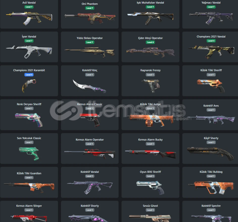 Champions 21 setAsil Vandal (Full) + (Renk)Işık Muhafızları Vandal (Full) + (Renk)İyon Vandal (Full) + (Renk)Yağmacı Vandal (Full) + (Renk)Oni Phantom (Full) + (Renk)Ejder Ateşi Operator (Full) + (Renk)Yıldız Belası Operator (Full) + (Renk)Full Hero342 VP205 Radyanit505 KKACİLİYETTEN SATIOYORUM O YÜZDEN UCUZ ALICIYA H.O