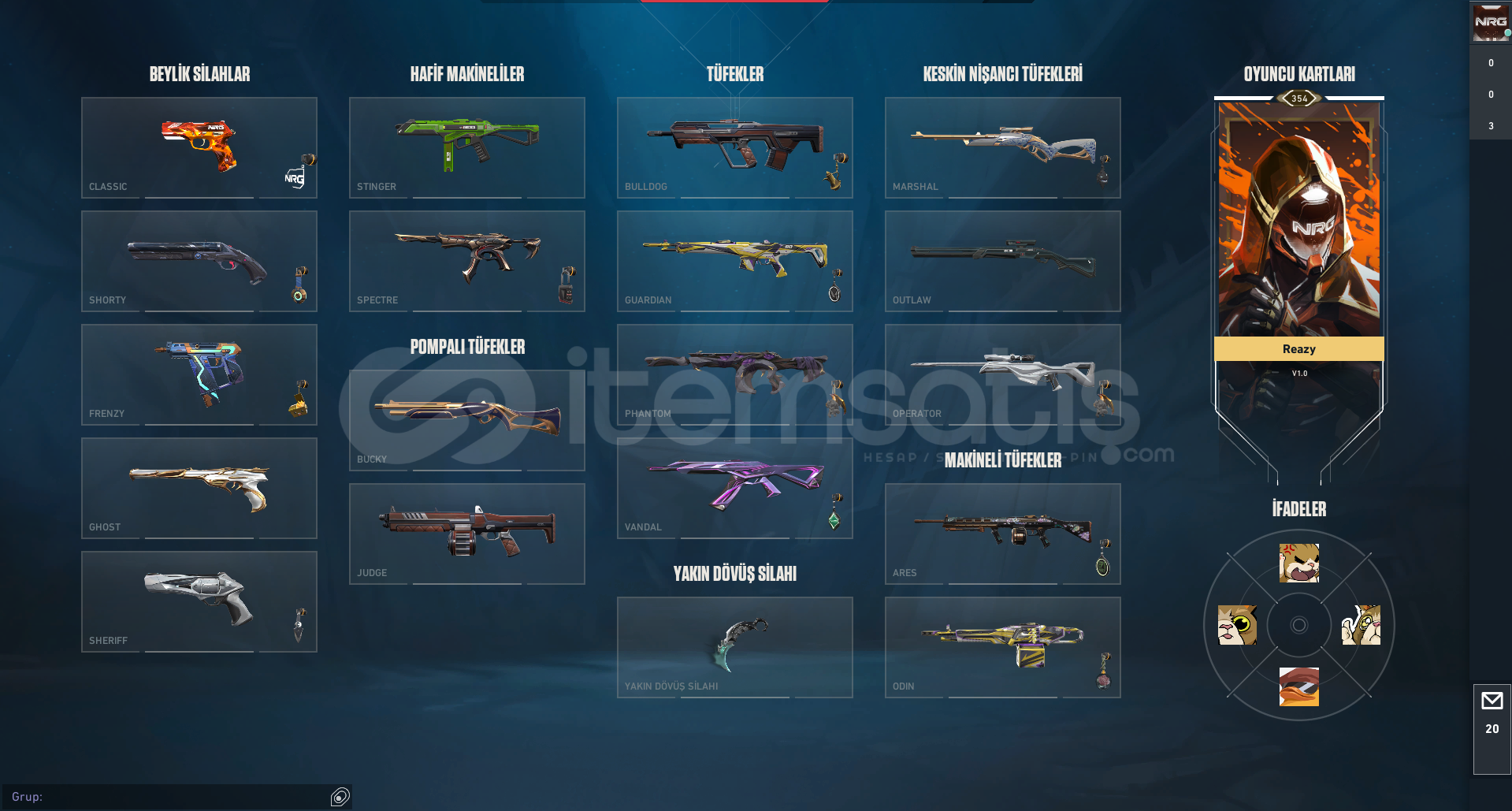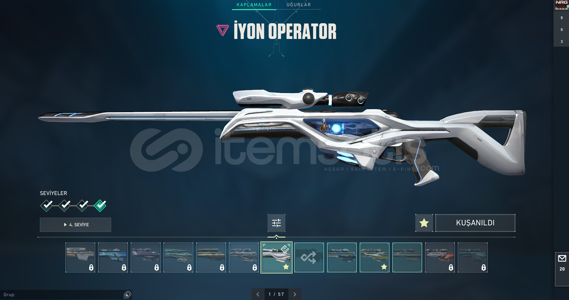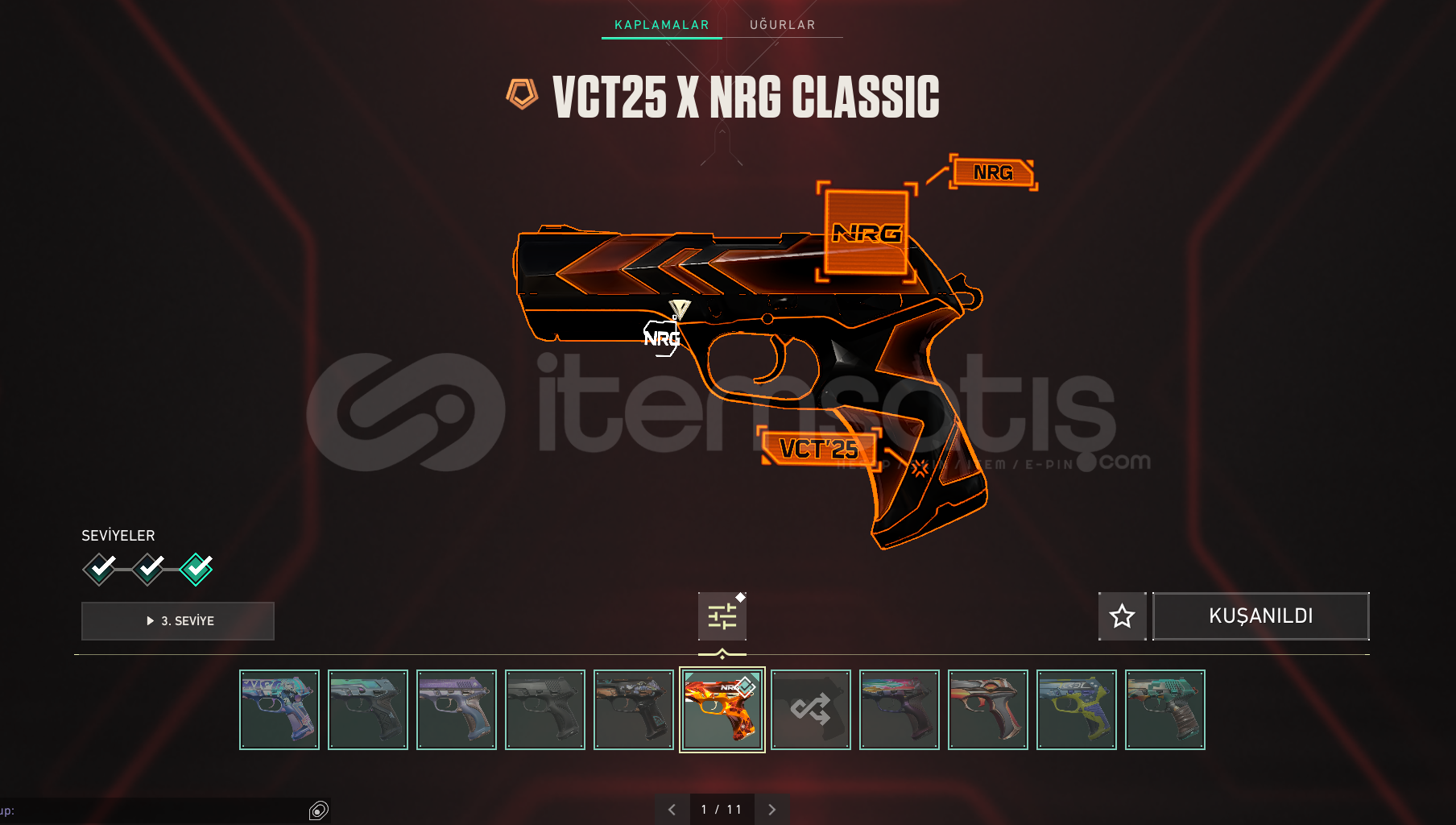 Hesabın için NRG Set, Fatih Ghost, Ion Sheriff, Helozon Spectre, Zifiri Phantom, Gaıa Phantom, Ulupençe Vandal, Yağmacı Vandal, Kuronami Vandal, Kaos Vandal, Onı Vandal, Köken Vandal, Gaıa Vandal, Dolmırın İntikamı Vandal, Arcane Vandal, Yağmacı Karambit, Ion Oparetör, Ve bir çok Battle Pass skinleri vardır, Alıcısına Şimdiden Hayırlı Olsun