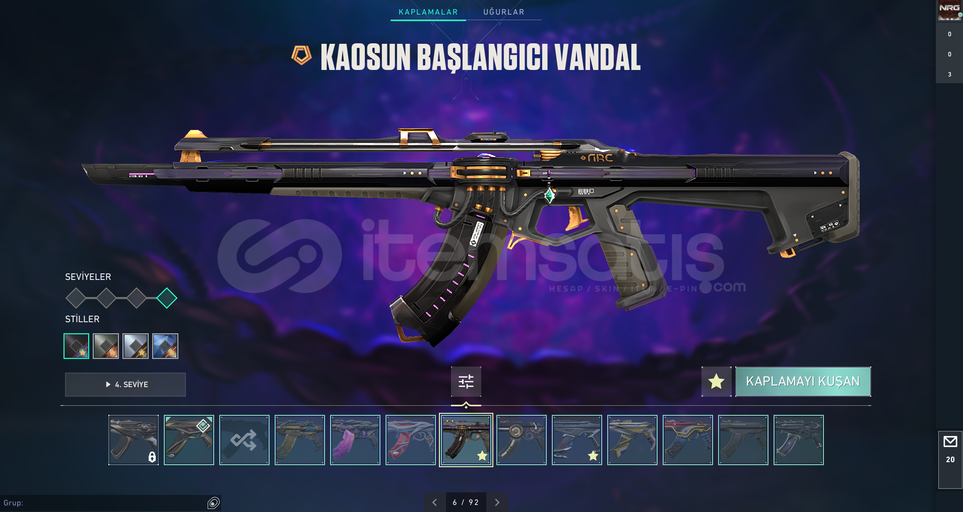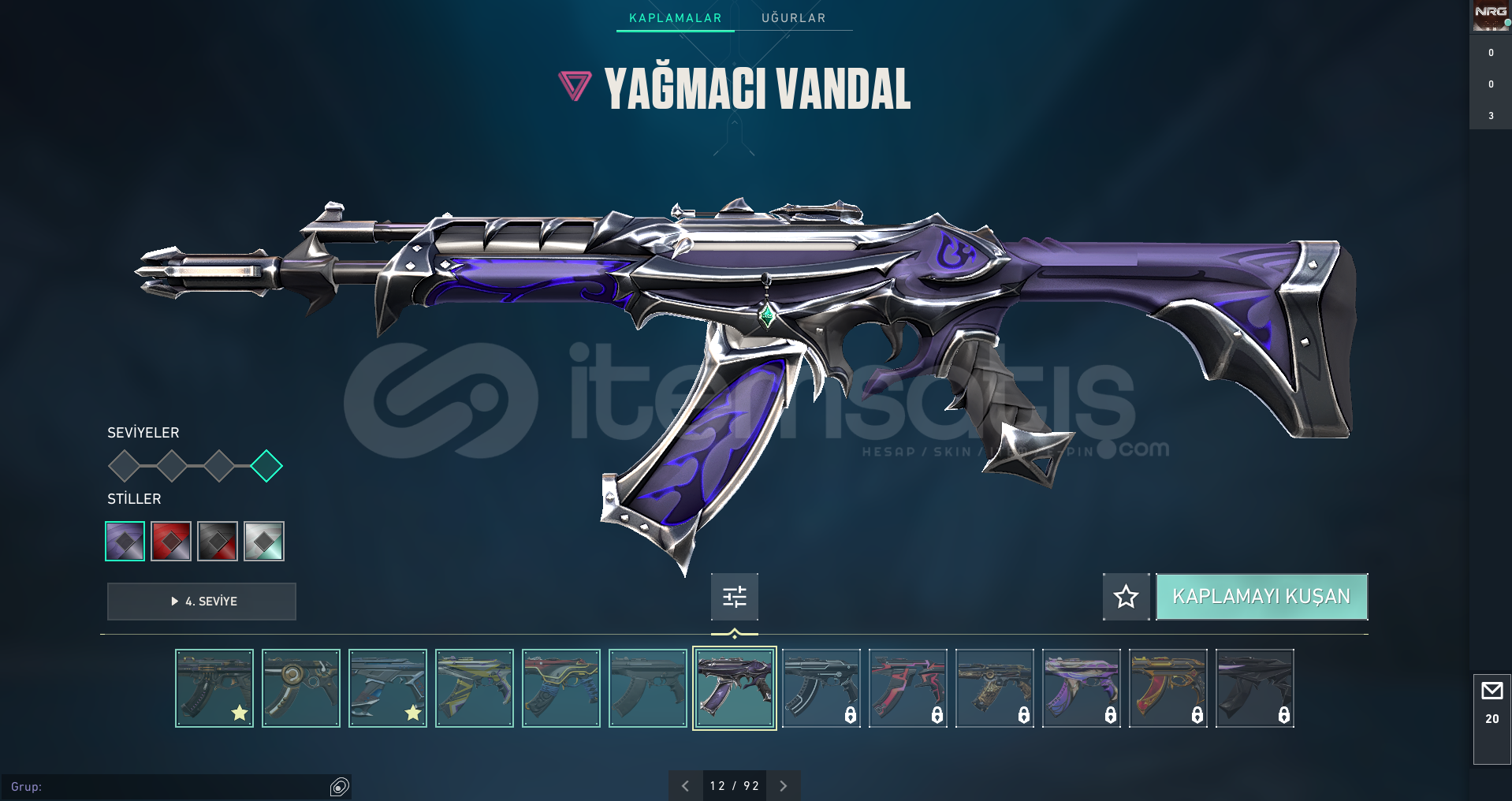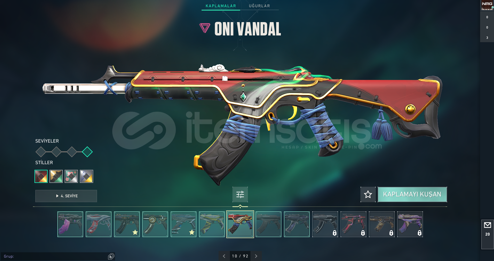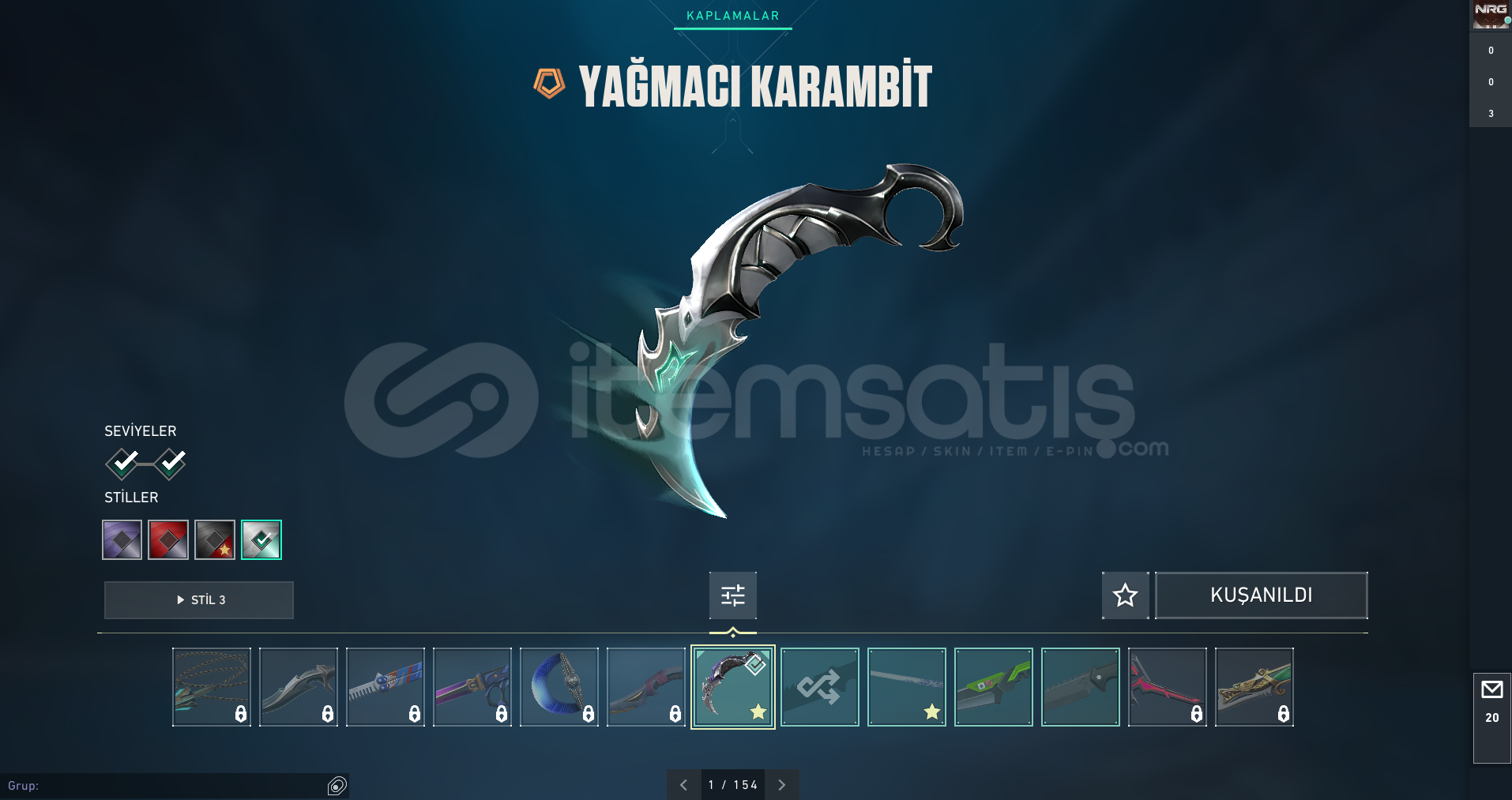 Hesabın için NRG Set, Fatih Ghost, Ion Sheriff, Helozon Spectre, Zifiri Phantom, Gaıa Phantom, Ulupençe Vandal, Yağmacı Vandal, Kuronami Vandal, Kaos Vandal, Onı Vandal, Köken Vandal, Gaıa Vandal, Dolmırın İntikamı Vandal, Arcane Vandal, Yağmacı Karambit, Ion Oparetör, Ve bir çok Battle Pass skinleri vardır, Alıcısına Şimdiden Hayırlı Olsun