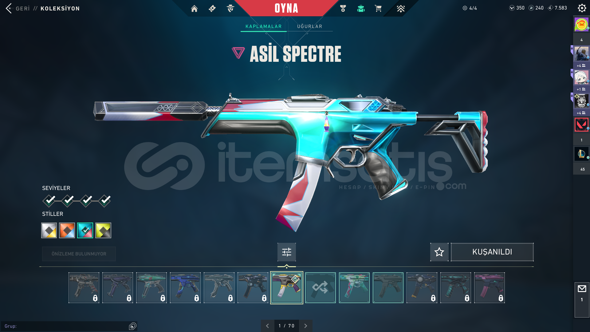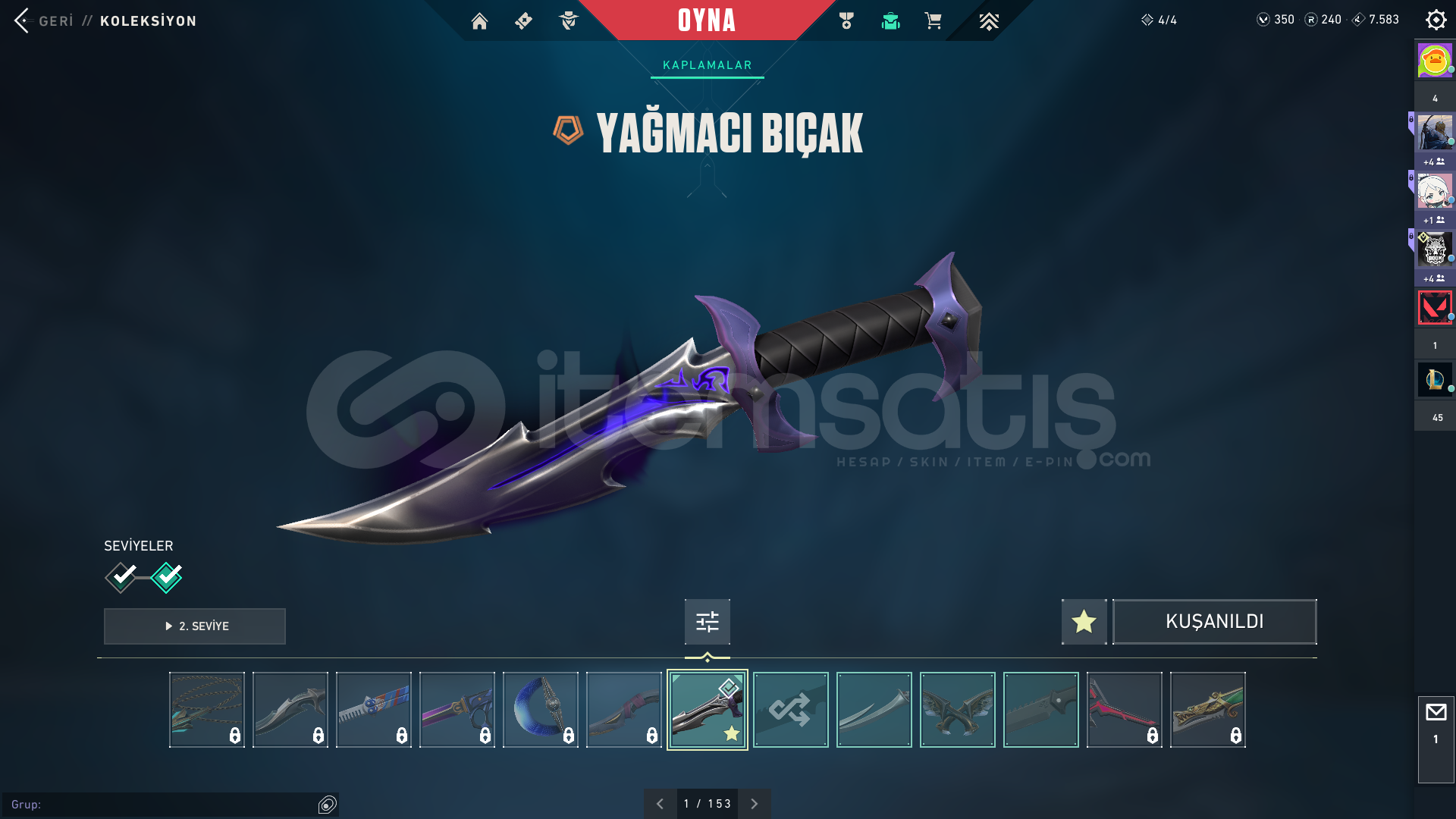 Mail değişen Yücelik elo 180+ seviyeli hesap.Hesap içinde 350 vp bulunmakta .Kaos ve yağmacı vandal,anomali ve asil phantom,asil spectre,gaia ghost,yıldız belası sheriff,yağmacı operator,yağmacı ve yadigar taşı hançeri bıçak.+ olarak 2021 battle pass bitirilmiş, battle pass bıçak ve silah kaplamları bulunmakta güncel bir ceza yok temiz hesap.