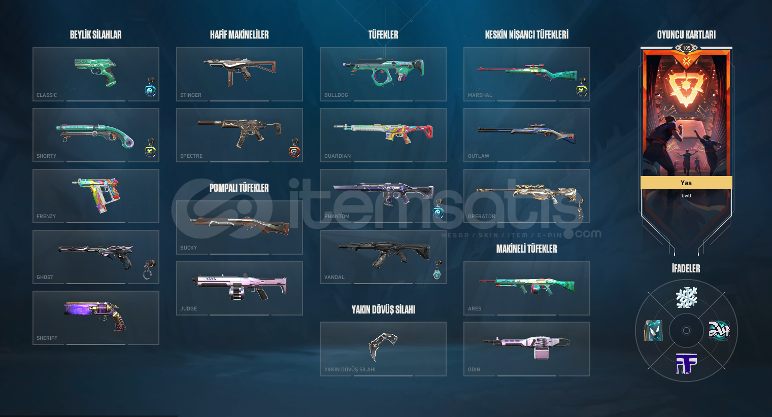 Artık oyunlar oynamadığım için satıyorum hesaptaki bp dışı skinler şunlardır: