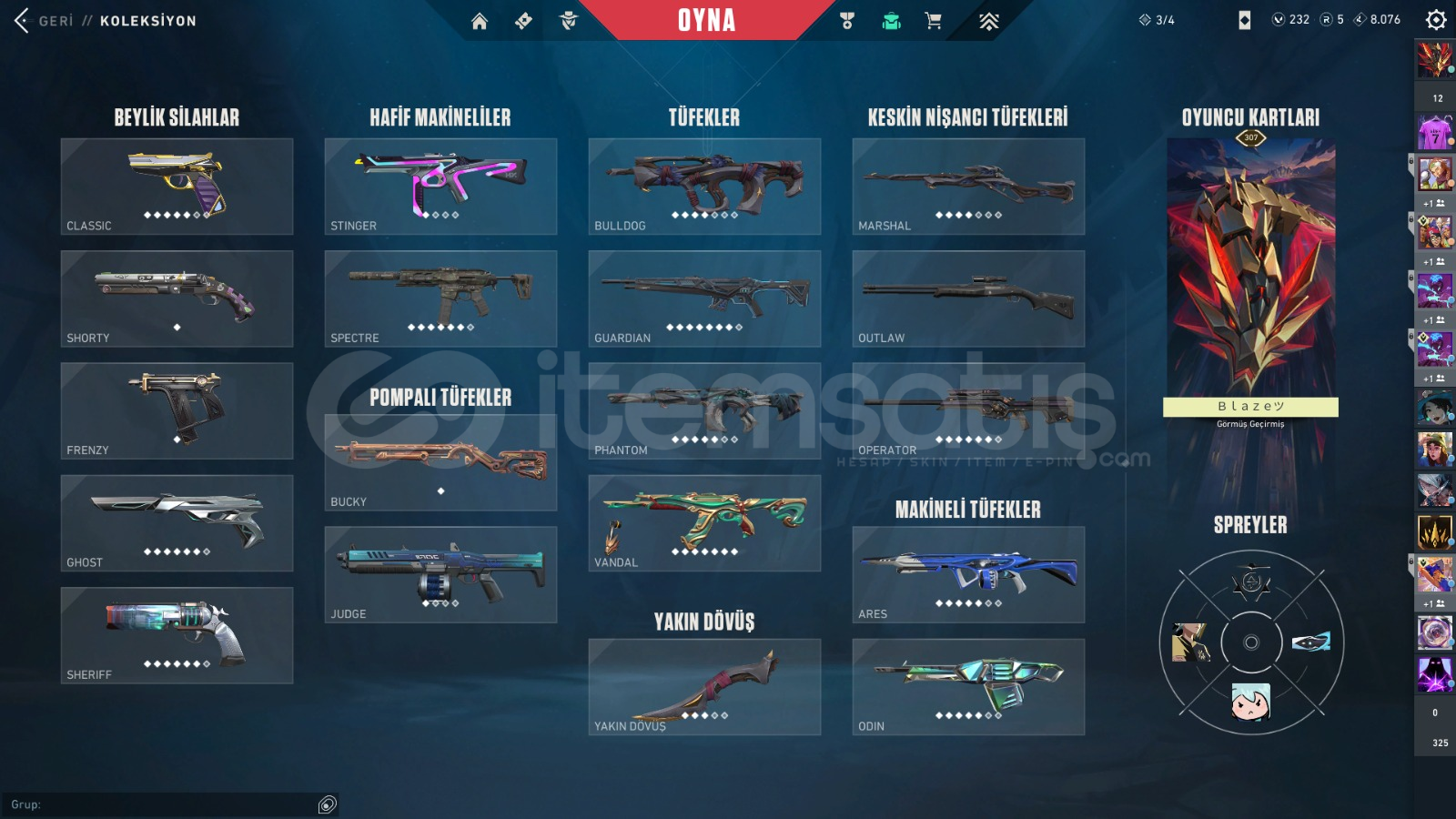 Ciddi alıcıya gereken indirim yapılacak, Antep içi elden satılabilir....aciliyeti var Valorant hesabımı acil para ihtiyacım nedeniyle satıyorum. İlk mail ile devredicem..Hesap detayları:Seviye: 380Rank: Diamond 3Açık Sezon Pass: 6Skin detayları aşağıdaki gibidir:Klasik: Asil, ZifiriGhost: Gia, UlupençeŞherif: Seri Tetik, YağmacıSpectre: Özel HarekatBulldog: Zifiri, Yıldız...