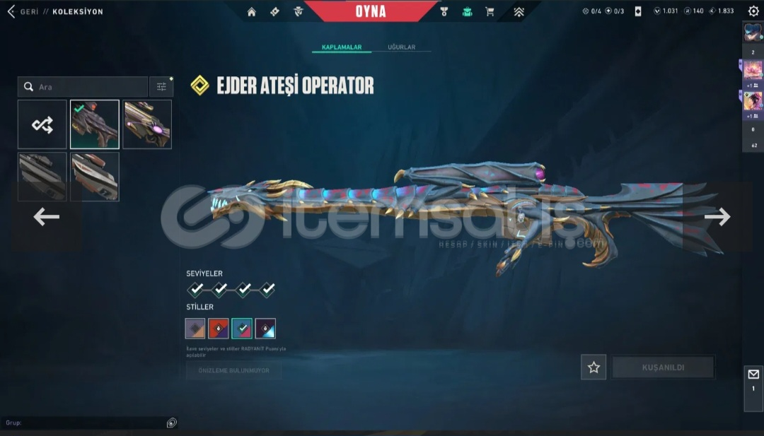 silahlarda değerli skinler mevcuttur.Acil satılık TR sunucusu tertemiz mainlemelik hesap.156 seviye olmaktadır