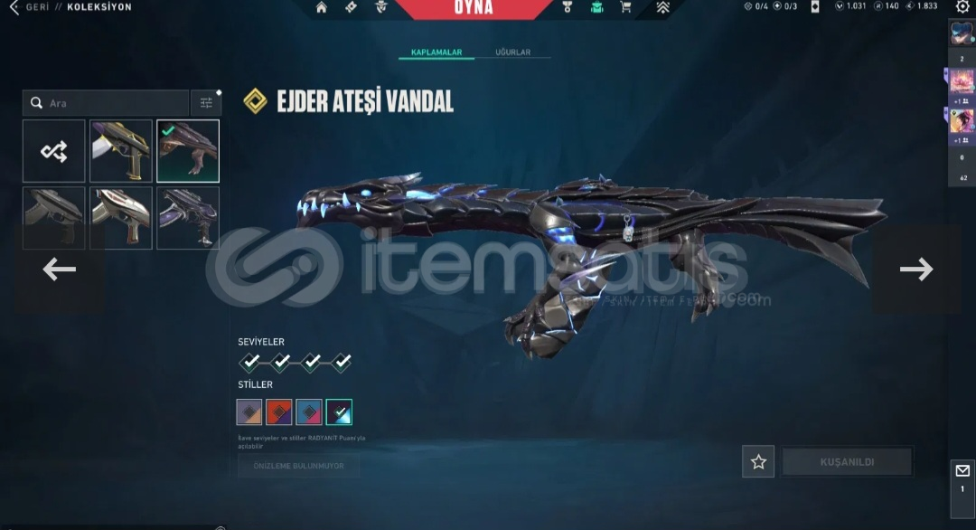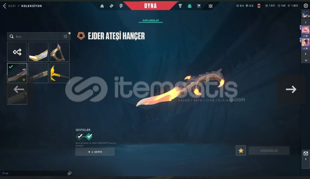 silahlarda değerli skinler mevcuttur.Acil satılık TR sunucusu tertemiz mainlemelik hesap.156 seviye olmaktadırSkinler;Bıçak:Ejder Ateşi HançerAsil KarambitÖzel Harekat KelebekPrizma BaltaBaşlangıç MuştaVandal:Ejder VandalAsil VandalYağmacı VandalPhantom:BlastxSherrif;YağmacıOperator:Ejder OperatorClassic;SpectrumGhost;Fatihve çok daha fazlası!!!3 adet battle pass açıldı 2 tanes...