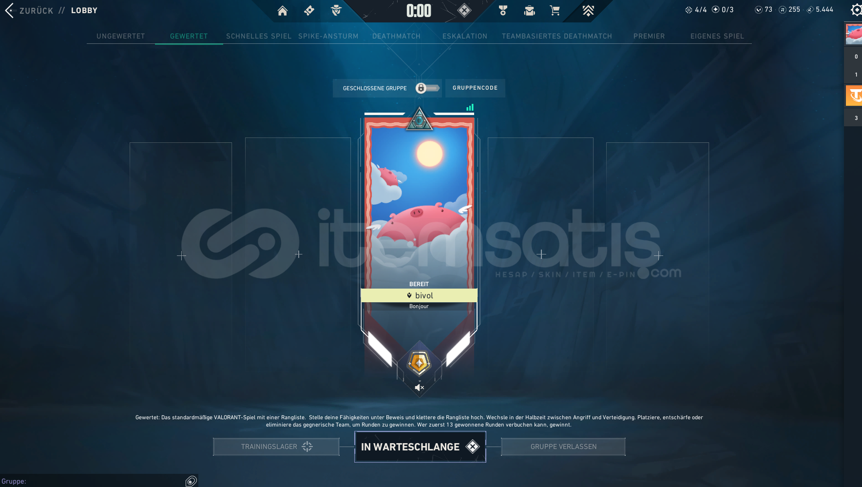 hesabın rankı aktif gold 3 70 kp dirhesap 122 seviyedir tüm karakterler açıktırhesapta 73 vp 255 radyanit vardırLol hesabı 30 seviyedir 3 efsanevi skin bulunmaktadırValorant Skinleryitik bıçakrgx karambitasil baltasoğuk çelik vandalyağmacı sheriffyağmacı operatörfatih phantomhesabın herhangi bir banı yokturhesaba toplam 3590 tl yatırılmıştıralana şimdiden hay...