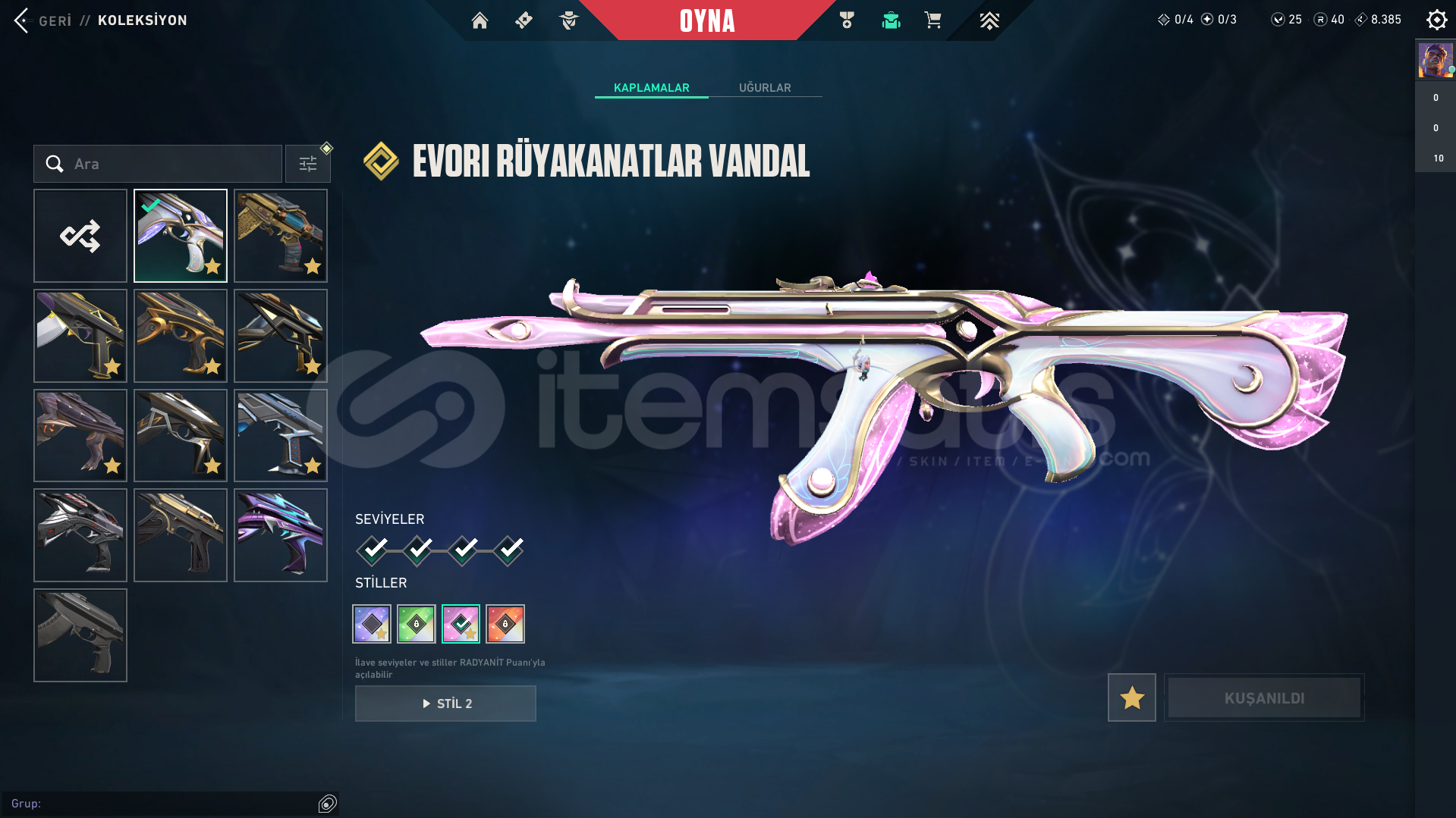 Vandal Skinleri;Evori,Asil,Champions 2025,Arcane,Cesur Yürek,Ejder Ateşi,Işık Muhafızı,Kuronomi