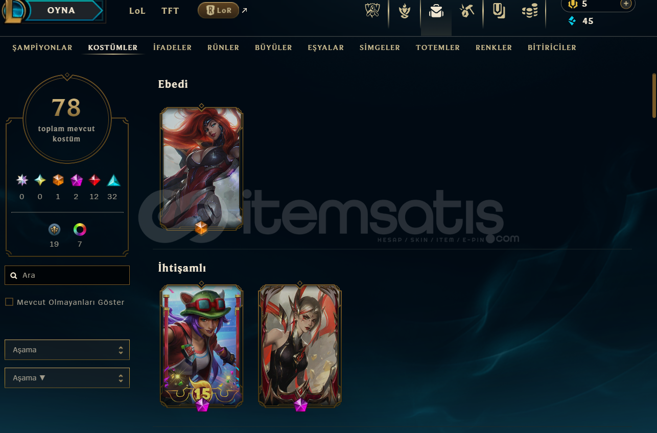 FİYATTA İNDİRİME GİDİLİR!Valorant--------Vandal Skinleri;Evori,Asil,Champions 2025,Arcane,Cesur Yürek,Ejder Ateşi,Işık Muhafızı,KuronomiPhantom;OniBıçak Skinleri;Yağmacı Karambit,Asil Karambit,Rgx Katana,Vct Karambit,Yitik Hançer,Şimşek HançerClassic;AsilGhost;FatihSherrif;Seri TetikGuardian;YağmacıOperatör;Köken2 Sezon battlepass--------League Of Legends--------1-Eb...